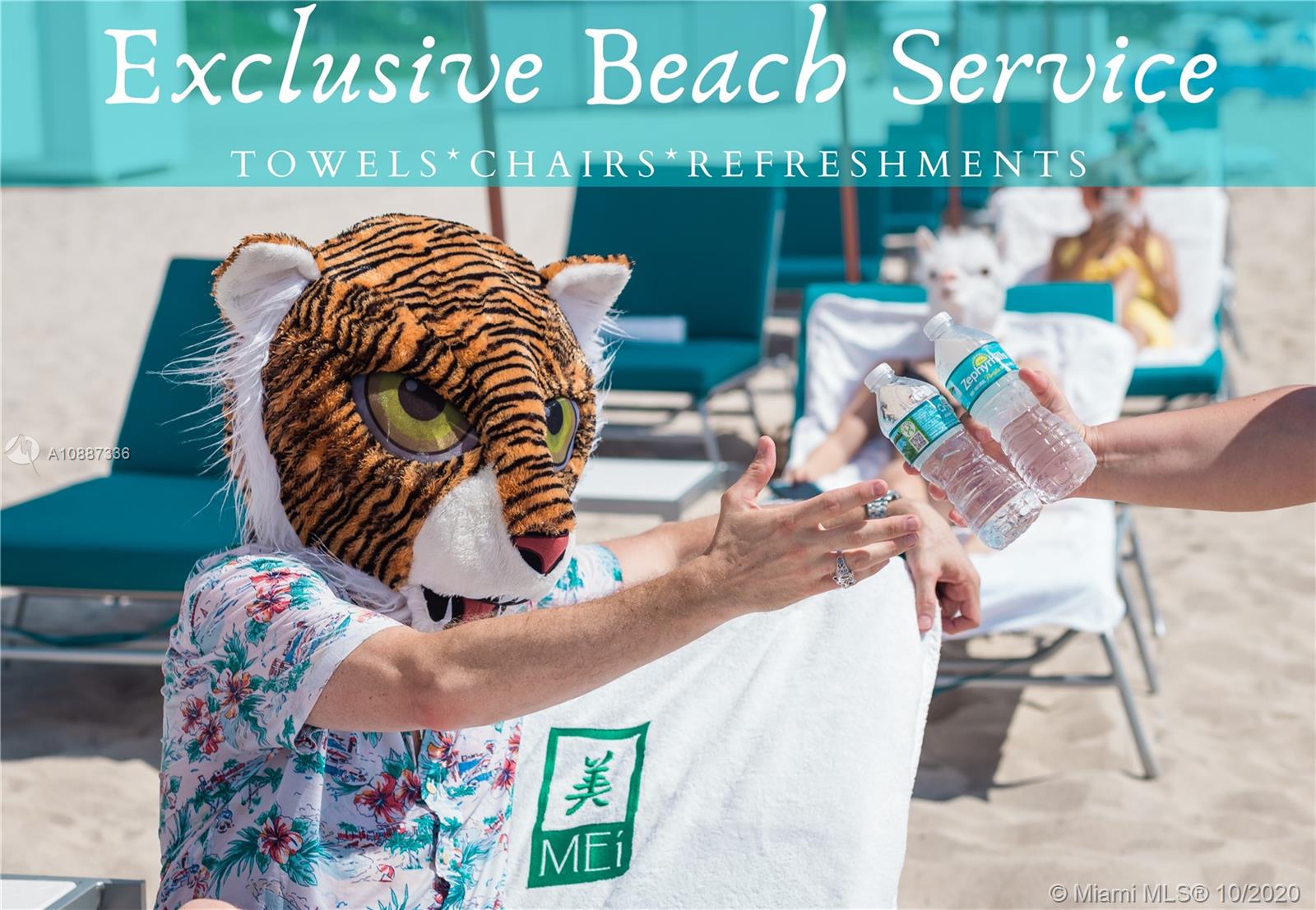Close your eyes and see yourself as Tiger or one of his friends. Mei is the perfect condo in Miami Beach to quarantine & relax in true tranquility with all the 5-Star amenities & services you deserve! Horse valets for his carriage and Fox loves the private beach service with complimentary refreshments. Dog loves to chase and play paddleball (who'd have guessed?) while Unicorn frolics in the pool & hot tub. You'll find yourself in the gym or private beach path daily with this crew. Tea-time in the Tea Room Lounge or balcony is a must after yoga! Tiger loves the updated cabinets and countertops in the kitchen and Llama enjoys how the new floors feel under her feet. Get lost in the sunrise and sunset for a bit, you deserve it every day of your life. Welcome home my friend, welcome to Mei 1103