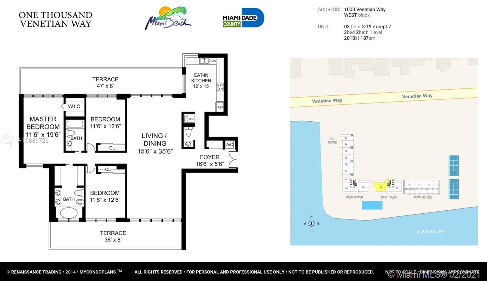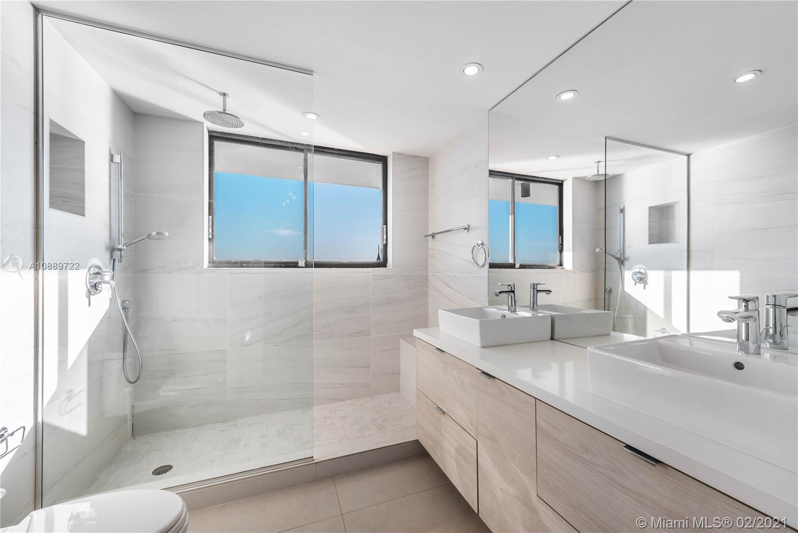 Light & bright sleek white modern residence boasts 2 beds plus den, 2.5 baths, 2,010 SqFt & nearly 700 SqFt of 2 wide terraces overlooking Biscayne Bay, Cruise Ships & Downtown Miami Skyline. Enter through the semi-private elevator landing (only 2 units) into an expansive combined living/dining room area with unobstructed views, a perfect place for a quiet night in or entertaining guests. Enjoy a custom Italian Kitchen providing ample storage space, professional appliance suite & a generously sized stone topped center island. Spacious master offers the ultimate in privacy and magnificent water views through floor-to-ceiling glass doors. Amenities include double height gallery-like lobby, 24 hour security, valet, 2 bayfront pools & tennis courts.. One of the best building in Miami!