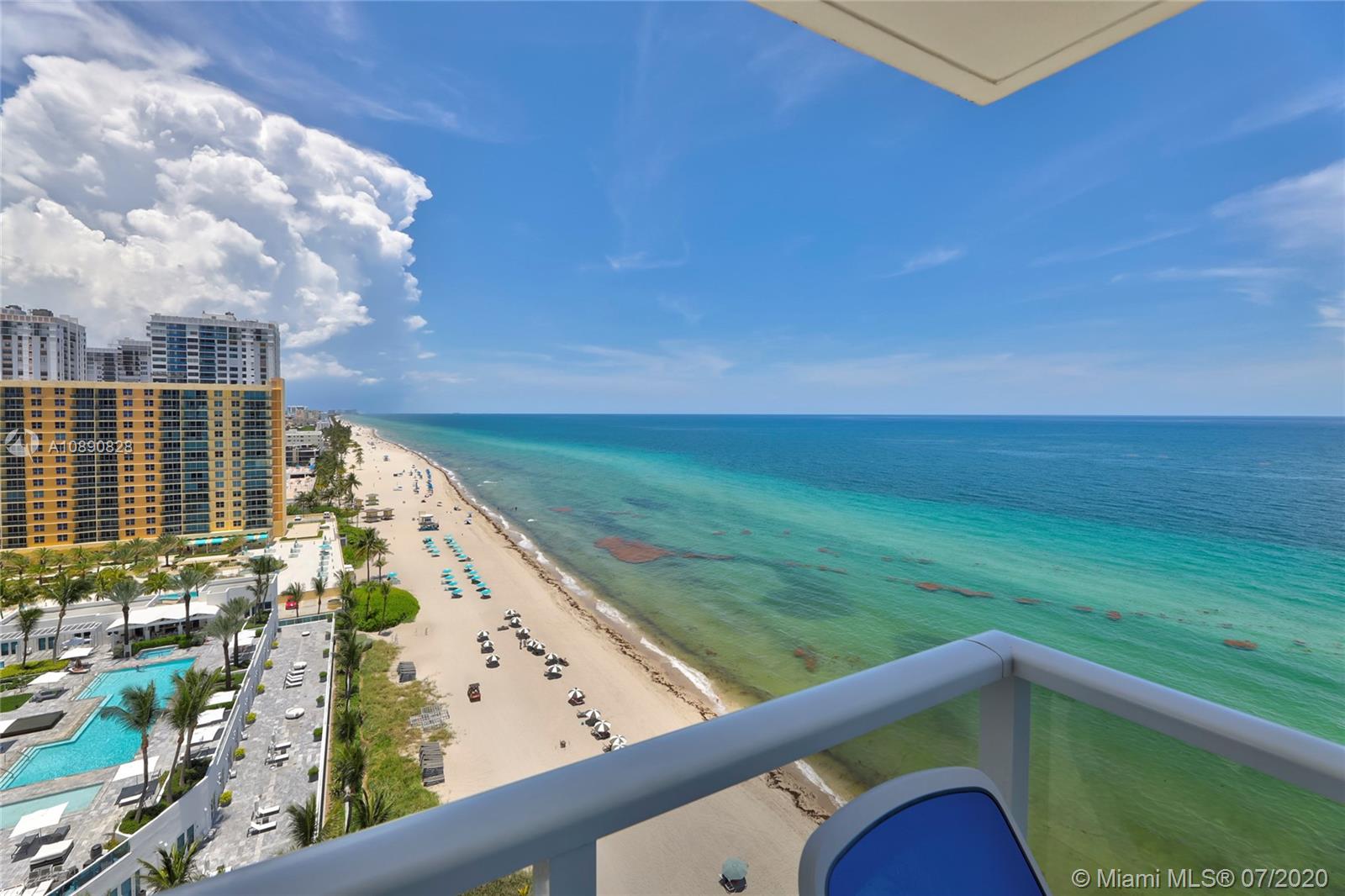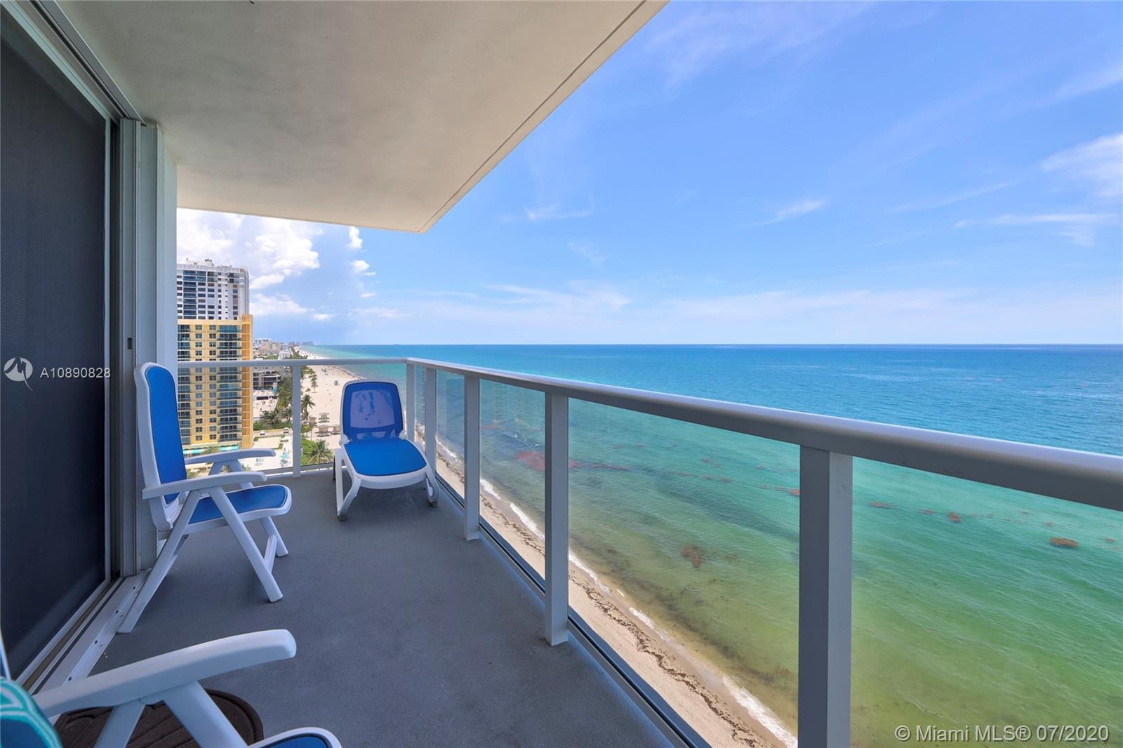 This fully updated corner unit on the 16th floor with wrap around balconies offers the most splendid, breathtaking, panoramic and completely unobstructed views of the Atlantic ocean. Next door at Trump Hollywood you will pay 3X the price and their views are not as great! This is a very spacious, wide open floor plan with floor to ceiling windows. The unit offers an updated kitchen opened to living areas, floors have been renovated with gorgeous tile, both bathrooms have custom updates, stone column accents, solid wood shelving, marble situp bar. Impact windows and doors, updated impact glass balconies. All assessments have been paid. Full amenities w beach service, two new pools, gym and valet. Overall the best valued views on the beach.