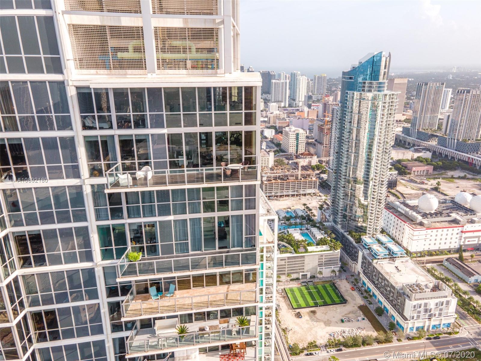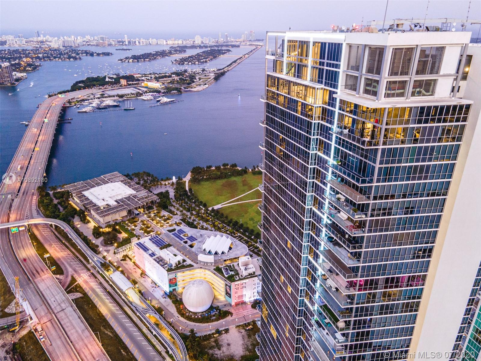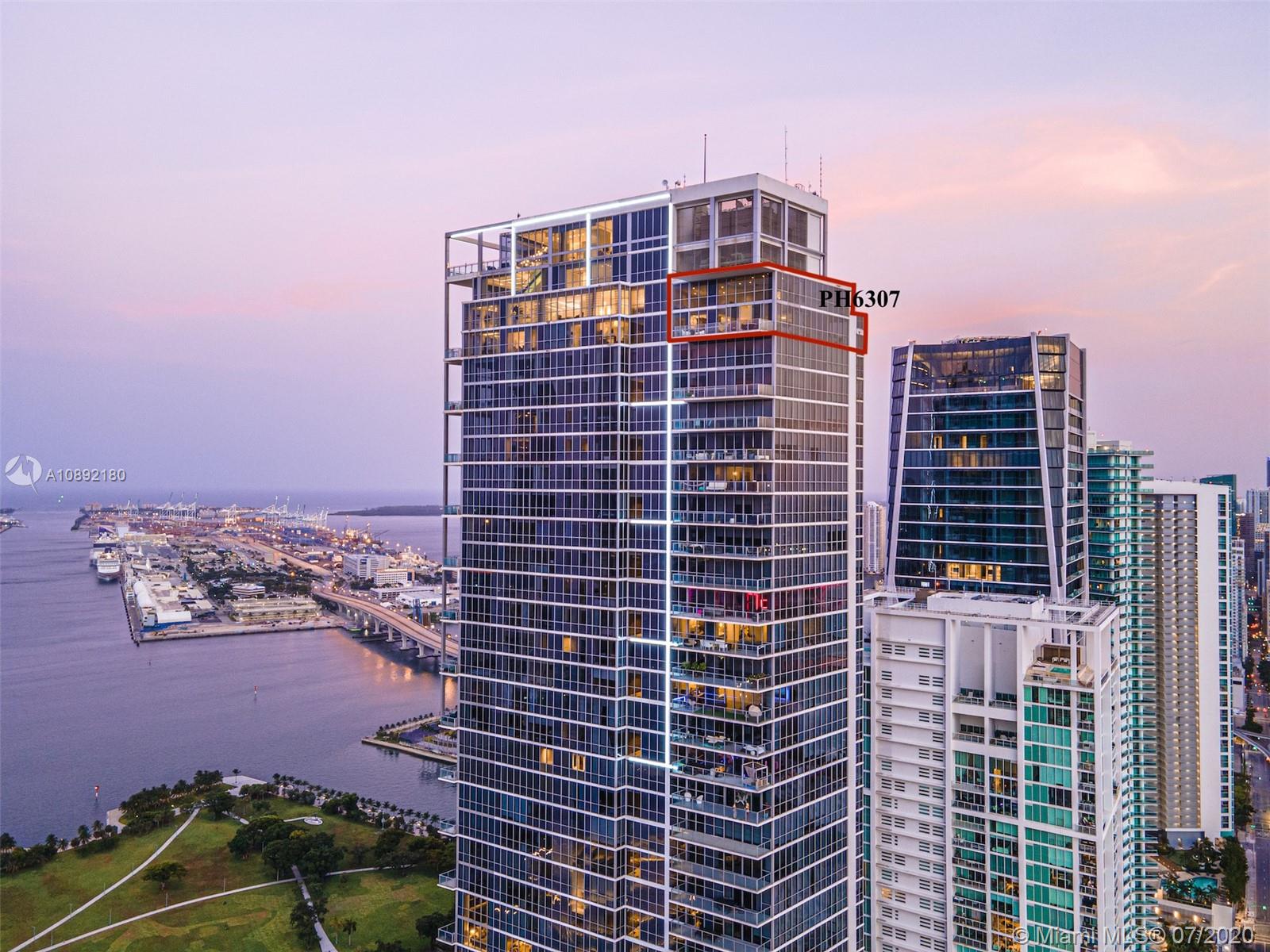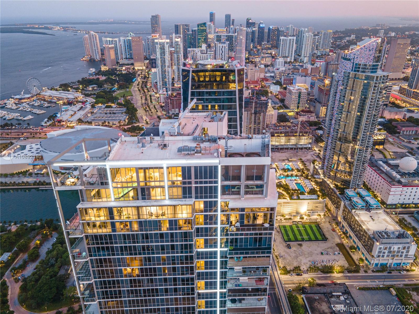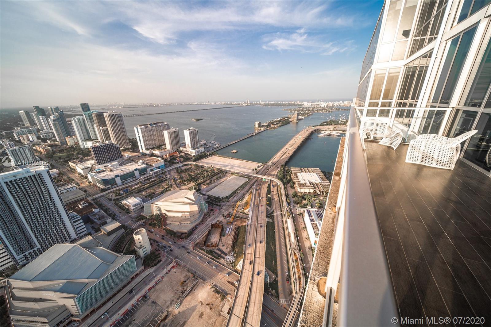 Soaring above downtown from the 63rd floor of the Marquis Miami tower, this magnificent 2-story penthouse captures sweeping 270° views of the city and Biscayne Bay. Two private elevators lead to the 2-bedroom, 2.5-bath condominium featuring 20’ ceilings and floor-to-ceiling window walls. More than 3,000 sq ft of open-plan living space features curated contemporary detail, chef-caliber kitchen with premier stainless steel appliances, a 2nd-floor media room, private view terrace and Crestron Digital System. Residents enjoy the luxury amenities of Marquis Miami, including 24-hour concierge, 2-story spa and fitness studio and 2 pools located moments from the waterfront, Museum Park, the Design District, American Airlines Arena, South Beach and the much-anticipated Miami Worldcenter.