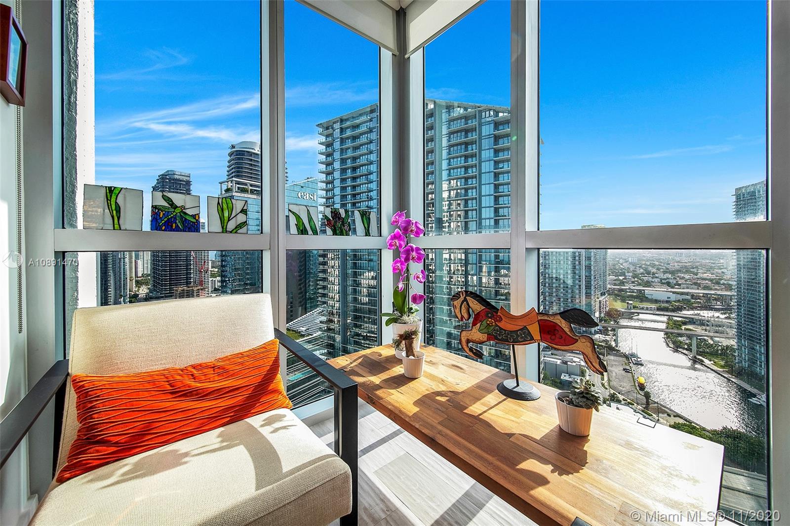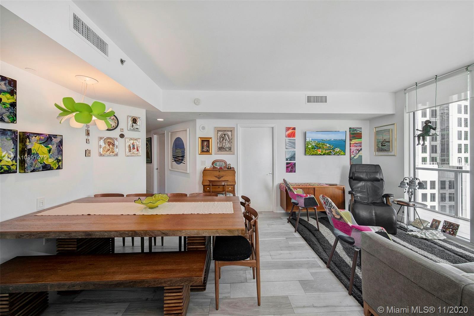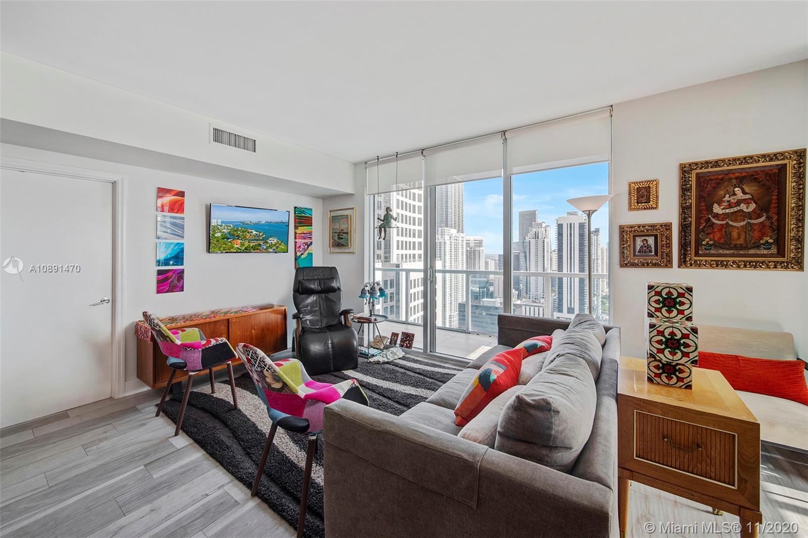 Amazing 2/2 corner high unit with Direct City and River View, extra-wide balcony overlooking Brickell and partial Bay. Split plan bedrooms each with walking closet and bathroom. Very bright unit with the best location across Brickell City Center, Metro Mover, Restaurants, Bars, etc. Short drive to Key Biscayne, Miami Beach, Coconut Grove and Coral Gables. Building has all amenities: Rooftop pool, amazing round shaped pool resembling the building architecture, gym pool, spa, sauna, steam room, movie theater, conference / party rooms. 1 assigned covered parking.