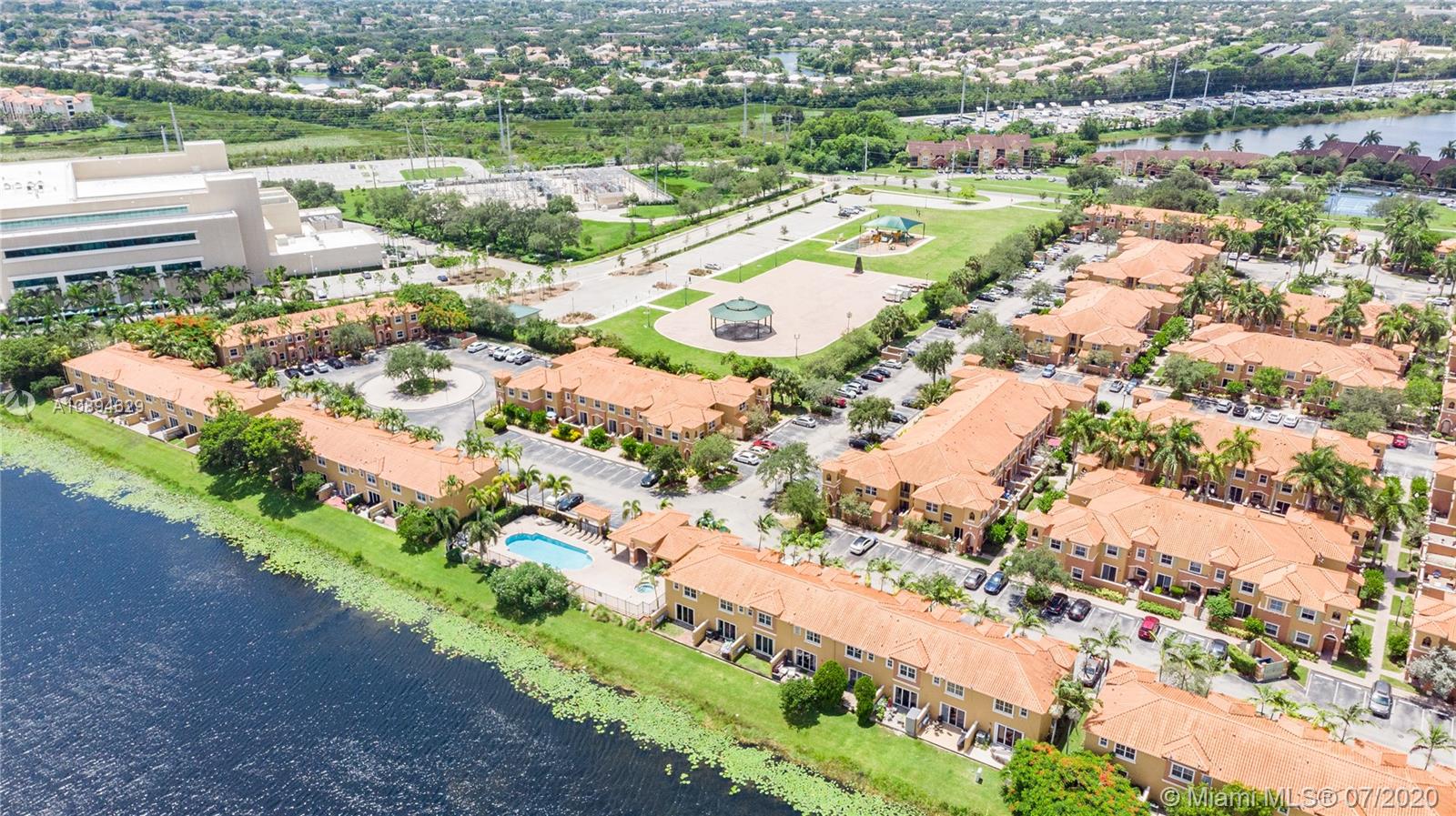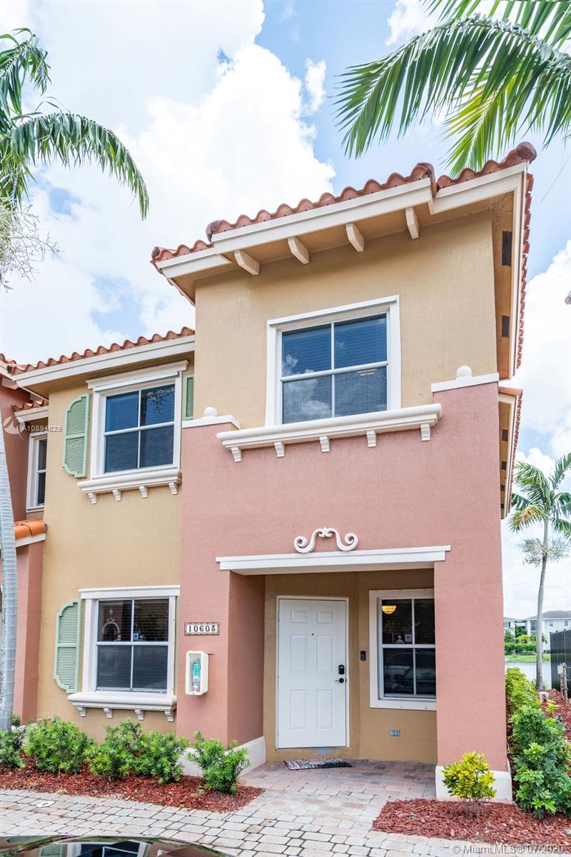 Beautiful 3 bed 2.5 bath townhouse style condo in Pembroke Pines! Centrally located to restaurants, grocery stores, the highway, malls, and good schools. Tile flooring is located throughout the entire first floor with a laminate wood staircase continued into the bedrooms upstairs; all flooring was replaced within the past 5 years. The kitchen is spacious and has been upgraded with granite counters and features a large cooking island. Right off the kitchen and dining room is a sliding door with stunning views of the lake while you enjoy your meals. Not only is this corner unit waterfront, it is located right next to the pool and spa. This home has two parking spaces directly in front and a bonus guest spot for any of your visitors. Fully hurricane protected with panel shutters.