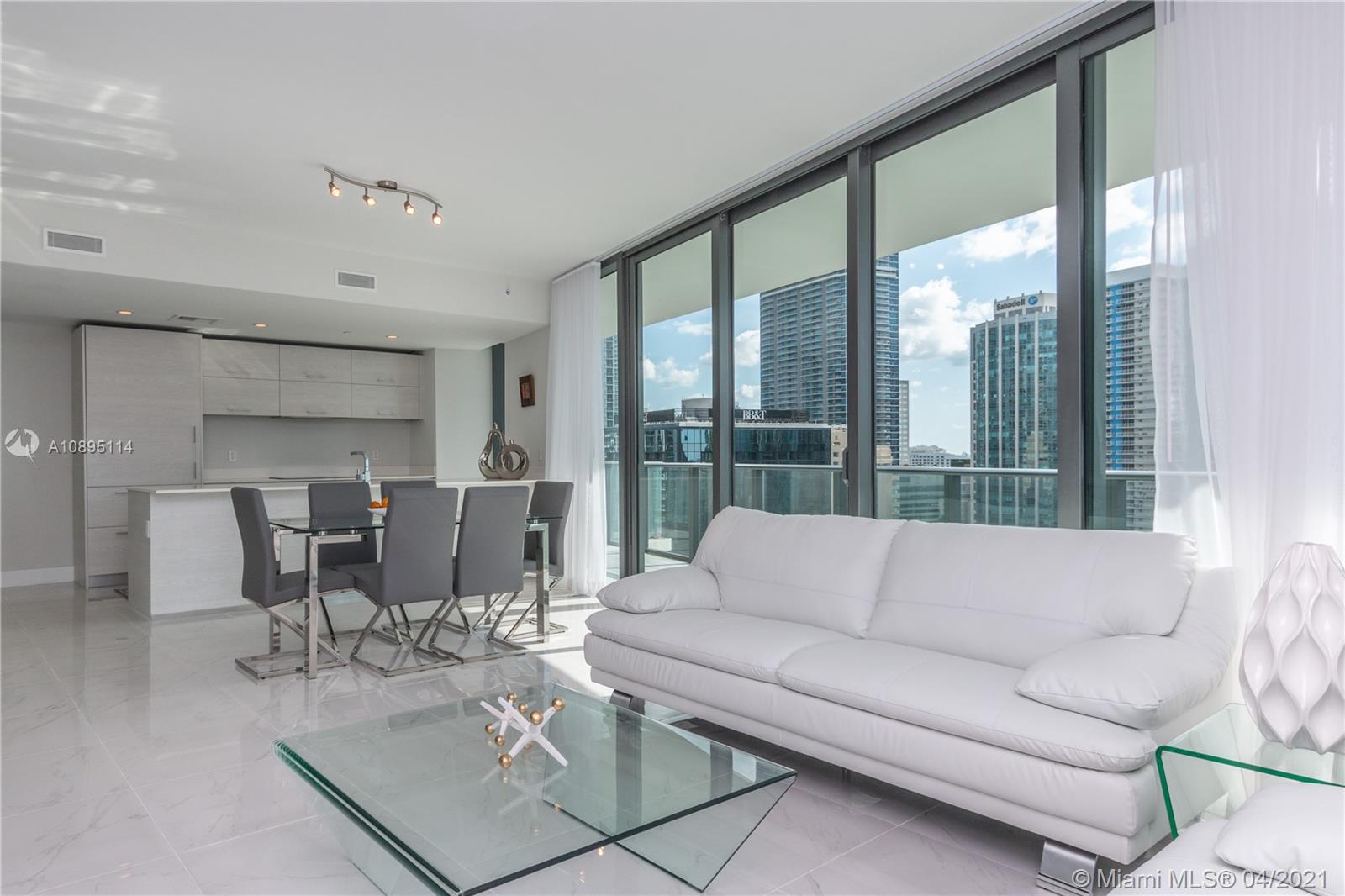 Priced to Sell, Newly Furnished unit on the 19th floor, 3bedrooms|2.5 bath + Den | 05 Line, best view of the building. Buyer will be the first to enjoy all furniture, including 65inch Flatscreen TV. Porcelain floors, customized closets, window/ Glass door drapery and upgraded light fixtures throughout. This home features stunning views of the Brickell skyline and SLS pool. Residents of the SLS can also enjoy hotel amenities and fitness center.