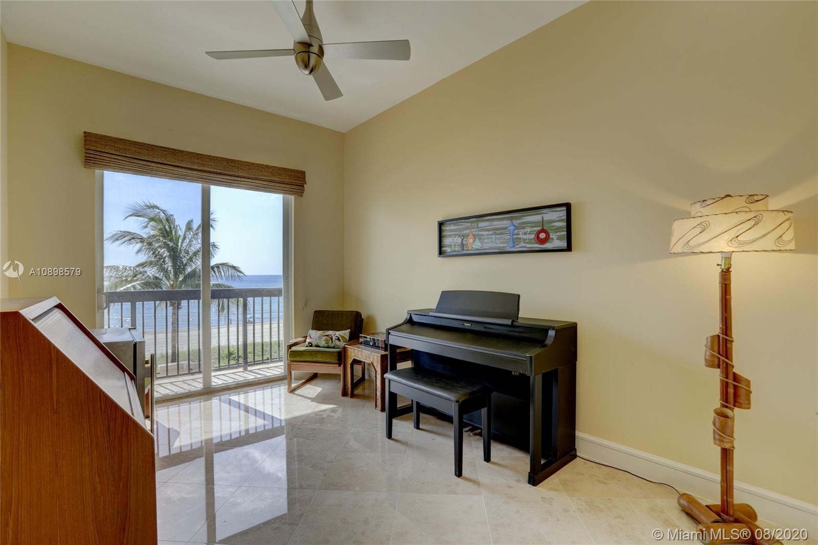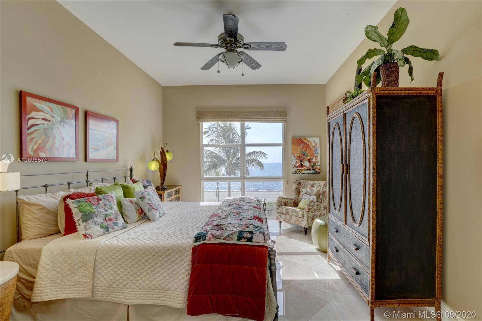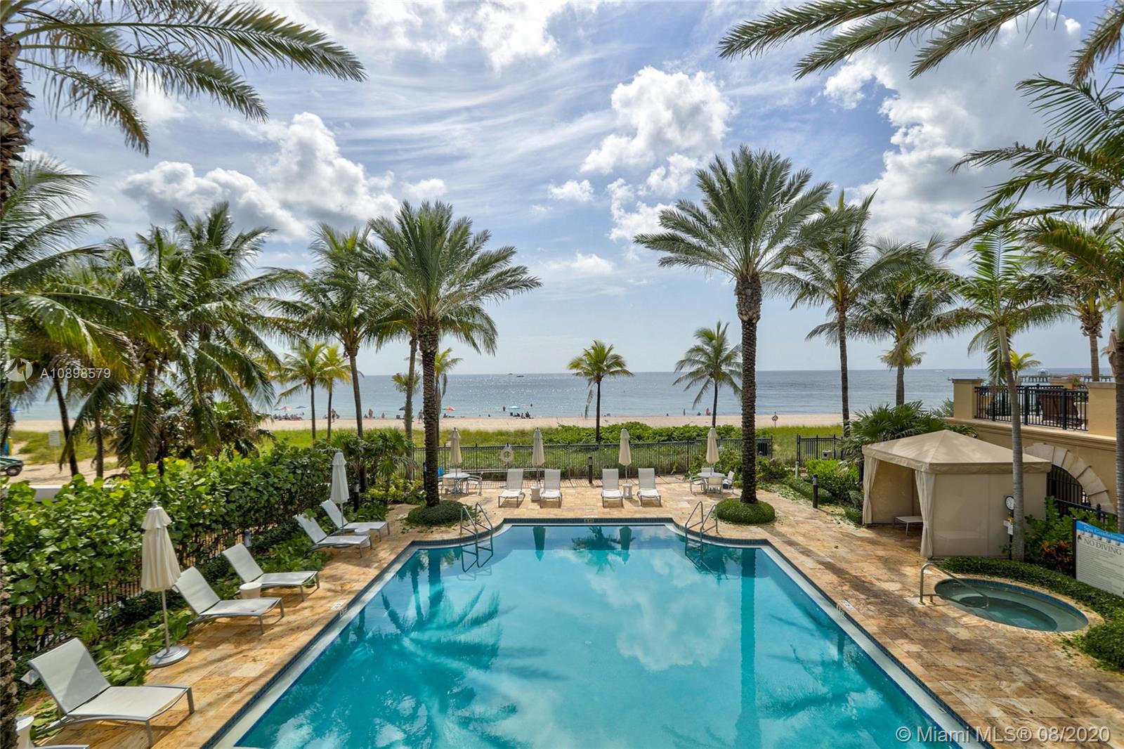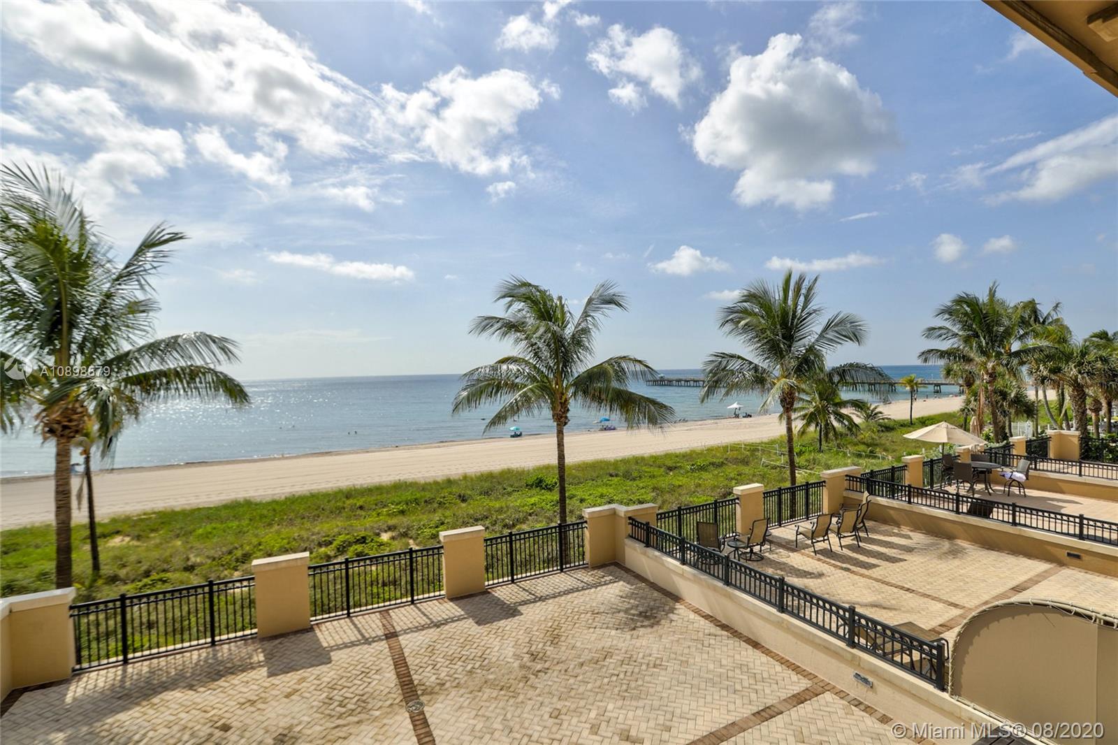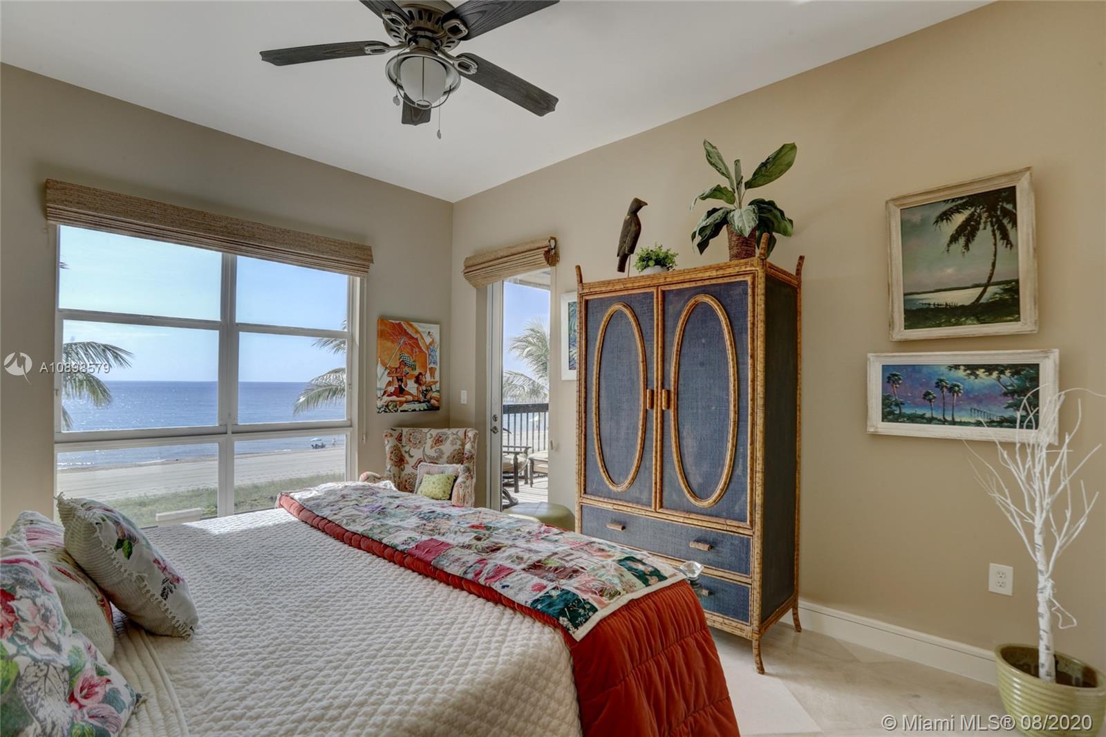 Awesome OCEANFRONT condo, located in the heart of Lauderdale By The Sea, DIRECT OCEAN VIEW from living area, dining area, and both bedrooms. Located just 1 block from all the action (Aruba, Vinnies, and other great restaurants, sports bars, shopping, evening concerts, Anglins Pier ,tennis, and more). Private Beach Club includes pool, spa, cabanas, gym, kitchen, and bbq. Enjoy this super quiet building with just 21 units of which only a few are occupied by year round residents. Many units are only seasonally occupied. Never wait or share an elevator as 2 elevators serve just 9 units. Marble floors, granite counters, 2 year old HVAC, 2 garage parking spaces, 2 storage rooms, 2 pets any size. This must see condo is currently the only available direct oceanfront unit in Villas By The Sea.