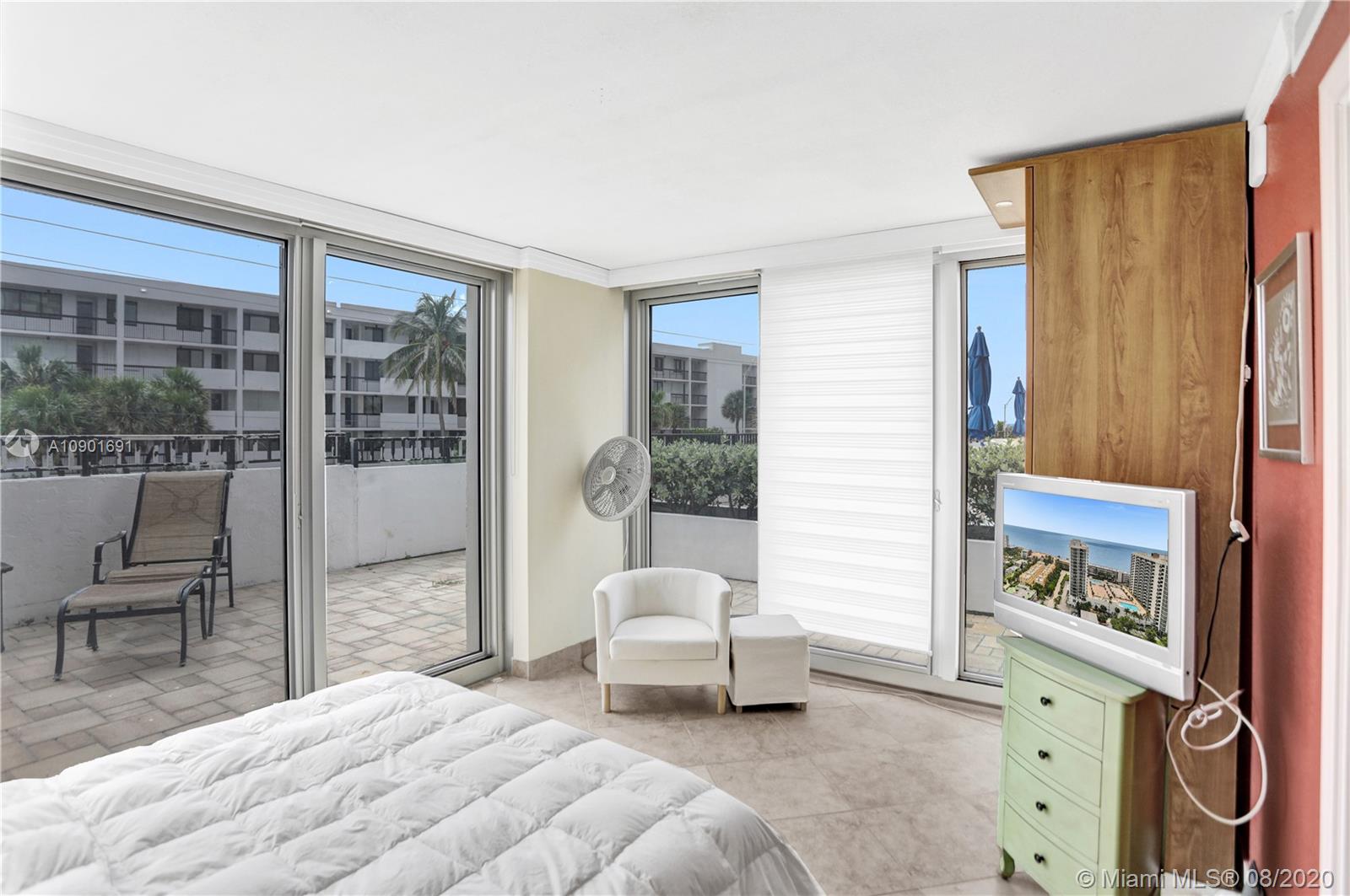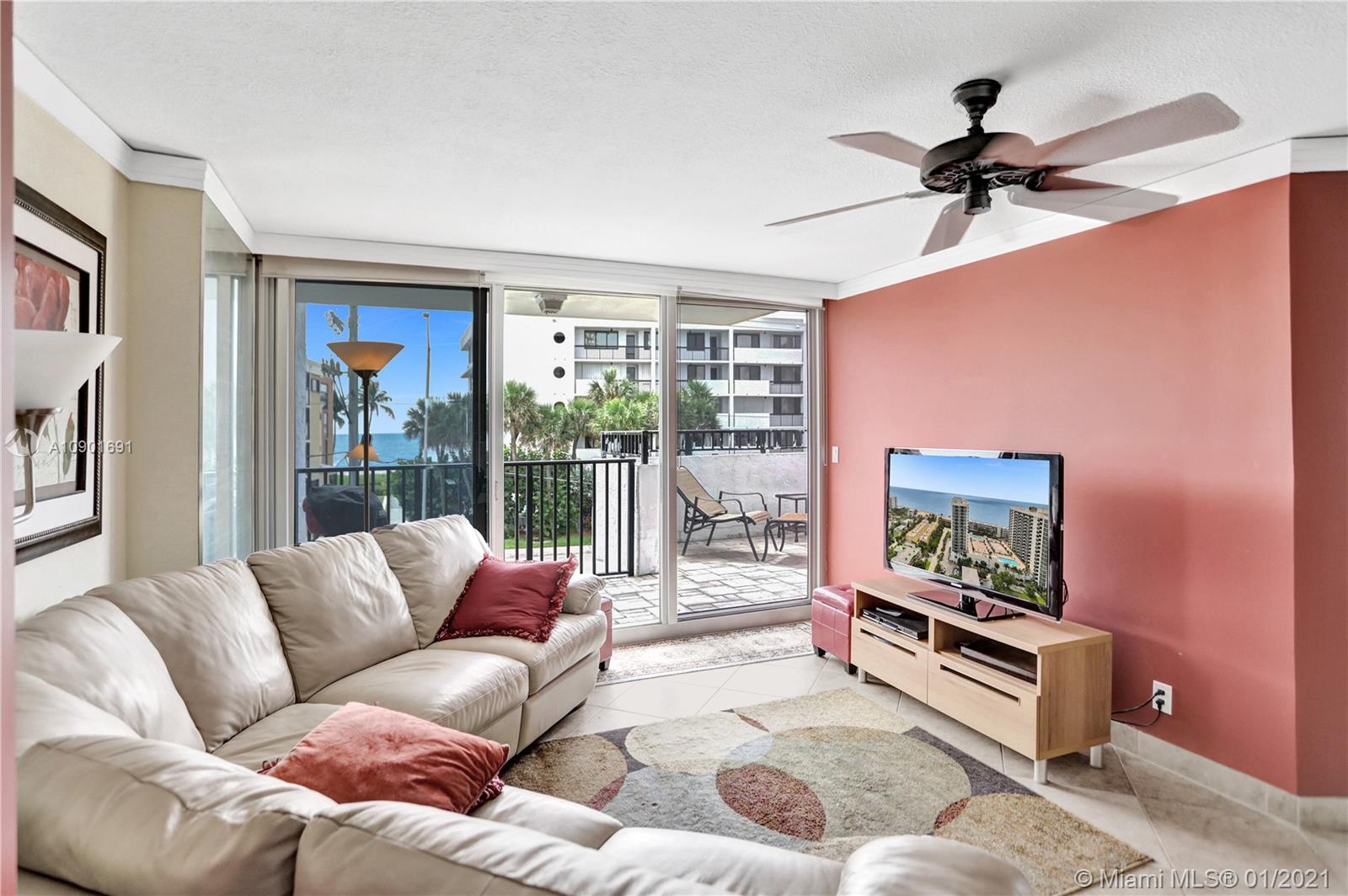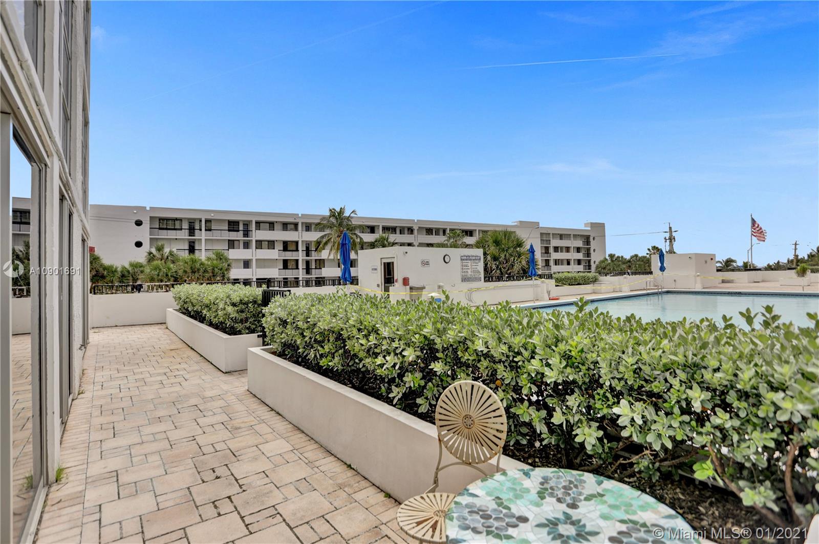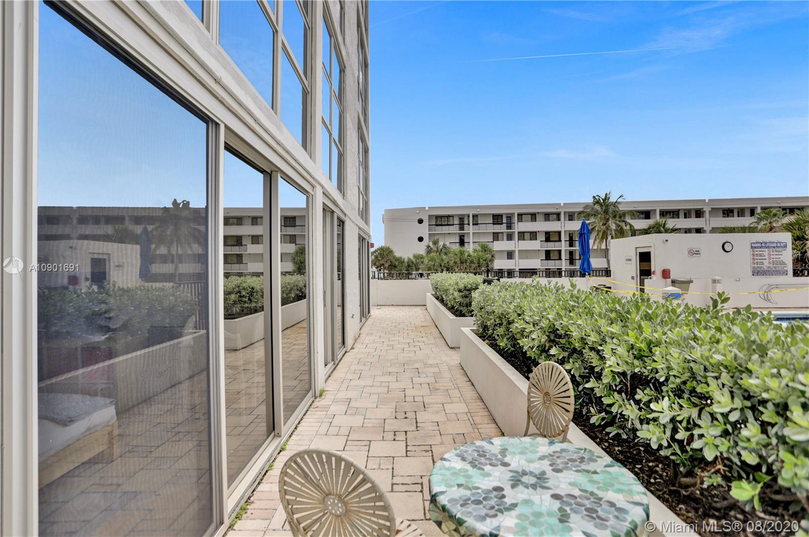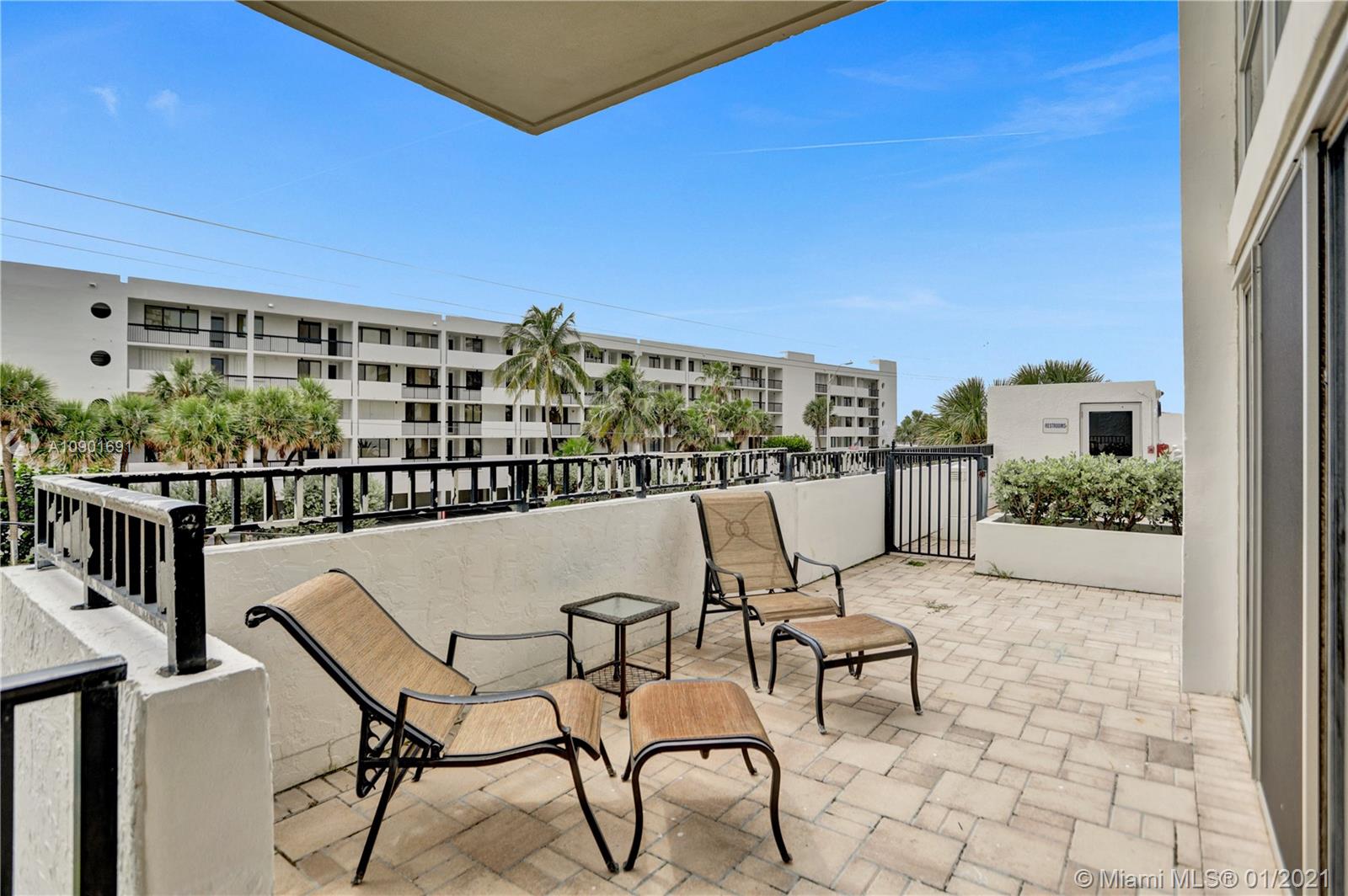 This ONE OF A KIND END UNIT LANAI features: DIRECT ocean views, DIRECT OUTDOOR ACCESS FROM 5 hurricane impact sliding glass doors (1 from each room) to an OVERSIZED,WRAPAROUND PATIO w/room for BBQ, dining & relaxing (500+ sq ft), AND direct access to pool, tennis etc. Fully renovated w/ hi-end ss appliances, some electronic shades, tons of storage, open kitchen, split floor plan, avail TURNKEY. Bldg is across public beach w/easy access (see pics). Resort type living. No rentals 1st year owned, but 90 day min lease 1 time per year thereafter. MUST SEE! This is a very special unit -- one of only two in the entire complex.