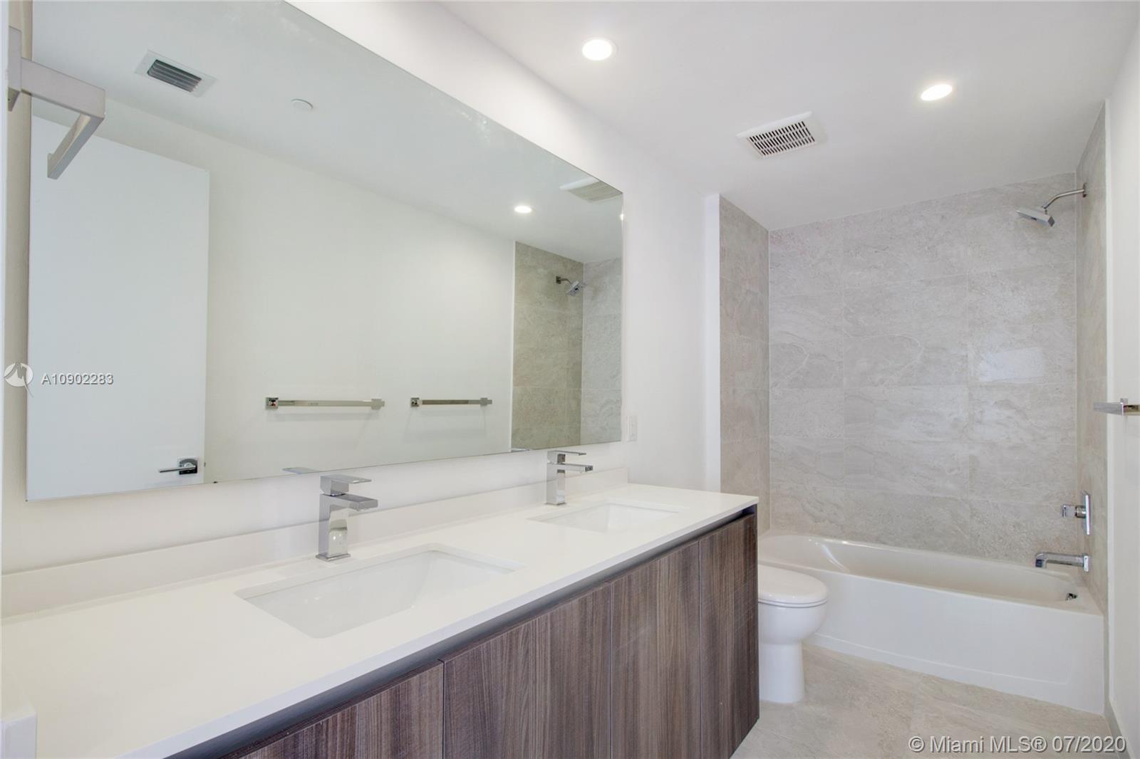Private elevator, spacious and functional split floor plan, 2 bedroom plus Den (convertible) with 3 full baths featuring porcelain flooring, oversized walk-in closets, Quartz counters and stainless steel appliances in kitchens. Come live the lifestyle at the Miami's most desirable neighborhood-Edgewater, in the city's latest and most desirable luxury waterfront building in front of the Margaret Pace Park. Five-star resort style amenities include sunrise and sunset heated pools, hot tub overlooking Biscayne Bay, BBQ, spa, sauna, steam room, resident's lounge with a private party room, business center, fitness center, yoga and pilates studio, movie theater, kids playroom and more.