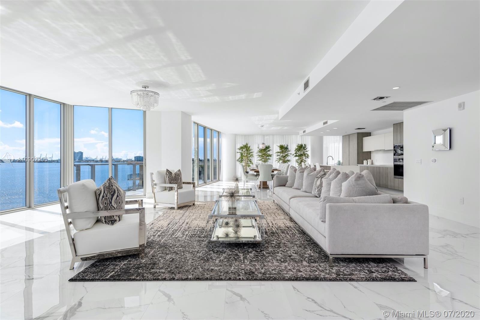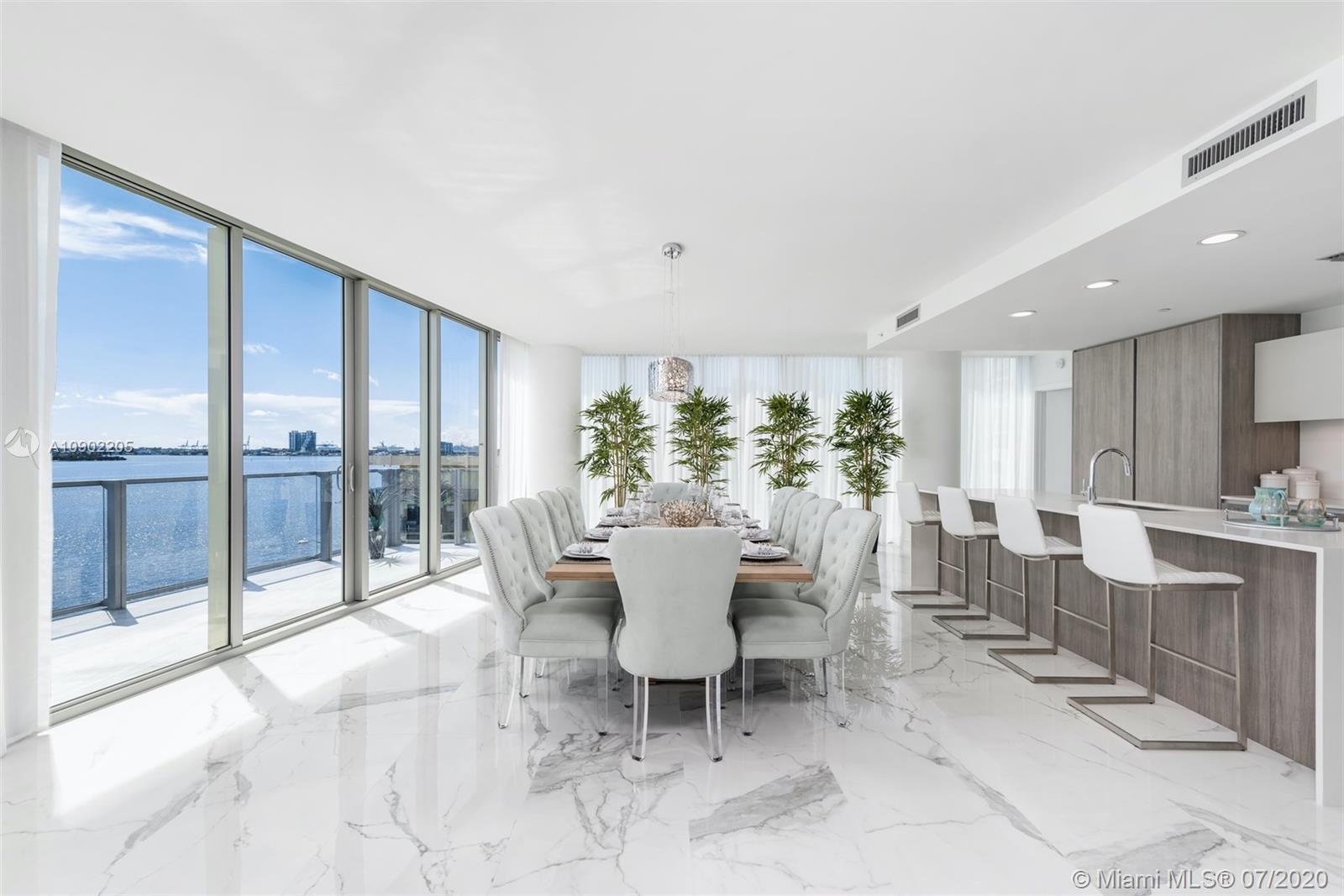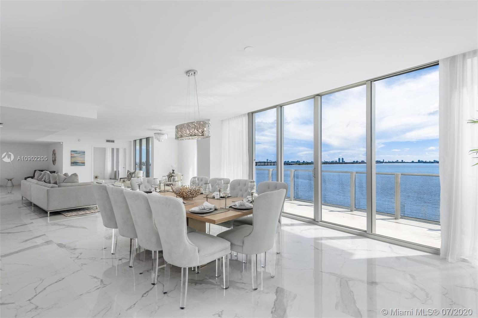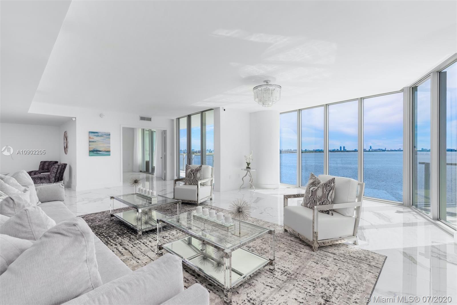 Enjoy unobstructed bay & Miami Beach views in this stunning residence in coveted Biscayne Beach. Enter this 4,473 SF residence through a private foyer that opens to breathtaking Biscayne Bay views w/80 linear ft. of living space facing directly east to the bay, floor-to-ceiling windows, 5 bedrooms, 5 full bathrooms & 1 half bath. Luxurious features incl captivating porcelain flrs, gourmet chef's kitchen with top-of-the-line appliances & 2 balconies overlooking the water. Oversized master w/sitting area & spacious closets in all bedrooms. Resort-style amenities that incl beach club w/cabanas, summer kitchen, 2 pools, jacuzzi, restaurant, lounge rm, theatre, business center, fitness center. Two reserved (side by side) parking spots –steps from your private vestibule on the same level.