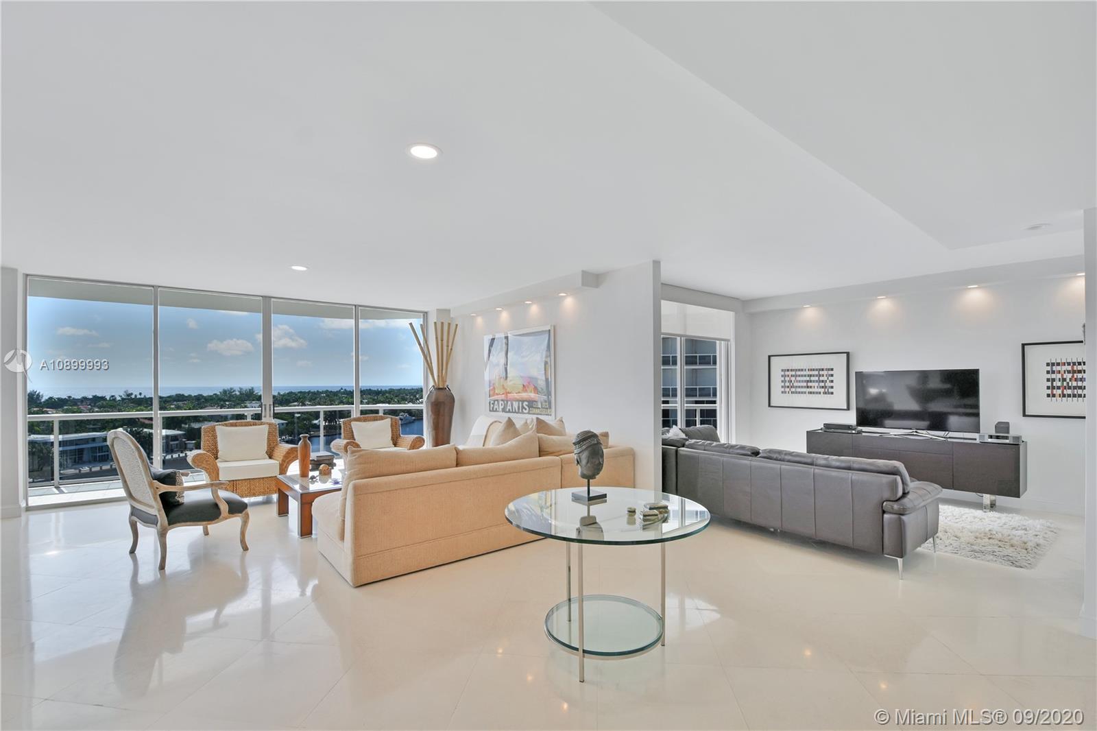 Beautiful limestone floors lead the way from your private elevator entry foyer to endless ocean, intercoastal, and Golden Beach views, leaving you breathless. Not only does this spacious home have terraces and sliding glass doors from every room, but it also offers an updated kitchen, home office area, and the most incredible sunlit energy that flows throughout. The third bedroom is now a den/home office, which with the snap of a finger, can be the third bedroom again. This home boasts a brand new a/c and custom spacious closets. Click on the video tour above to get the full feel of this fantastic layout. One Island Place, private and walking distance to so much, will satisfy the pickiest of buyers. One Island Place offers two pools, barbecues to use, renovated gym, poolside cafe, and more