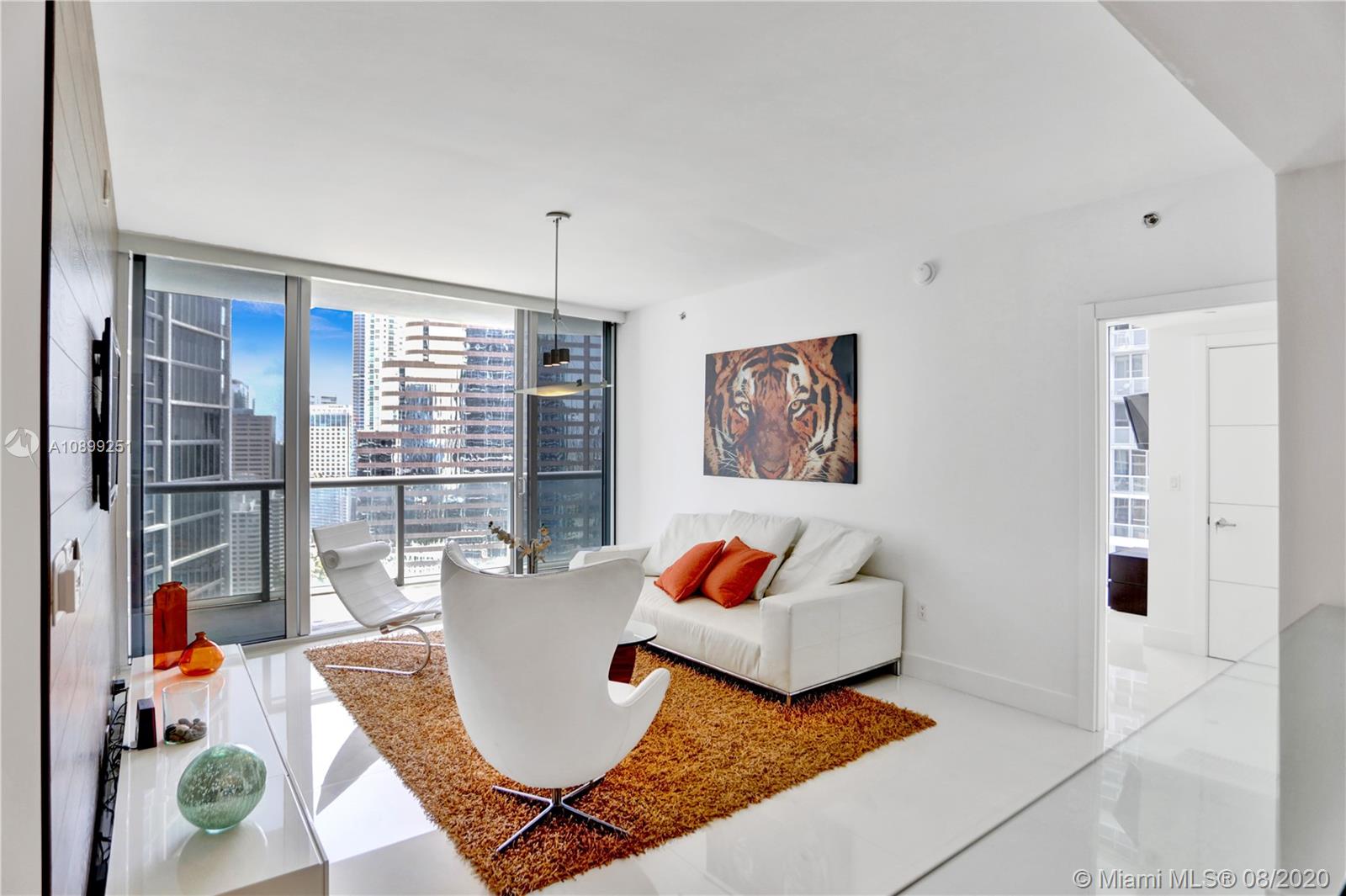 Iconic building on Brickell like no other! This inviting corner unit has a split bedroom plan finished with custom made wood doors and closets. Beautiful 24 x 24 white flooring throughout, top of the line appliances, assigned parking space and electric shades with blackout in bedrooms. Access your expansive balcony from every room and enjoy bay views to the East, the Brickell skyscrapers to the South and the Miami River to the West. With fine dining like Cipriani Italian Restaurant and Cantina La Veinte, over the top amenities like the IconBrickell Spa, three infinity pools, poolside lounge service, 24hr valet, state of the art fitness center, protected green spaces on either side of complex and more, there's no other place to live but at Icon Brickell!