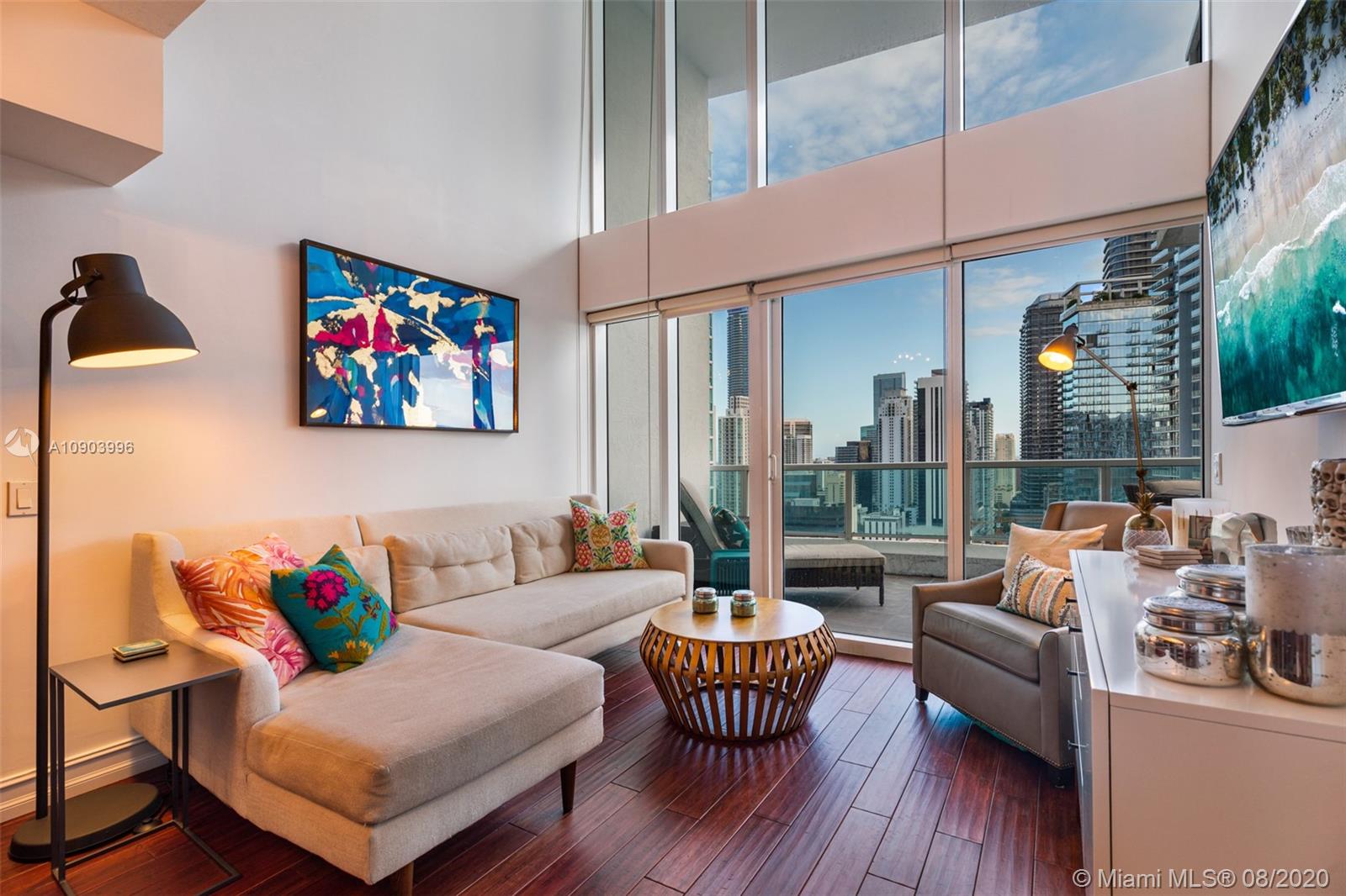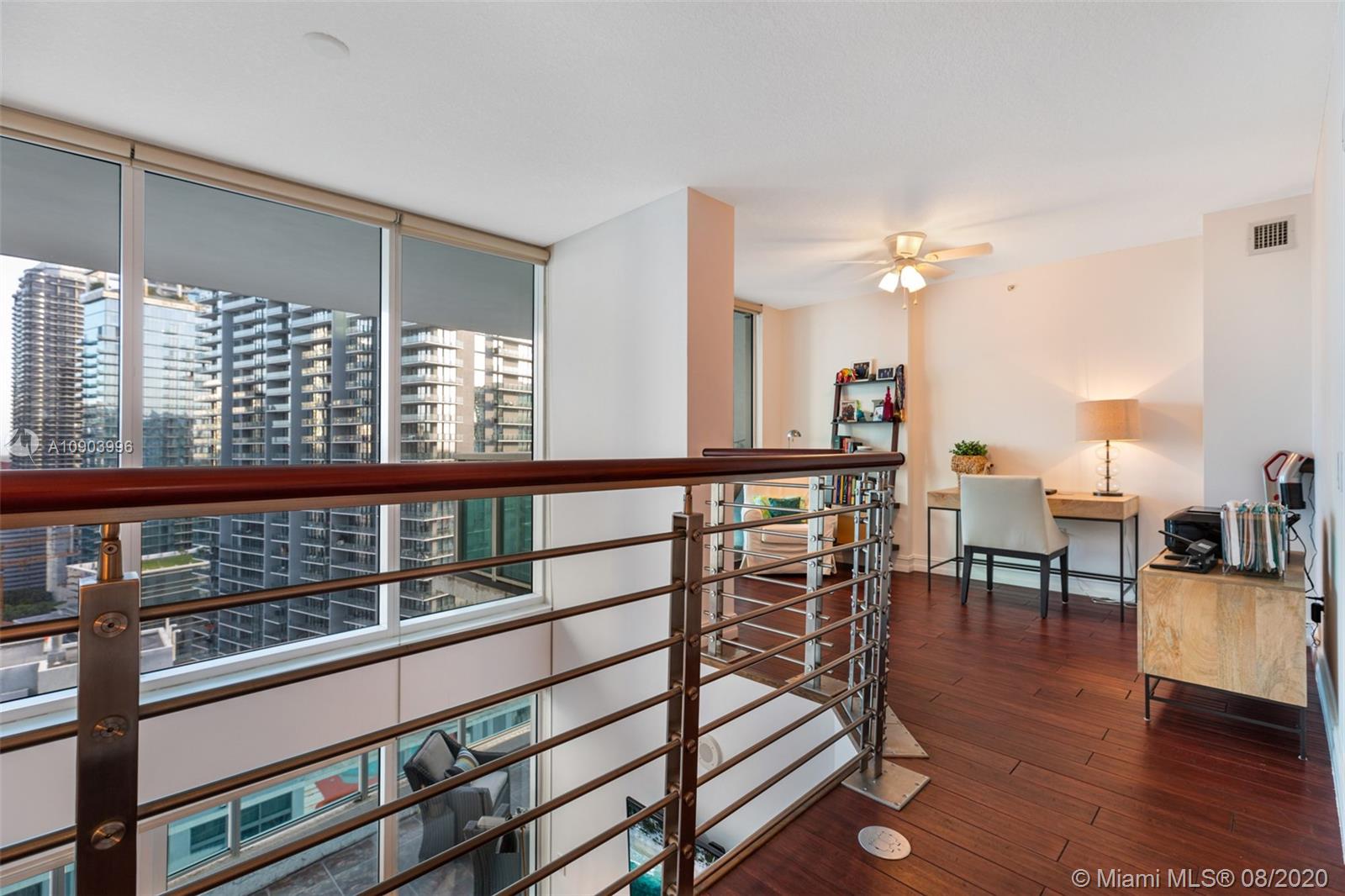 Turn the key to the Lovely Loft - the cutest 2/2 with a huge double story balcony and extra den/office space. Because of the double-height ceilings, this “18th floor” unit is really on the 36th, giving residents magnificent, unobstructed Brickell views. What makes this 1,402 SF unit different is the amount of storage - 6 closets including a large area under the stairs. The open master bedroom upstairs overlooks the living space downstairs, and there is a spacious nook that can be used as an office space or seating area. Namely, Brickell on the River is in a prime location - in the middle of the action but also on a large lot with a riverwalk, a restaurant, and metro access. Residents love the luxurious feel and the amenities, including 2 infinity pools and 5 level fitness center.