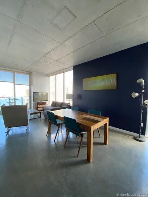 2/2 new condo apartment at beautiful Centro Downtown Miami. Great location! Corner and biggest unit in the building. Each bedroom has its own bathroom and closet. One of the bedroom is open. Spacious and beautiful, concrete floors, 10-feet high ceilings, SS energy smart appliances, polished concrete floors, floor to ceiling windows are few of the many unit features. Basic cable, basic internet and water included. Washer and dryer inside the unit. Amenities include: rooftop pool with 360 view of Miami, 2-story PH recreation area, 2 level club room, gym, spa, welcome lobby, etc. No parking garage in the building. Building offers parking at Miami Tower building for $150 per month or valet parking 24/7 for $230 per month. Tenant occupied until Dec 15, 2021, paying $2,300/m. allow 24-hrs notice