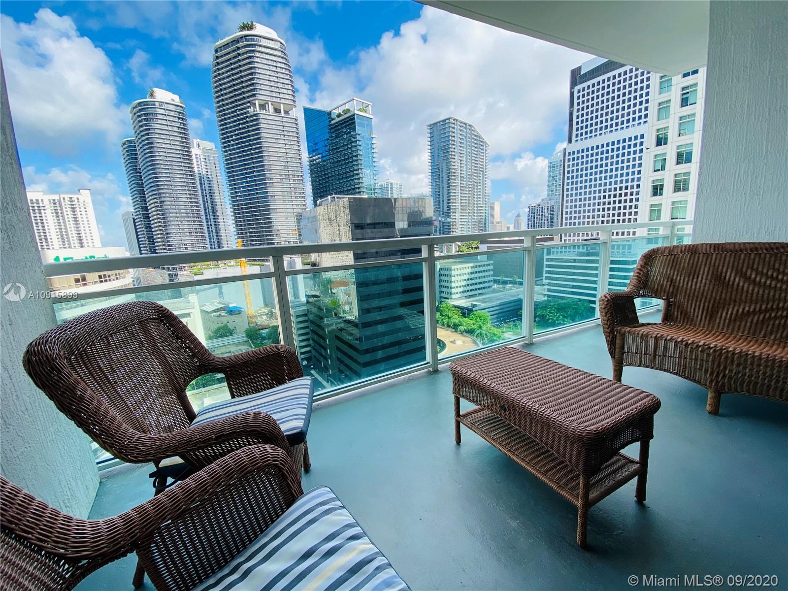 Live in the best location in Brickell. This is the largest one bedroom corner unit in the building with a large walking closet. Residence features modern high ceilings, stainless steel appliances, imported italian cabinetry Amenities: 24 hr security and concierge, 24 hour valet parking, State of the art Fitness Center in each tower, 2 Infinity-edge heated pools, Steam room,Theater room, Business center, party room, pool table & lounge. Walk to Mary Brickell Village and Brickell City Center mall. Minutes away from American Airlines Arena & Performing Arts. HOA includes Water, basic cable & internet.