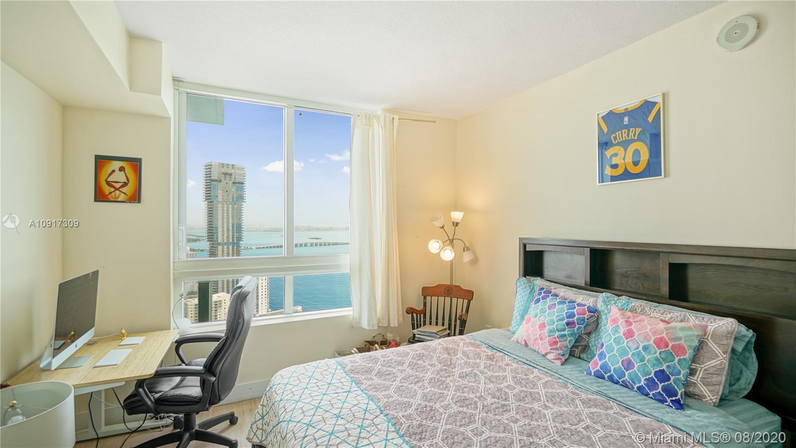 Phenomenal True 3 BR and full 3 BR condo on the 40th floor boasting the Best Views the Downtown Edgewater area has to offer. Bay and water views from two balconies and lots of natural light. Ceramic Tile throughout, custom made walk in closets in all rooms, his and her showers in master. Two pools, two story gym with sauna, multiple party rooms and common areas. Water, cable, sewer, trash, basic cable, and internet included in monthly maintenance. Perfect location across the street from Margaret Pace Park. Minutes to Brickell, the beaches, MIA airport, Midtown, Wynwood. Video Walk through Available!