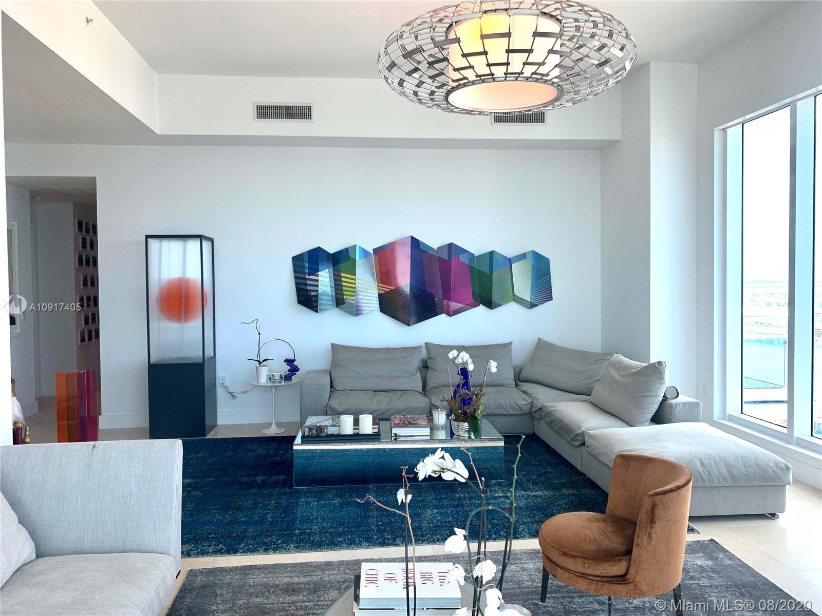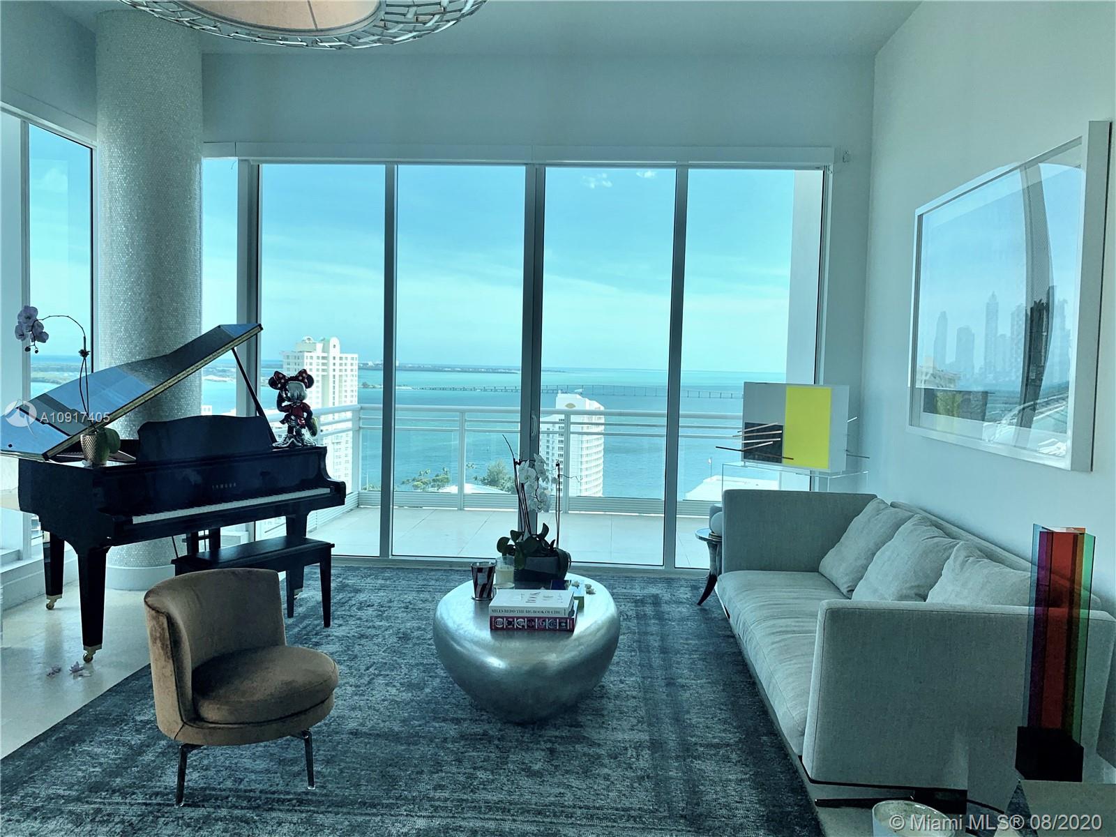Beautiful views to Biscayne Bay and Miami's exuberant skyline. Elegant and modern decoration, brand furnished and comfortable rooms with complete accessories for livingroom and electric shades. Very nice marble floor. Twelve square foot high ceilings. Terraces with glass railing hight impact door. Elegant stone kitchen countertops and backsplash, Miele kitchen appliances. 4 beds, 4 1/2 baths with 2631 sqft area under air conditioning. Private elevator direct to the apartment. Two covered parking spaces.