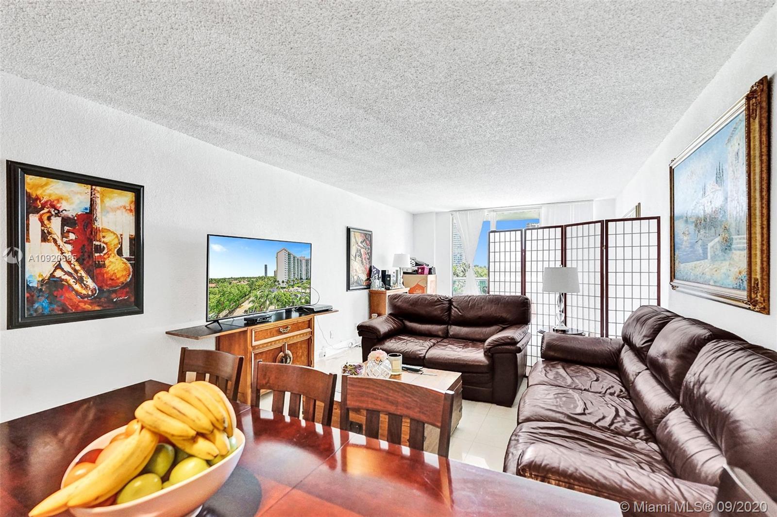 A MUST BUY! Priced to sell! Beautifully renovated unit with tile floors all throughout. Enjoy renovated bathrooms and a large kitchen with an open counter top! Enjoy great views from a very large balcony! A/C, water, Cable TV, Hi speed internet are all covered in the maintenance fee of $872/m. Brand new renovated lobby! Great amenities including barbecue area, mini market, new upgraded gym, heated pool, business center, tennis court, dogie park, concierge, front desk, 24 hr valet & security. Prime location steps away from the beach! Only a few minutes from Rated A+ school, Aventura Mall, restaurants and shops. Hurry this gem will not last! Easy to show.