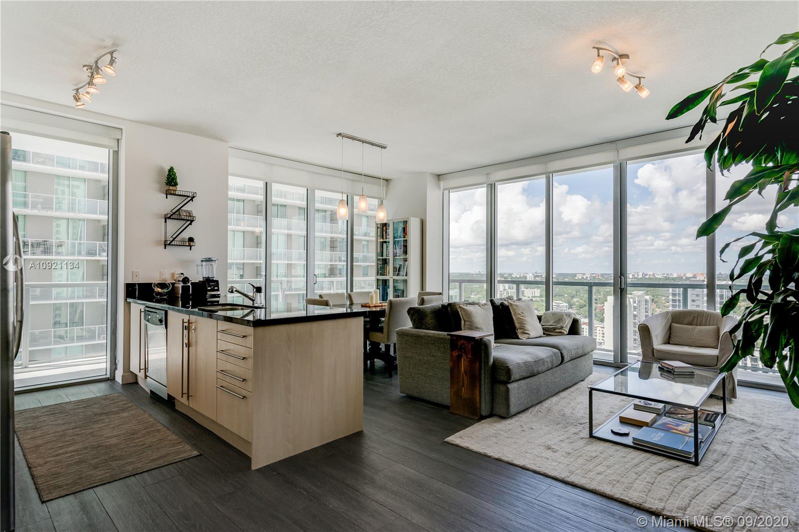 Bright and cozy corner unit with 2 bedrooms and 2 full bathrooms in a split floor plan. Great city views from the wrap around balcony. Unit offers stainless steel appliances, granite countertop, washer/dryer, and many upgrades such as light dimmers, Porcelanosa Italian tile, and top-quality blinds, including both regular and blackout blinds in the bedrooms. Designed by world-famous Arquitectonica, Axis on Brickell has incredible amenities: lap and resort-style pool with cabanas, hot tub, BBQ grill, state-of-the-art fitness center, club room with billiards tables and kitchen, bistro-style bar seating, kids playroom, business center, steam rooms, 24-hour security/concierge and valet parking. Located in the heart of Brickell, Miami, few steps away from supermarkets, pharmacies, metrorail