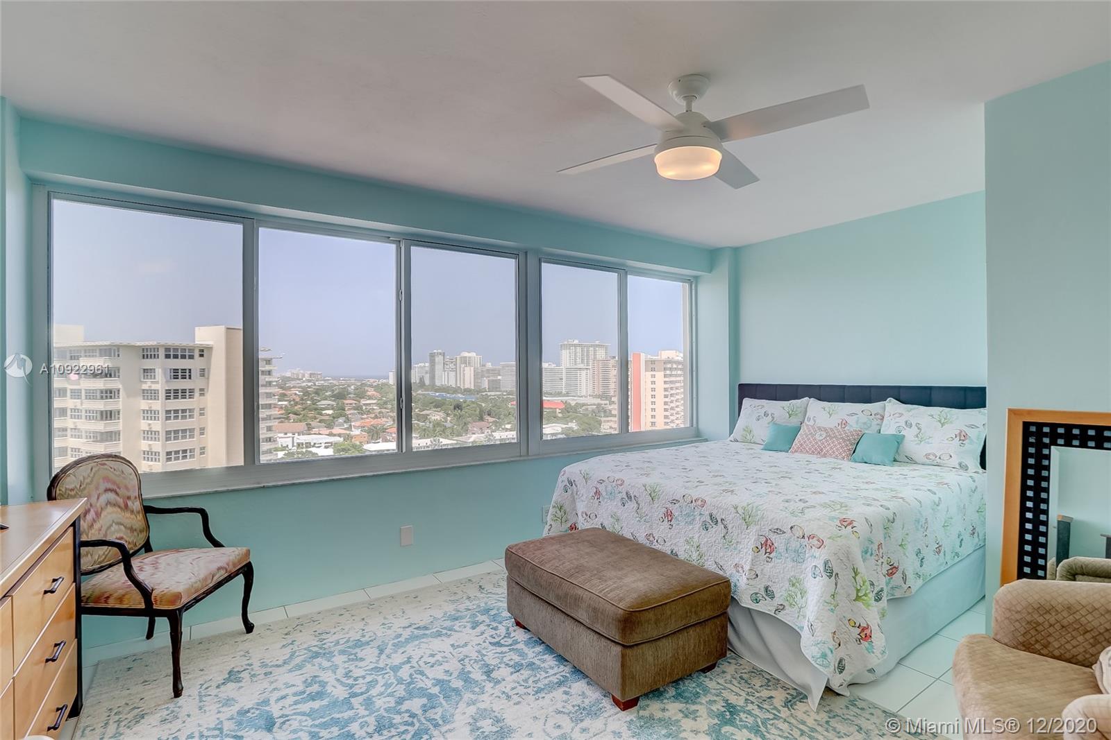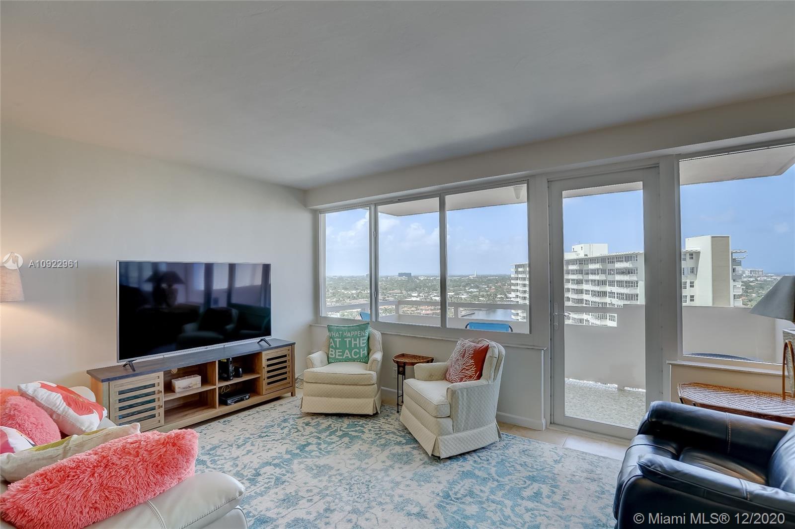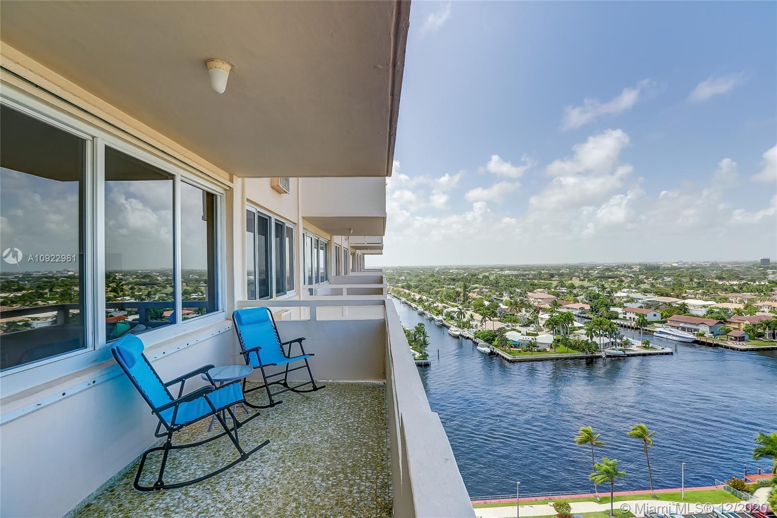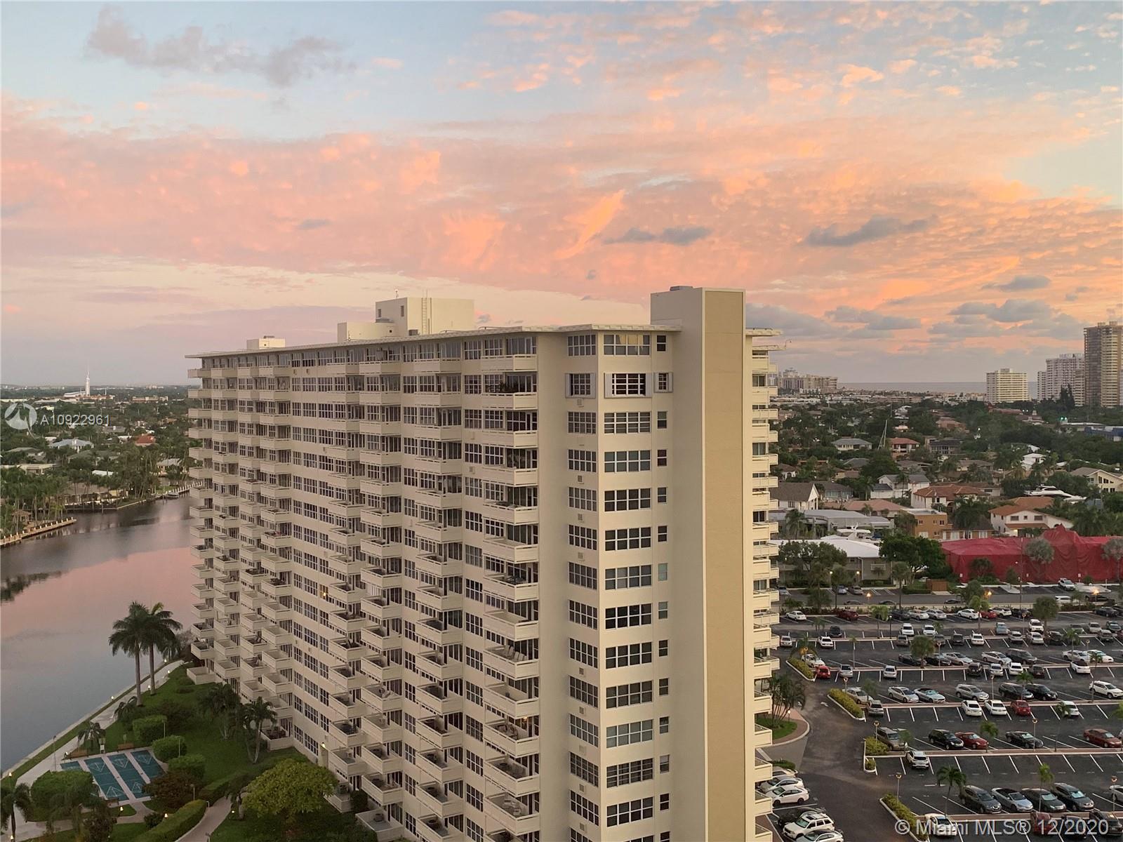 Incredible opportunity to own move-in ready 2 Bed/2 Bath condo with breathtaking waterviews in the Coral Ridge West Tower! Enjoy your slice of paradise on your 16th story balcony overlooking the surrounding cityscapes, the intracoastal waterway and the ocean! Open style kitchen and living space are perfect for a second home or permanent residence! New kitchen appliances, new ceiling fans and lights, and stainless steel water filter system! Home has neutral tile in baths and on floors! Windows and door are impact! Fantastic views from every window and room! Coral Ridge West Tower is stacked with incredible amenities including heated pool, shuffleboard, library and putting green! This is the ideal location, across the street from the beach and minutes from Lauderdale by the sea and Las Olas!