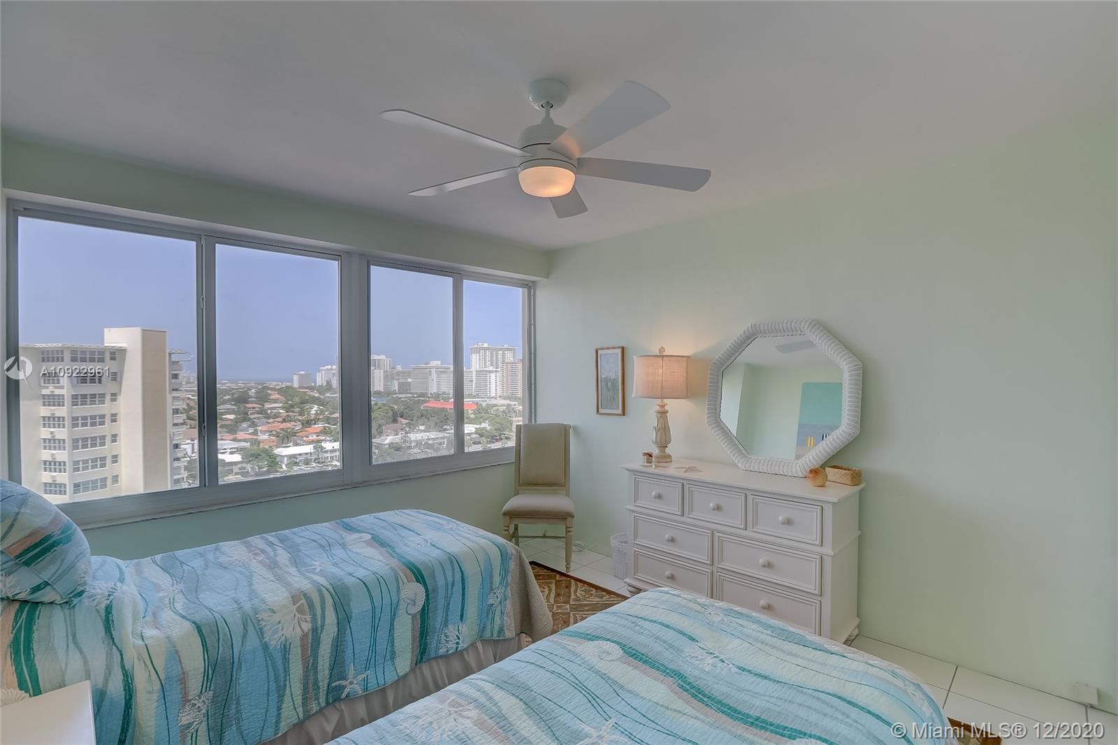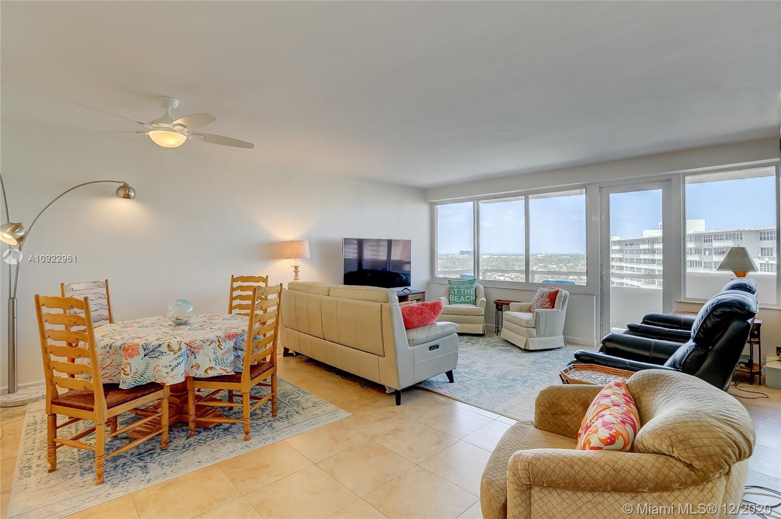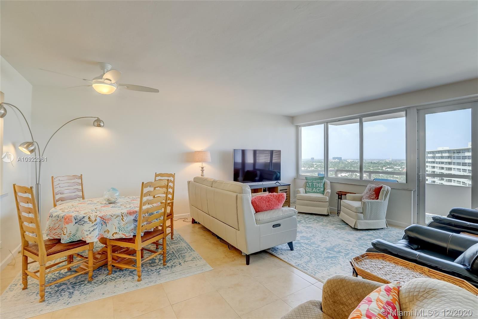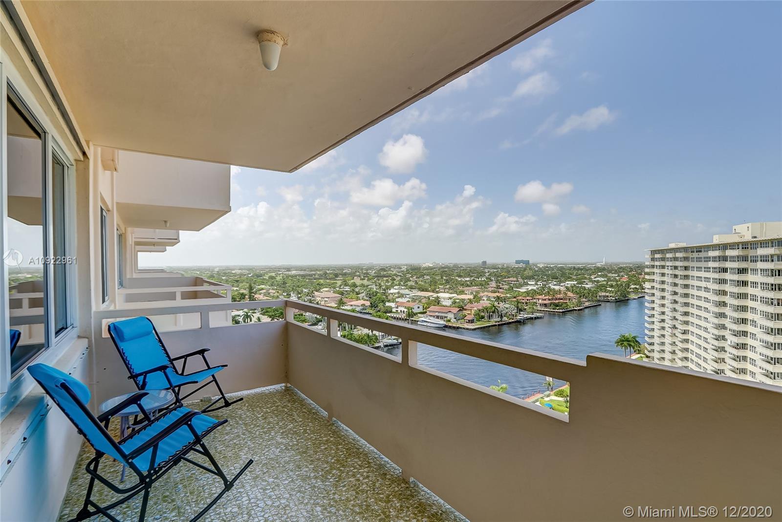 Incredible opportunity to own move-in ready 2 Bed/2 Bath condo with breathtaking waterviews in the Coral Ridge West Tower! Enjoy your slice of paradise on your 16th story balcony overlooking the surrounding cityscapes, the intracoastal waterway and the ocean! Open style kitchen and living space are perfect for a second home or permanent residence! New kitchen appliances, new ceiling fans and lights, and stainless steel water filter system! Home has neutral tile in baths and on floors! Windows and door are impact! Fantastic views from every window and room! Coral Ridge West Tower is stacked with incredible amenities including heated pool, shuffleboard, library and putting green! This is the ideal location, across the street from the beach and minutes from Lauderdale by the sea and Las Olas!