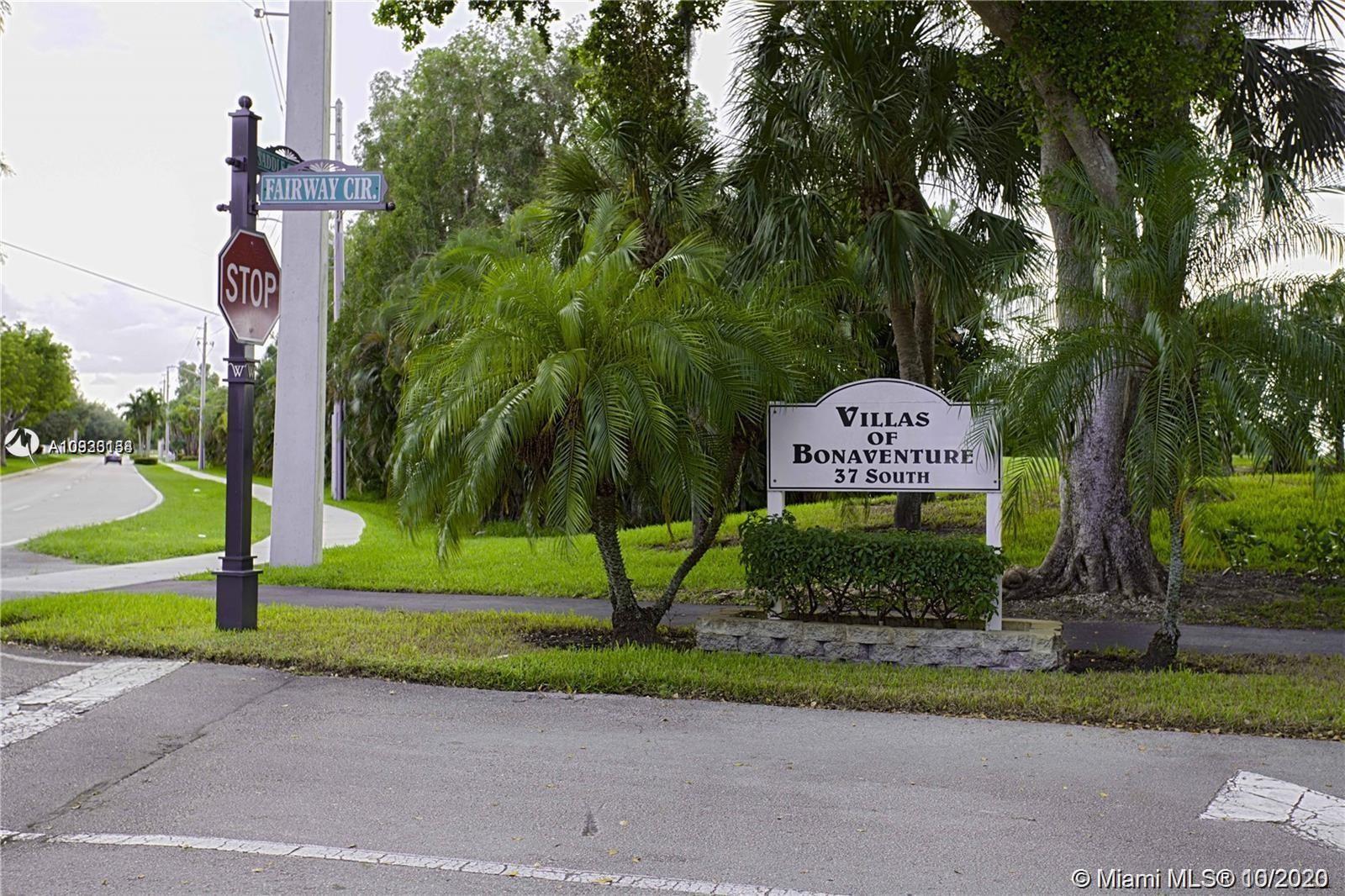 Beautiful corner Villa Home 2/2 Water View at Bonaventure centrally located in Weston. Large kitchen with Stainless Steels appliances. Large master bedroom with walk-in closet, huge screened patio, perfect for entertaining. Amenities include multiple pools, tennis court, indoor skating /Basketball, Bowling, theater, remodel GYM with ton of equipment & much more. Association covers roof, insurance, water, exterior paint, cable, and trash.You will love coming home at this neighborhood and this Vila is looking for a happy and lucky family to move in! Seller is Motivated!!!