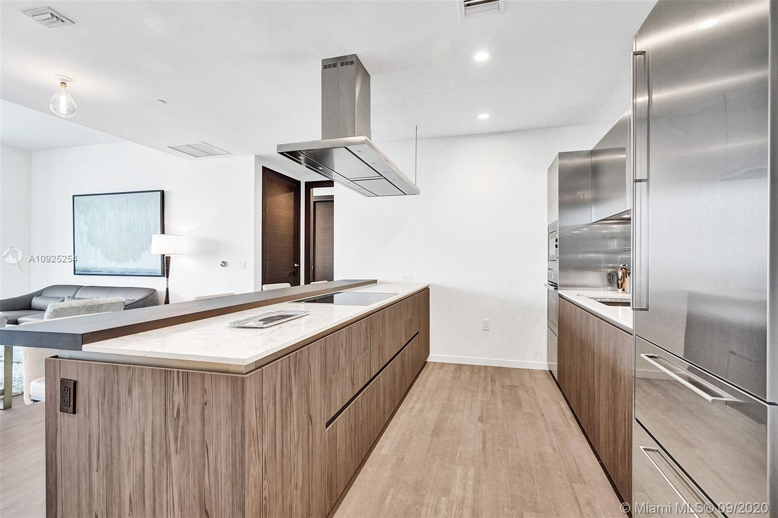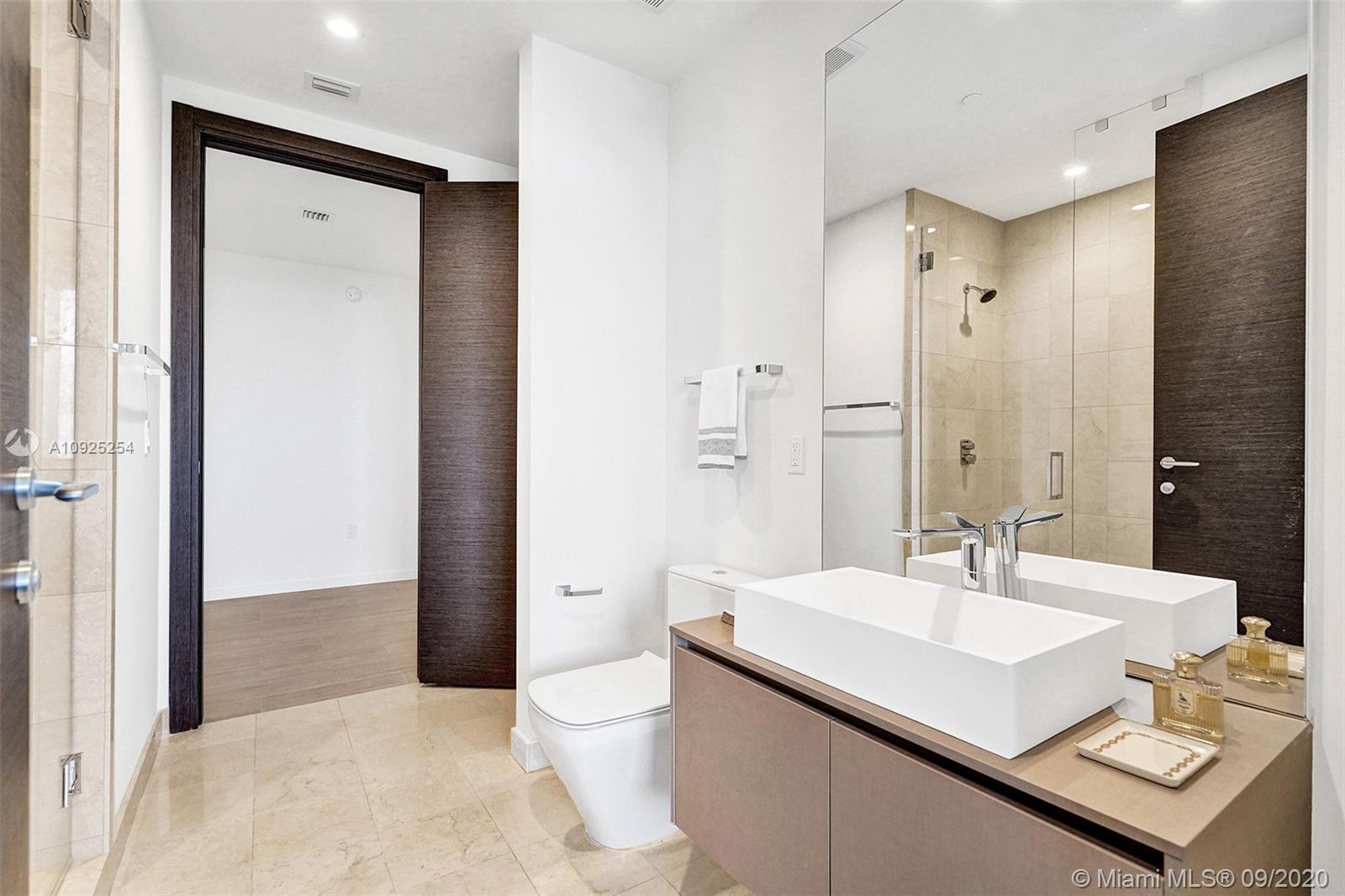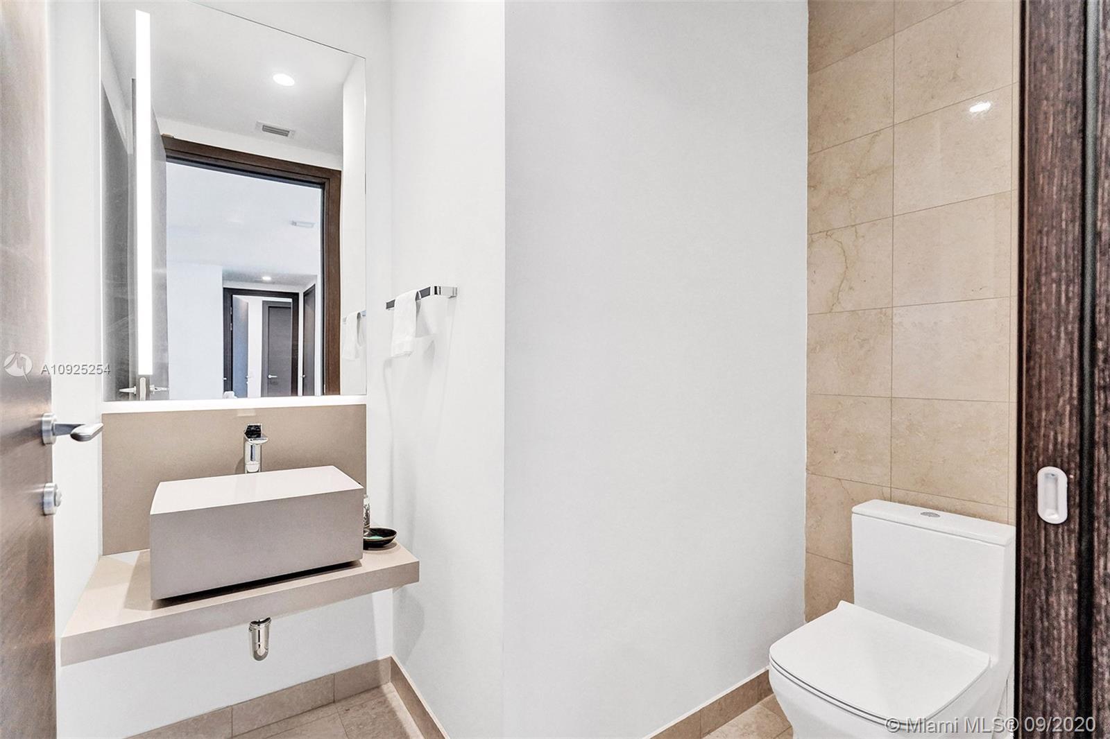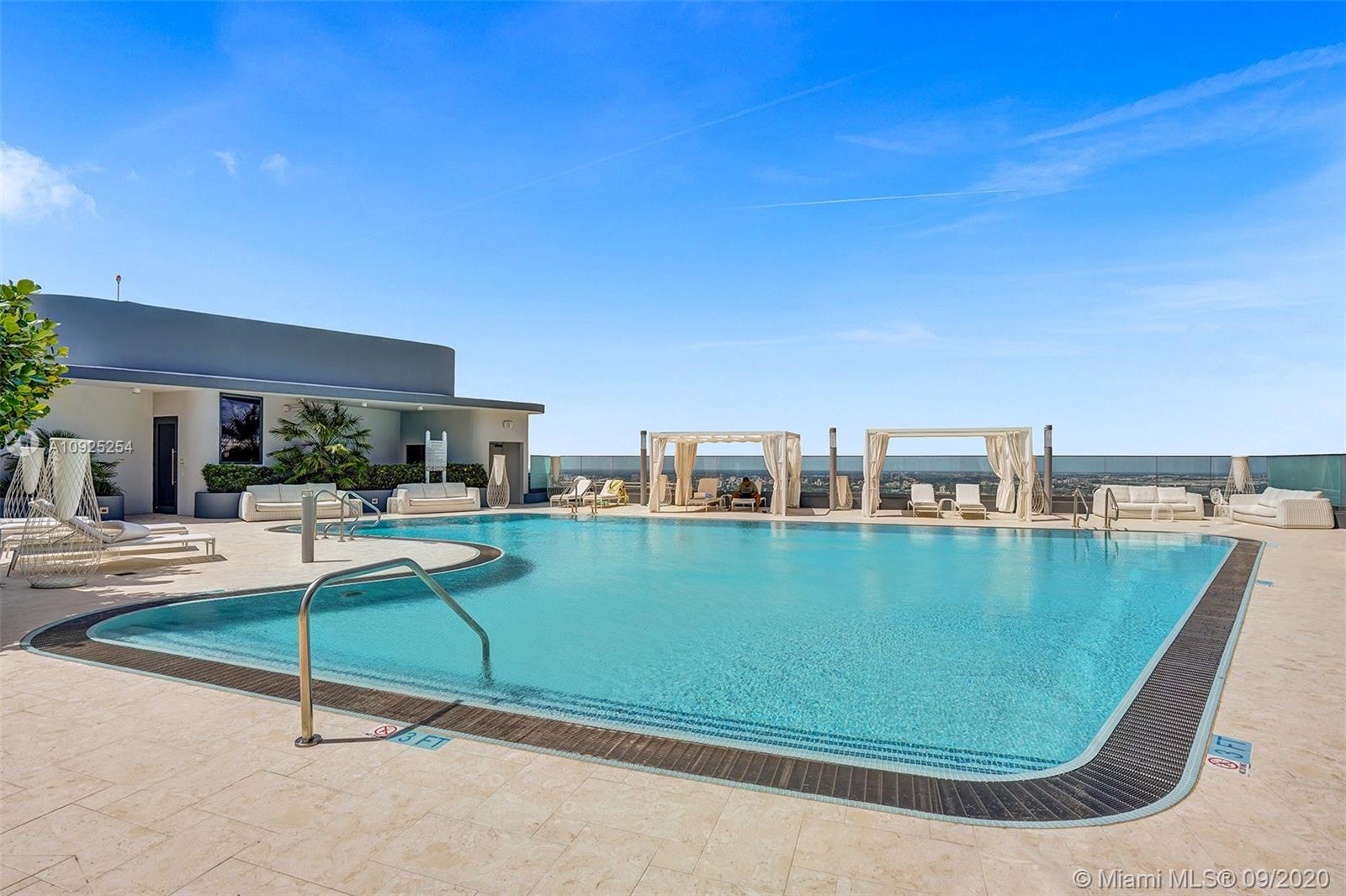 Reduced. Lowest priced Penthouse offering in the latest luxury tower by renowned Ugo Colombo allows for unsurpassed sunset and open water views. Split two bedroom design with two bathrooms, guest bath and DEN to be used as office or TV room. Italian craftsmanship throughout with open kitchen concept, MIELE appliances, ceramic floors and spacious balcony. One assigned parking plus one free valet. White glove service with 24/7 attended Lobby and security, top amenities include movie theater, wine room, multiple social rooms, penthouse gym, rooftop pool, spa facilities, kids room and kids pool. This 64 story soaring glass tower is within walking distance to shops and restaurants and a short drive to Miami International Airport, Miami Beach, Wynwood, Coconut Grove and Coral Gables.