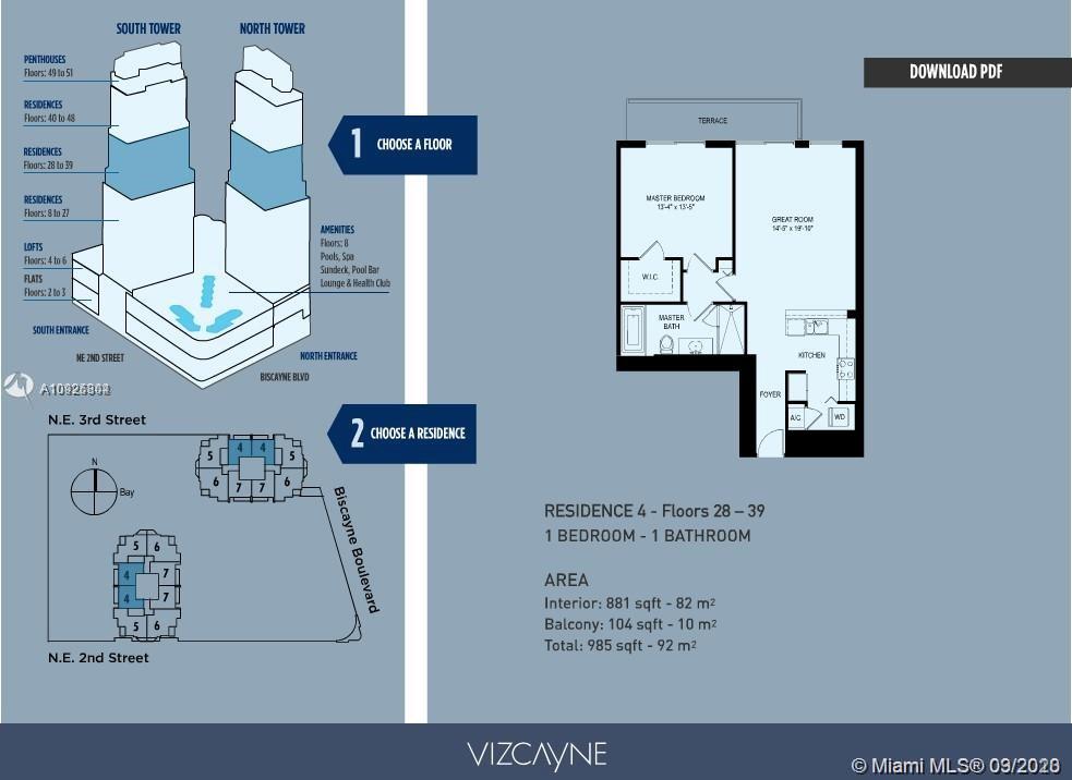 Investors Welcome, the property is rented from 07/01/2020 to 08/01/2021! City views! Cozy 1 Bedroom + 1 Bathroom apartment on the 20th floor. Top of line stainless steel appliances, washer, and dryer included in the unit. Granite counter tops, new Samsung stainless steel refrigerator, laminated wood floors throughout the apartment. Vizcayne is a full-service building that features 24x7x365 Security, Valet, Lobby Door Attendant, Business Center, Spa, Fitness Center, Sauna, Jacuzzi, 3 Swimming Pools, close to restaurants, banks, Miami Arena, Bayside, pharmacies. Miami Lifestyle!
