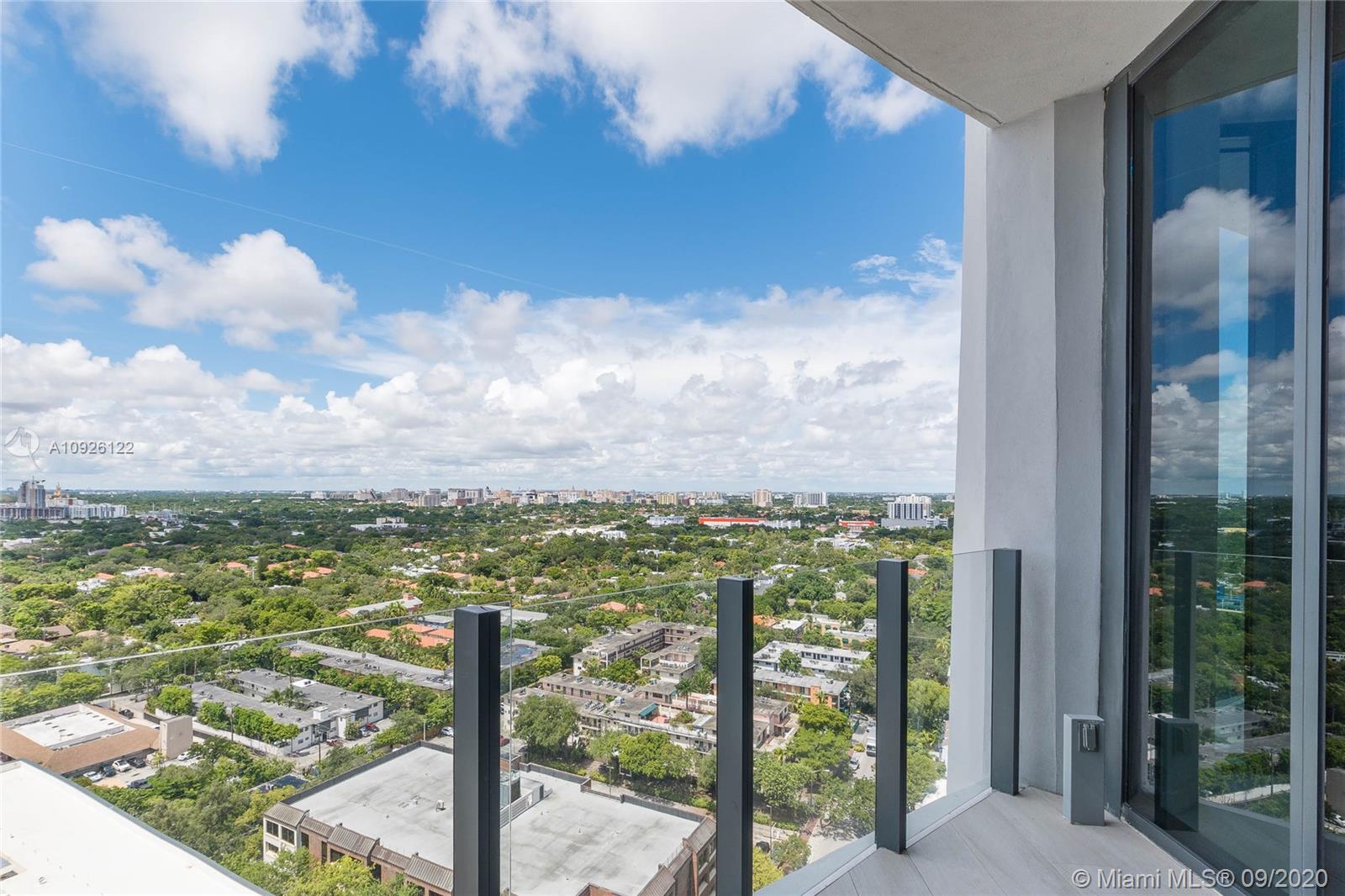 Step into exciting views of Coconut Grove & Miami from this high-floor residence. The higher the better! The latest Coconut Grove architectural feat by OMA · REM KOOLHAAS with glass walls & balconies maximizing views & residence features. Sip cocktails from your terrace overlooking all of Miami. Italian porcelain flooring throughout. Chef's kitchen complete with Subzero & Wolf appliances, gas cook top & marble counter tops with mirrored backsplash. Master bath features dual sinks with huge backlit vanity mirror and walk-in shower. Ready for your immediate occupancy. Park Grove is the perfect location for walking to everything Coconut Grove has to offer.