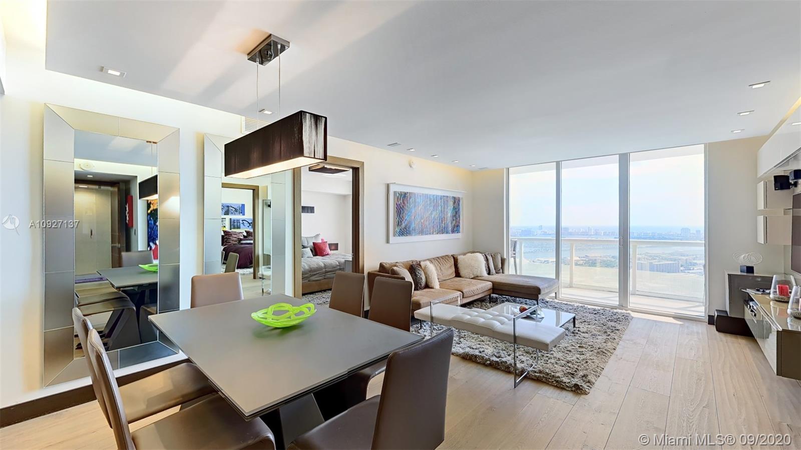 This stunningly upgraded residence features direct unobstructed views of Biscayne Bay and Miami Beach that will greet you as soon as you step in! A masterpiece of design with attention to details, this unit has spectacular views of Biscayne Bay and the City from every room! Soaring 12ft ceilings throughout this rarely available 08 line. Pristine conditions, offering over 1,300sqft. Quick access to/from I-95, strategic location. Walking distance from City Center, restaurants and movie theater. Must see. 5-star resort amenities. (den was converted into a full bedroom/media room).