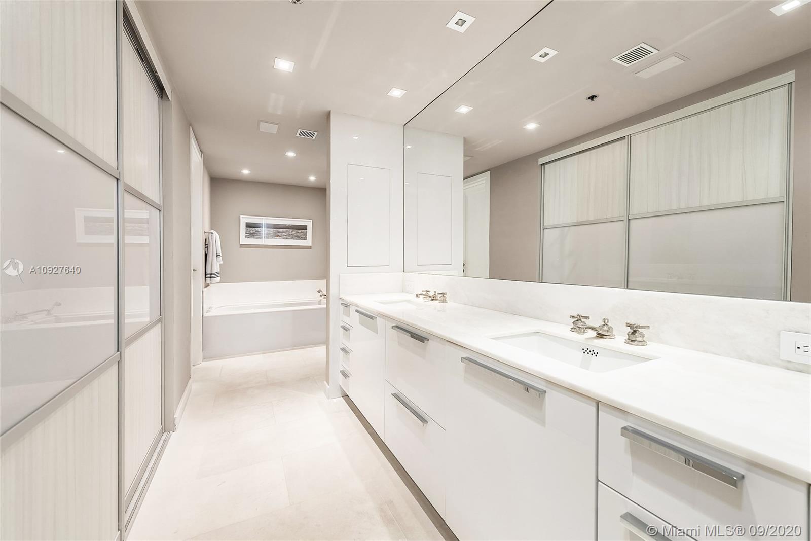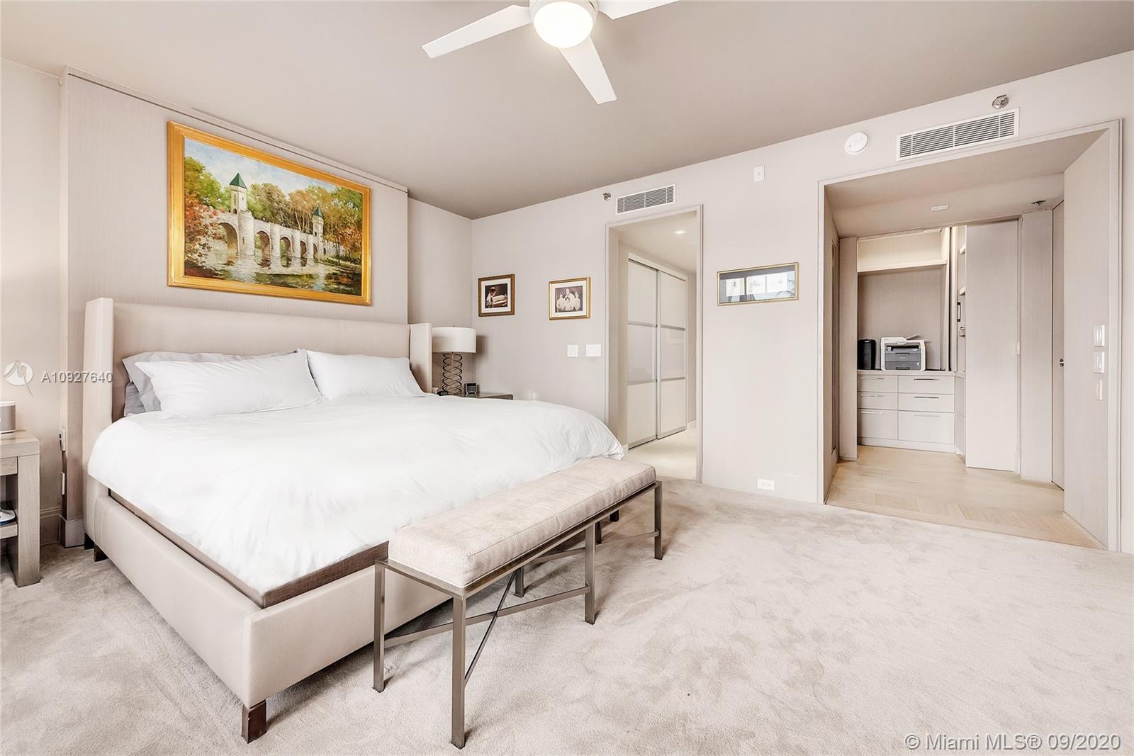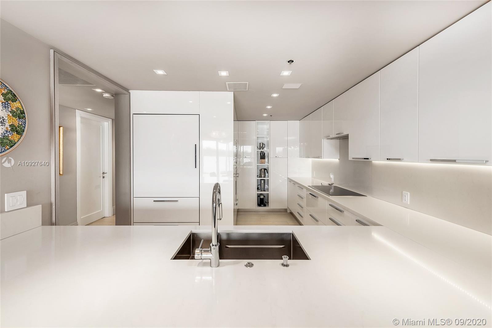 This contemporary, 1st floor condo on exclusive Fisher Island is impeccably decorated and has undergone an extensive renovation and in turnkey condition. This unit with 2 plus one bonus bedroom features exquisite blush oak floors, an open dining room and living room layout with a wood burning fireplace, bar, and direct step-out terrace access with open views to Biscayne Bay, Miami skyline, Ocean & Virginia Key. Beautiful kitchen with custom Italian Stosa cabinetry, Caesarstone counters, and top-of-the-line appliances. The principal bedroom suite offers terrace access & bay views, plus a beautiful bathroom with a sunken tub and a steam shower. A large open terrace to relax and entertain completes this offering.