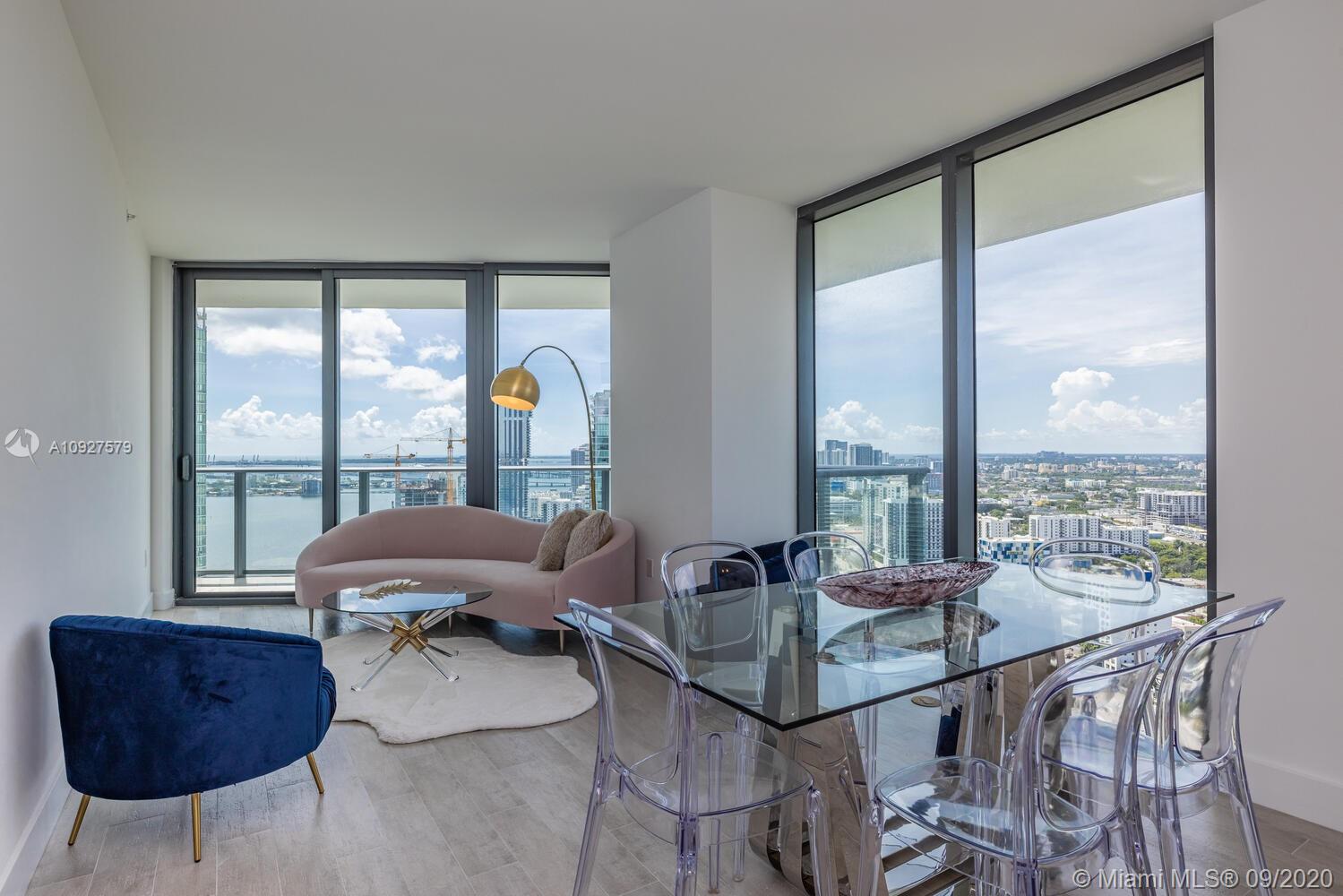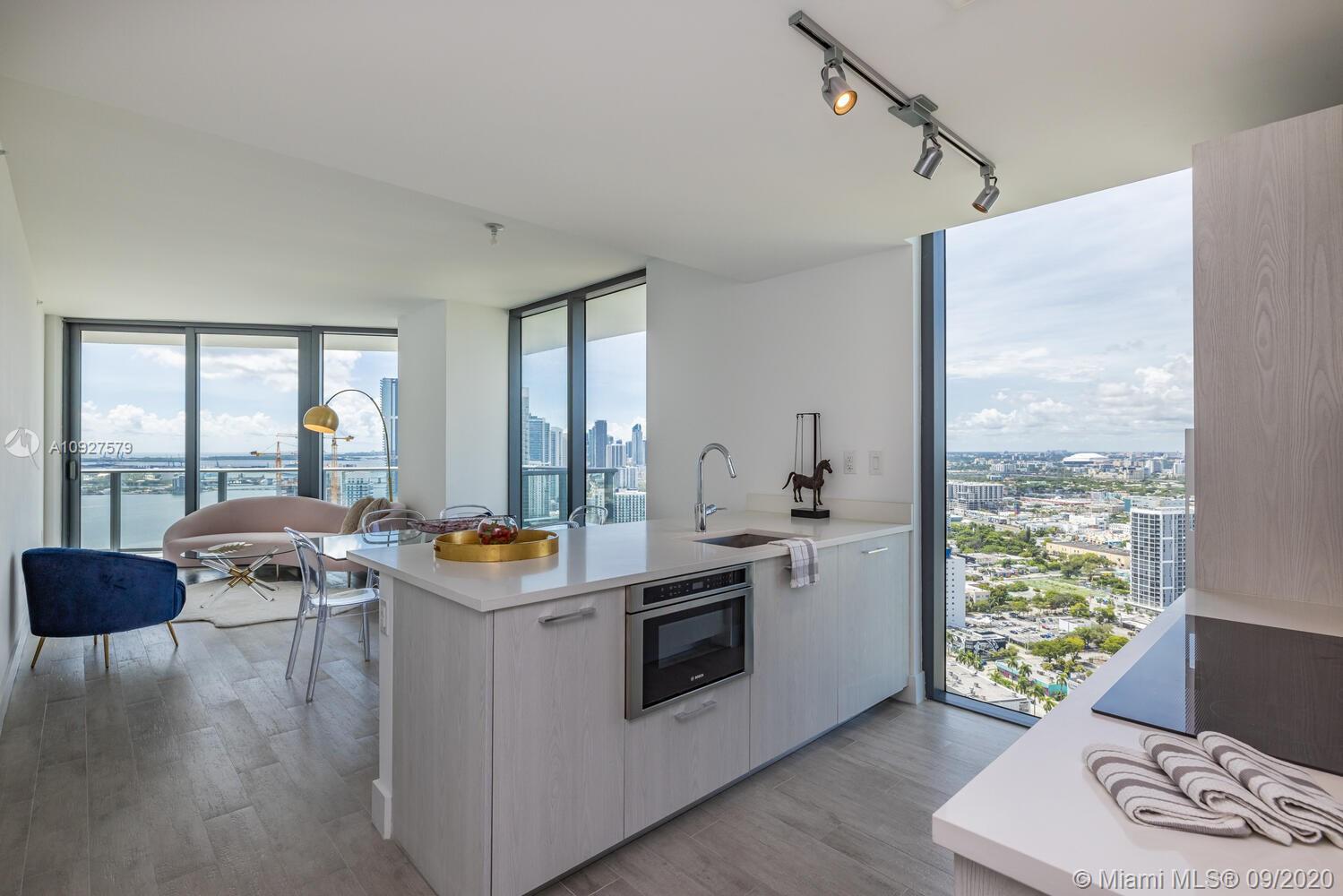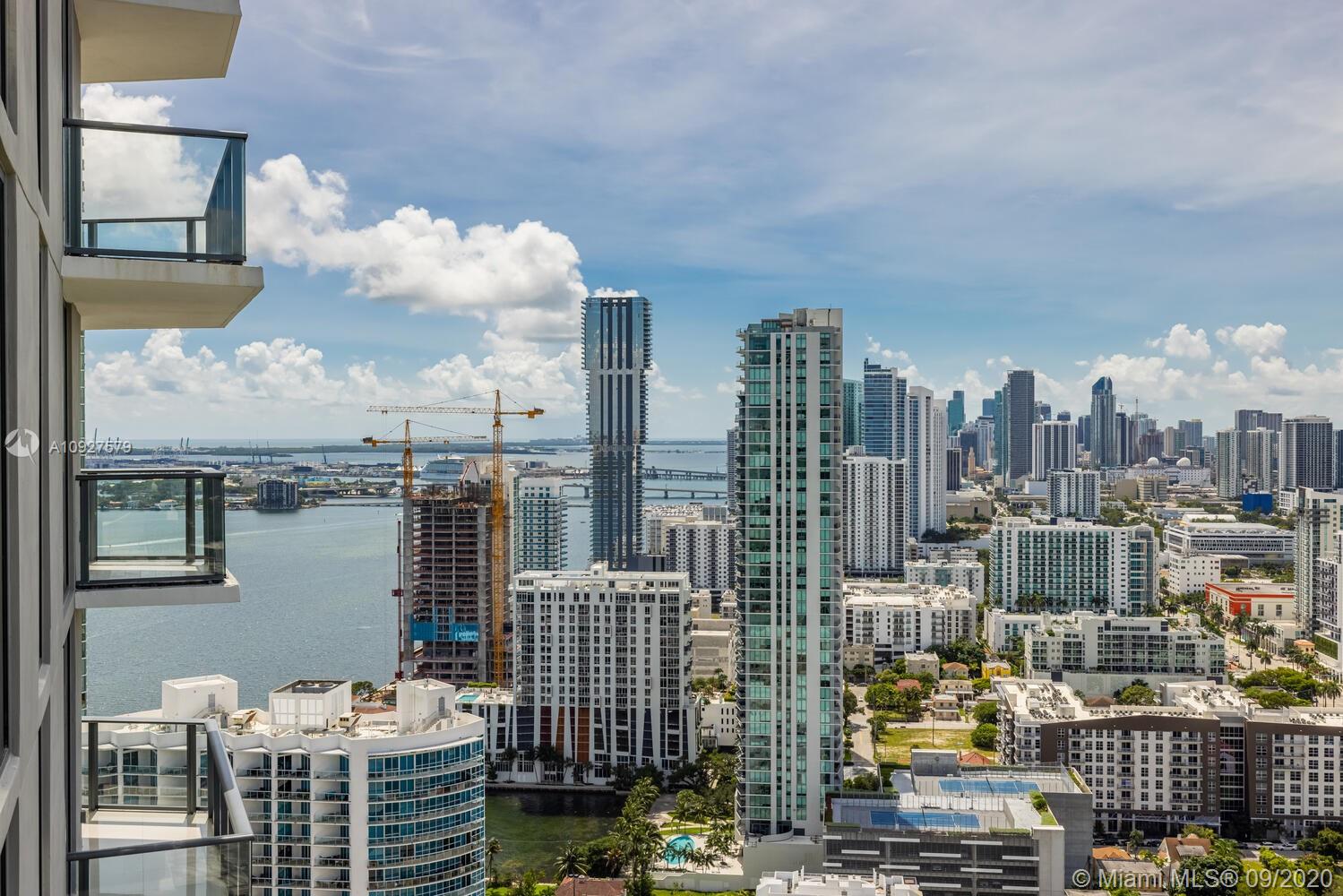 Stunning views from this beautiful high floor corner unit, 2 Bedroom/ 2 bathroom with Den, 2 large balconies, with open view from every room, largest line in the building! Top of the line kitchen appliances, hurricane impact windows, private foyer. Paraiso Bayviews is a full amenity building, access to Paraiso Bay Club, rooftop pool, sunset pool, tennis court, BBQ area, kids room, fitness center, movie theater, billiards, valet parking, concierge, security and much more. Location, Location Location! Minutes away from the Airport, Wynwood, Design District and Middtown.