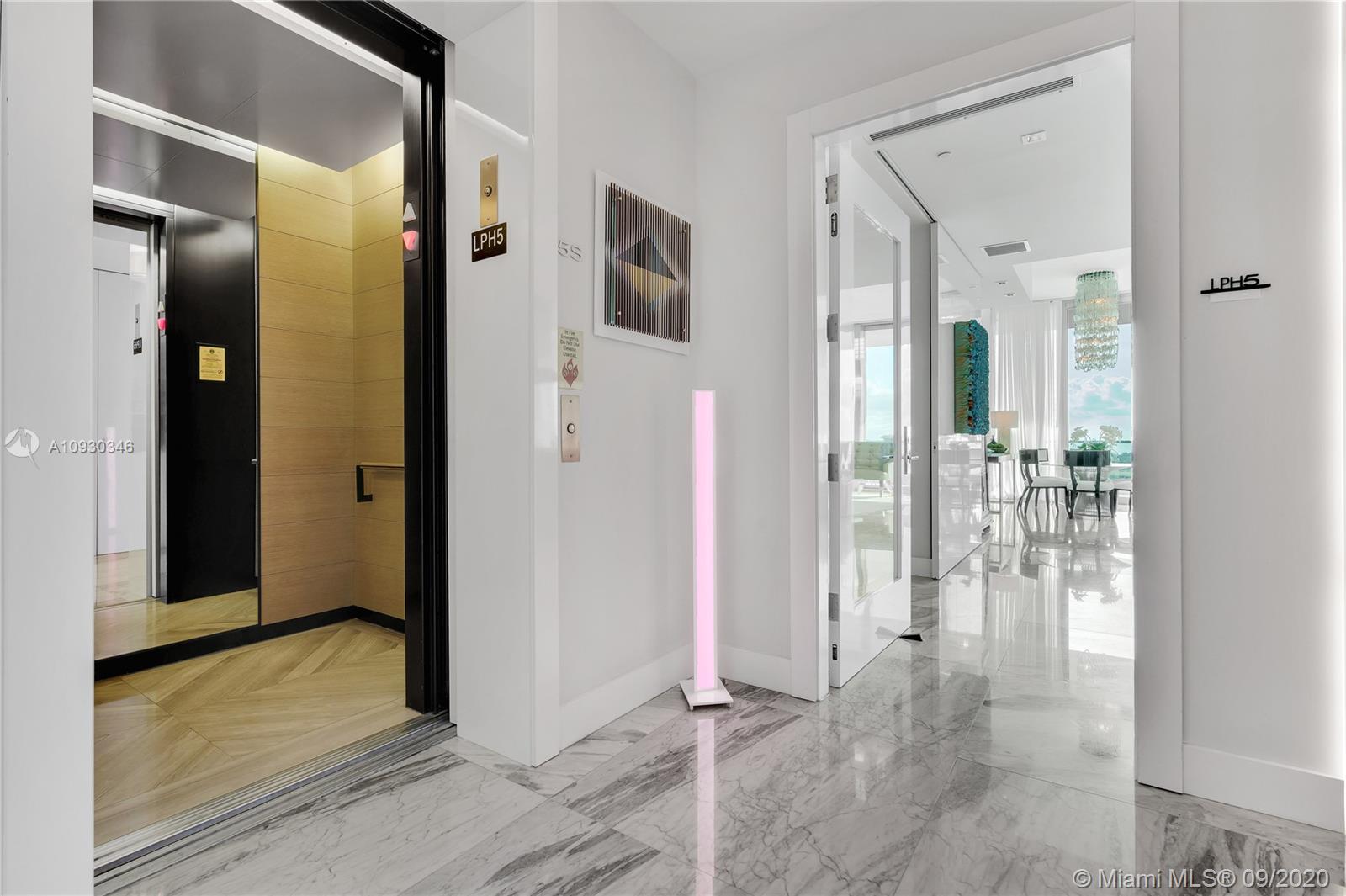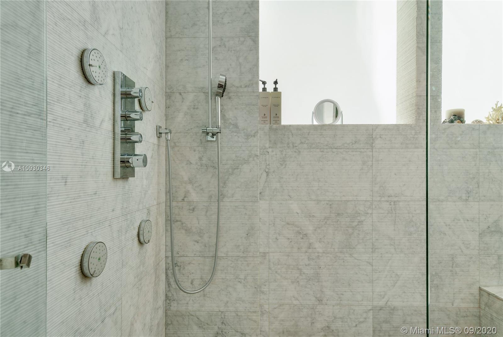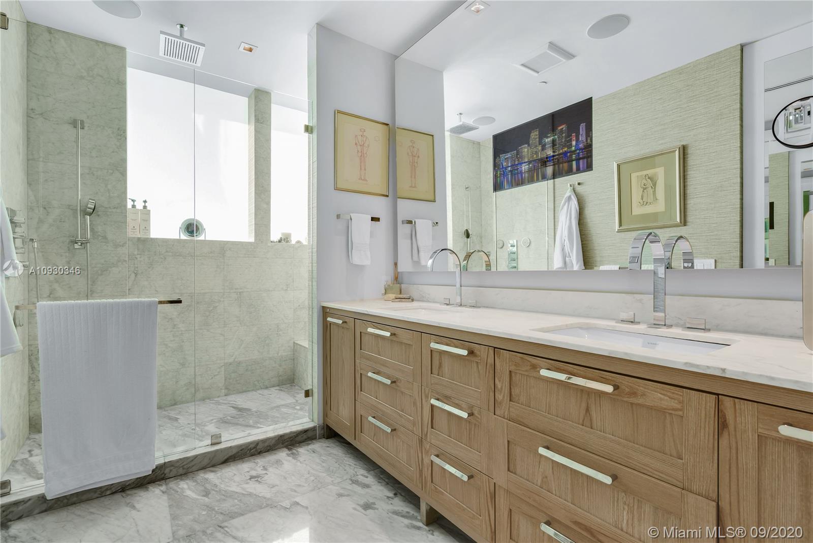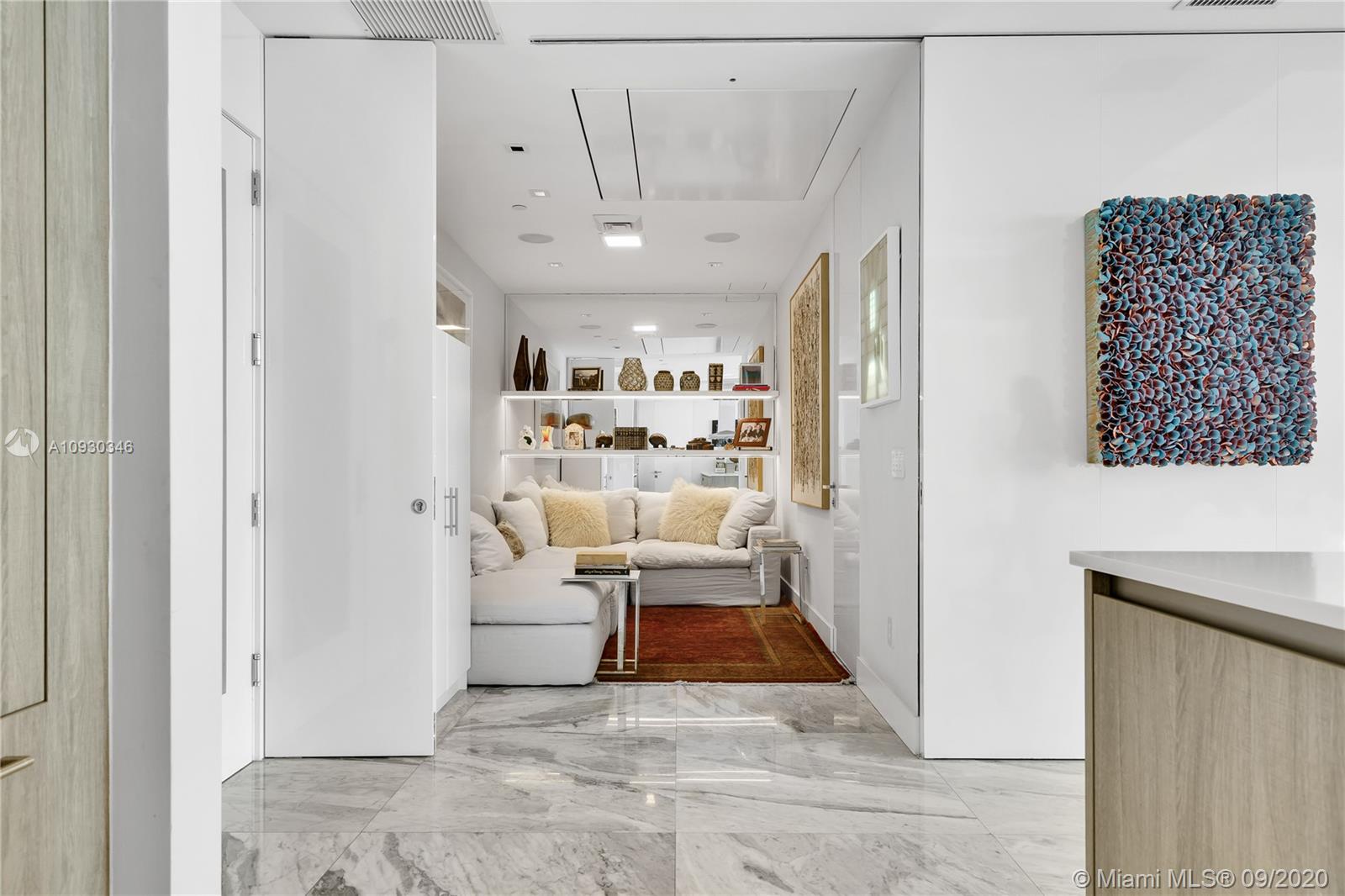 Immaculate Lower PH at exclusive beachfront Oceana in Key Biscayne. Private elevator opens to one-of-a-kind 3BR + Staff, 4 full BA, 1883 sf unit w/ 11’ft ceilings, high impact windows & 48x48 Carrara marble floors & integrated speakers throughout. Breathtaking views of Biscayne Bay & Miami Skyline! Unit is fully automatized w/ Control4. Kitchen features long island w/ Miele appl. & wine cooler. Den boasts drop down TV. Master BR features two walk-in closets, Master Bath w/ natural light & built-in TV in mirror. Remodeled private lobby & glass door that opens to unit, new A/C, linear A/C ducts, tinted film on all windows. Oceana offers grand pool & lap pool, al-fresco restaurant, tennis court, gym & spa, kids play room, party & media rooms, putting green & volleyball on 500 ft private beach