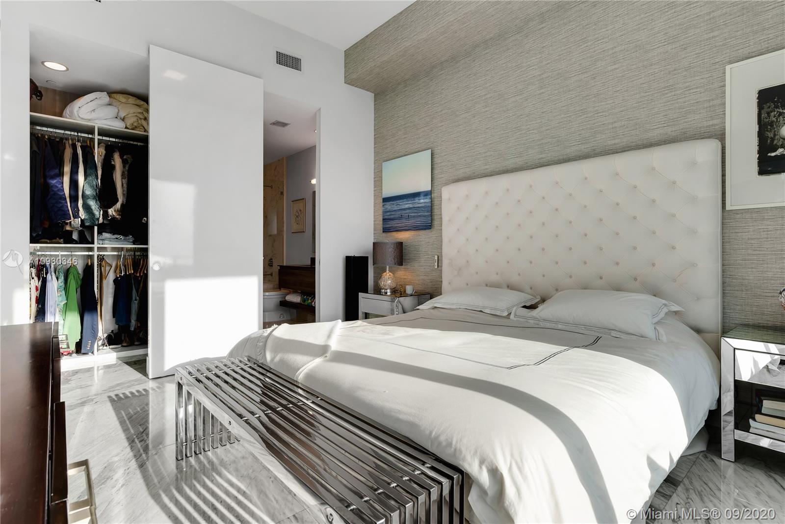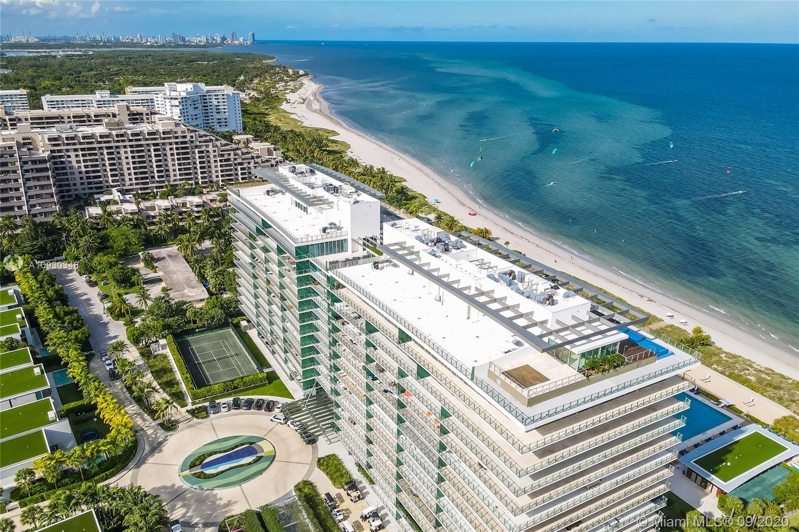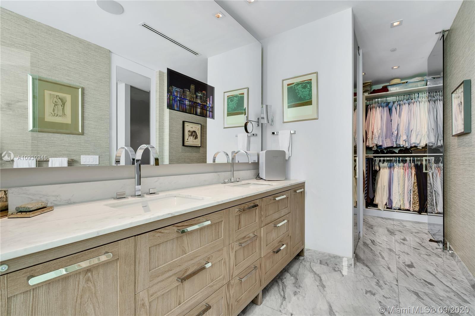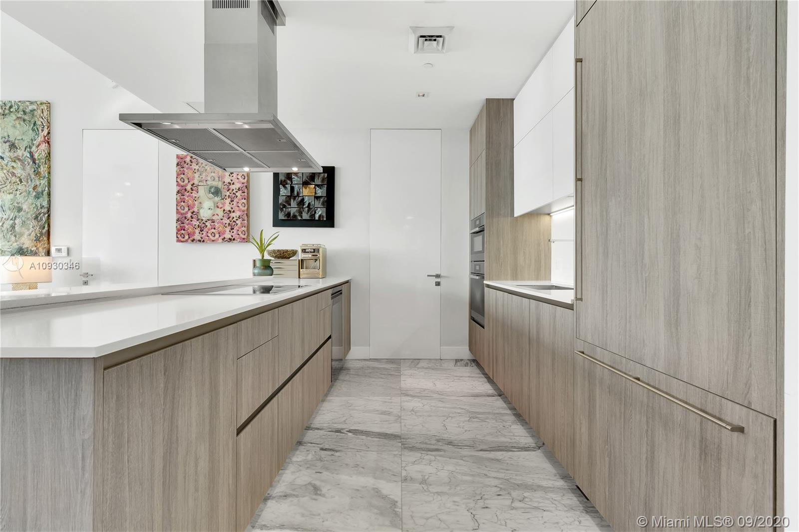 Immaculate Lower PH at exclusive beachfront Oceana in Key Biscayne. Private elevator opens to one-of-a-kind 3BR + Staff, 4 full BA, 1883 sf unit w/ 11’ft ceilings, high impact windows & 48x48 Carrara marble floors & integrated speakers throughout. Breathtaking views of Biscayne Bay & Miami Skyline! Unit is fully automatized w/ Control4. Kitchen features long island w/ Miele appl. & wine cooler. Den boasts drop down TV. Master BR features two walk-in closets, Master Bath w/ natural light & built-in TV in mirror. Remodeled private lobby & glass door that opens to unit, new A/C, linear A/C ducts, tinted film on all windows. Oceana offers grand pool & lap pool, al-fresco restaurant, tennis court, gym & spa, kids play room, party & media rooms, putting green & volleyball on 500 ft private beach