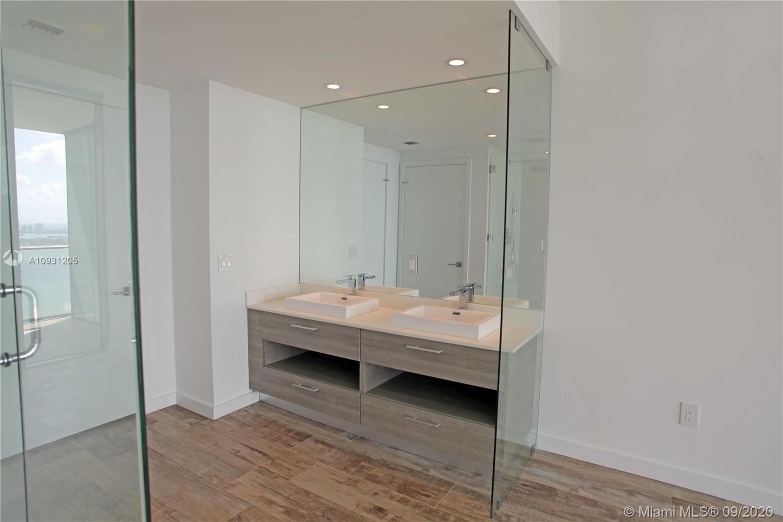 2 Bed 2 Bath +Den with Direct Water Views! 1,244 SqFt under A/C, 9 foot ceilings, FULLY FINISHED WITH WOOD LOOK PORCELAIN FLOORS THROUGHOUT THE UNIT, ELECTRIC WINDOW TREATMENTS & ITALIAN CLOSETS. European style cabinetry, Sub-Zero refrigerator, Bosch appliances & white quartz countertops. Open concept Master Bedroom with integrated glass enclosed shower. Ample and spacious balcony with beautiful views of Biscayne Bay, Pool Deck and Beach Club/Restaurant. Private elevator to the unit. Luxurious and state of the art amenities, Gym, Spa, Wine Cellar, Cigar Lounge, two tennis courts, 100 feet diameter swimming pool. & more. Private gated complex! Parking Space # 4032 Tenant occupied until 5/17/2021 Need 24hrs to show.