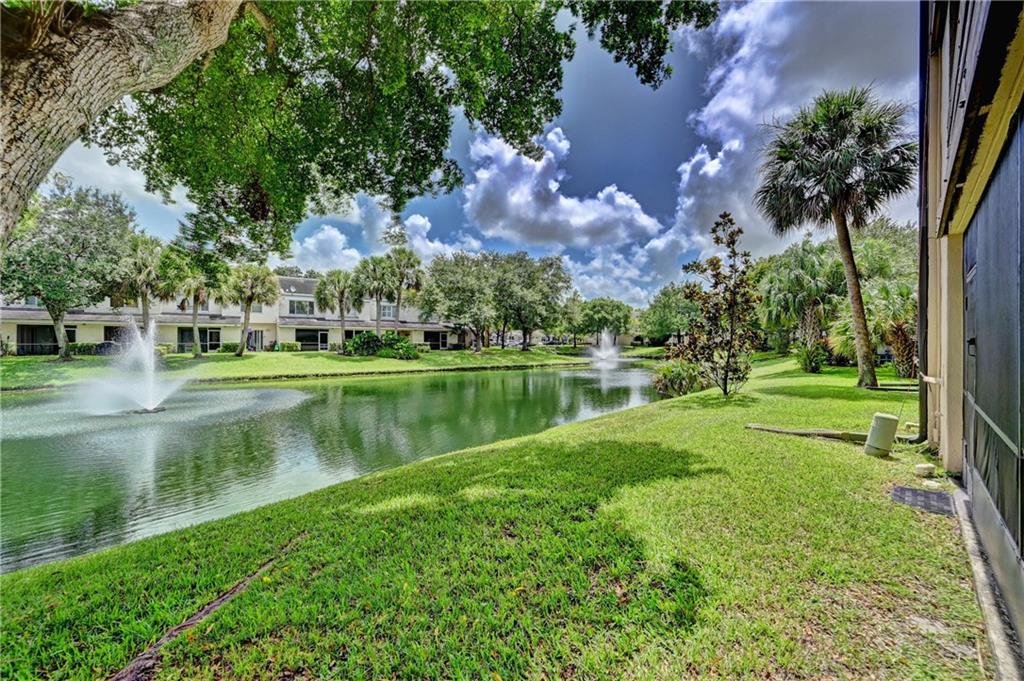 The moment you walk in the door you will want to stay forever! Stunning pond and fountain view greets you at the entry and your attention is torn between the view and the gorgeous kitchen remodel! Gray wood cabinets, SS appliances, & stunning white quarts countertops along with a huge seating area make this a dream kitchen. All new copper water pipes, Updated bathrooms, 2 huge bedrooms,smooth ceilings, Master Bedroom features relaxing water view ,huge Walk in closet, Screened Patio. New W/D in kitchen, Hurricane entry door, kitchen and front bedroom. Gated community close to everything, hospitals, universities, shopping, restaurants, airport, highways. REQ MIN 25% down. New ROOF installed NOW- PAID IN FULL. (no leasing first year owned)