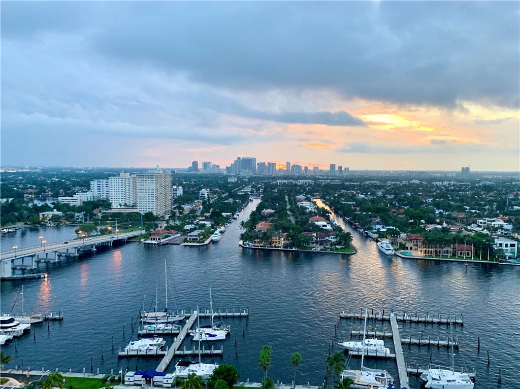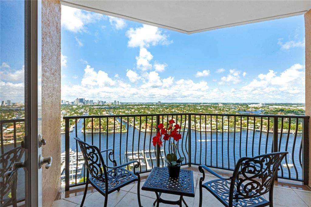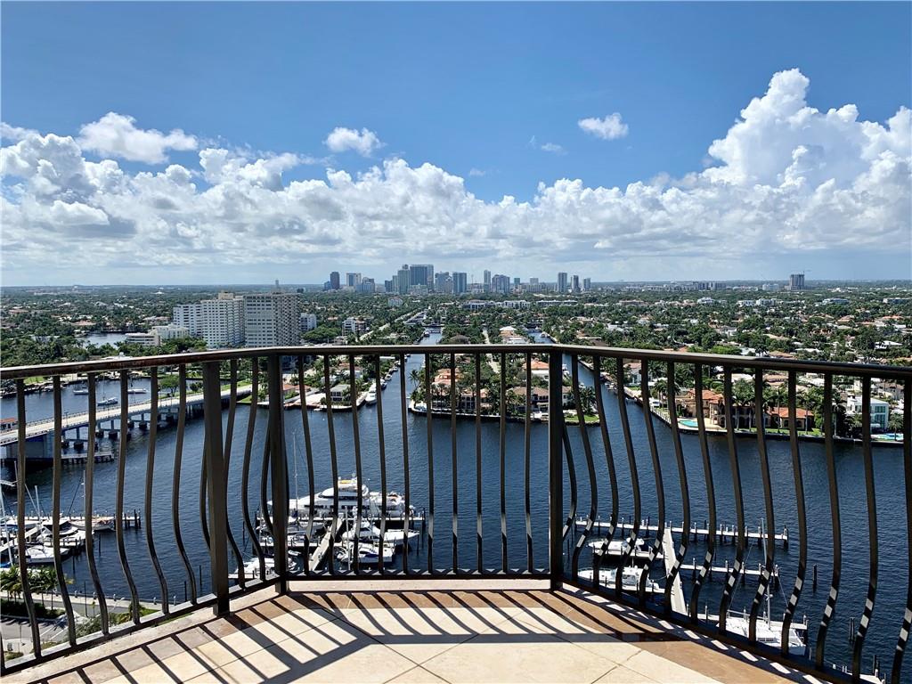 Breathtaking, panoramic and unobstructed views of the ocean, Intracoastal and city of Fort Lauderdale from this high 23rd floor corner residence. Floor-to-ceiling windows with access to an oversized wrap-around terrace great for entertaining and relaxation. Two bedrooms, two bathrooms with a large open kitchen. The guest bedroom has its own private balcony with city and Intracoastal water views. Direct elevator access from garage into a private foyer of the residence. Jackson Tower is located one block from the beach, shops and restaurants, next to Fort Lauderdale city marina with amenities including: 24-hour security, gym, club room, billiards room, heated pool, jacuzzi, steam room, sauna, outdoor grill area and more. Two garage parking spaces are included. Pet friendly.
