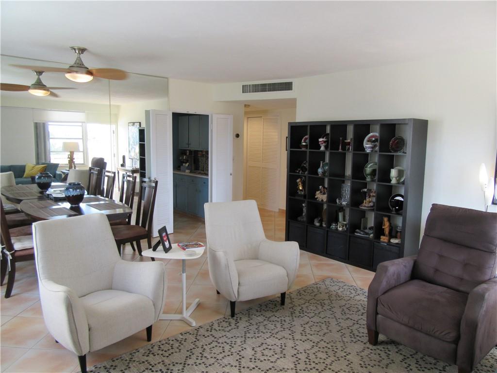 Welcome Home to this two bedroom two bath corner unit in Coral Ridge Towers South. Your new home features tile floors throughout, recently painted, great natural light and it's very own coffee bar. Watch the boats go by on the intercoastal from your living room or wake up to the garden and pool view from either one of the bedrooms. Coral Ridge Towers is an active 55+ community close to shopping and a short walk from the beach. Call for your private showing today. Please note the property taxes are included in the monthly maintenance, as well as, the reserves and cable tv.