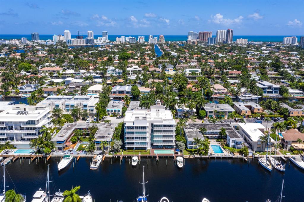Outstanding waterfront Living At Its Finest! See Video. Gorgeous, contemporary condominium with 50' deep water dockage. Gleaming white porcelain flooring throughout. This boutique building consists of only 8 condominiums. Corner unit. Light bright with floor to ceiling impact windows. Multiple sliding doors integrate indoor and outdoor living spaces that overlook the waterway and boat docks. The open floor plan is conducive to today's lifestyle with a sleek contemporary kitchen and stunning top of the line bathrooms! Amenities consist of a gated garage, electric car ready, heated pool with chaise lounges, & fob entry system. Walking distance to Las Olas., featuring restaurants, shops & entertainment. Fort Lauderdale Beach is equally close at hand. Do not miss out on this opportunity!