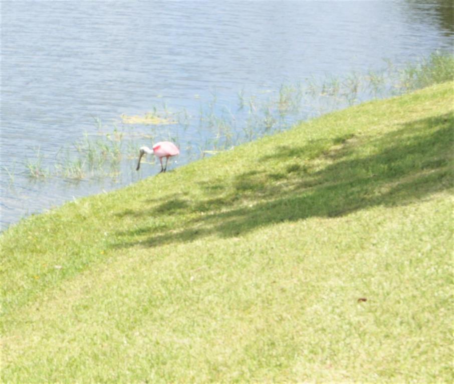A great find a large one bedroom on ground floor steps to private pool and parking space. Ceramic tile and carpet and furnished. No pets no rentals. Come see this condo on cul de sac. Quiet and friendly area. Watch the water birds on shore. Here is a picture of a Roseate Spoonbill and there are so many more.