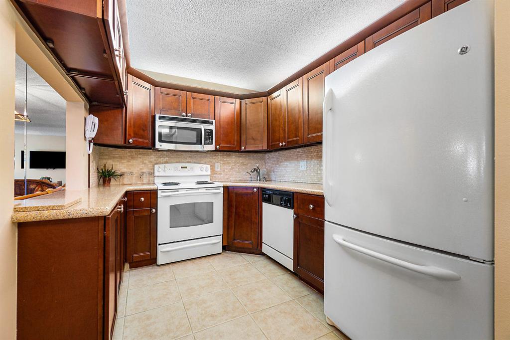Meticulously maintained spacious 2/2 condo on the ground floor! Newer kitchen with a water filter system and silestone counters, newer tile throughout, guest bathroom has been remodeled, lots of closet space, and both bedrooms have walk in closets. Full size stackable washer and dryer in the unit and a covered screened in patio. This unit is within walking distance to the clubhouse, pool, tennis and all amenities. Pine Ridge is a gated community with low monthly dues and only 10 minutes to Palm Beach International airport, the beach and downtown WPB!