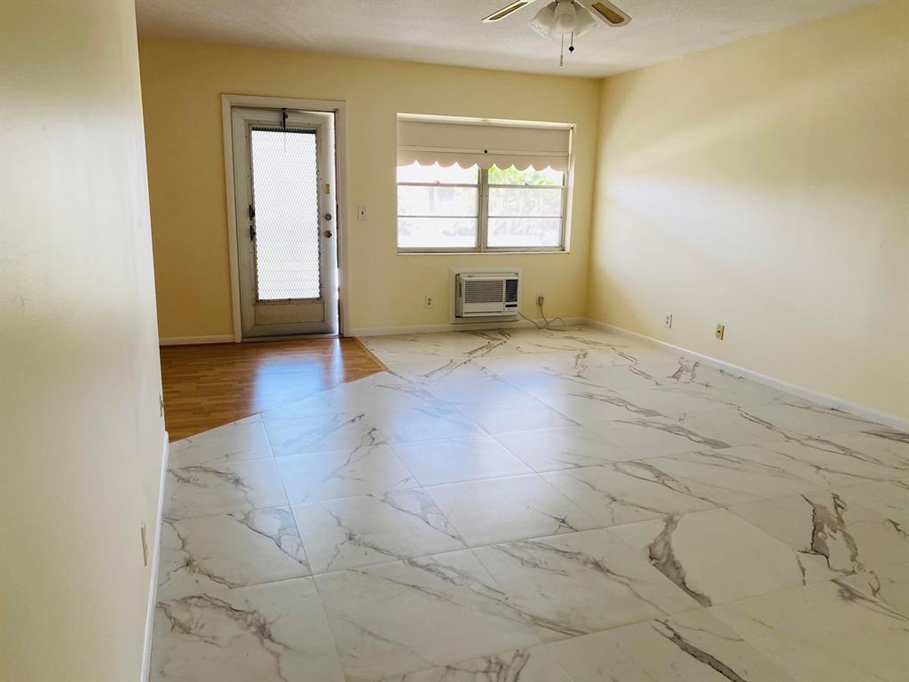 Bright and airy 2 bedroom, 1 bath condo. Brand new tiled floor . Updated bathroom. Great location short walk to the Haverhill Gate and to the Clubhouse. Fantastic outdoor area to relax on. Can rent from day one. Come, enjoy resort style living in Century Village West Palm Beach, housing for adults 55+. Century Village has many activities, many pools, fitness center and a clubhouse that boasts a theatre.that seats over 1,500 people.