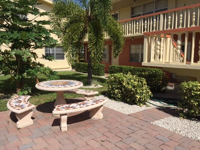 1st floor unit in Century Village! 1 bedroom, 1 bathroom. Pretty garden area at front door - quiet and serene, and park at your back door. Next to laundry room and mailbox. Active clubhouse, courtesy van, tennis, gated community, fitness center and plenty of activities!