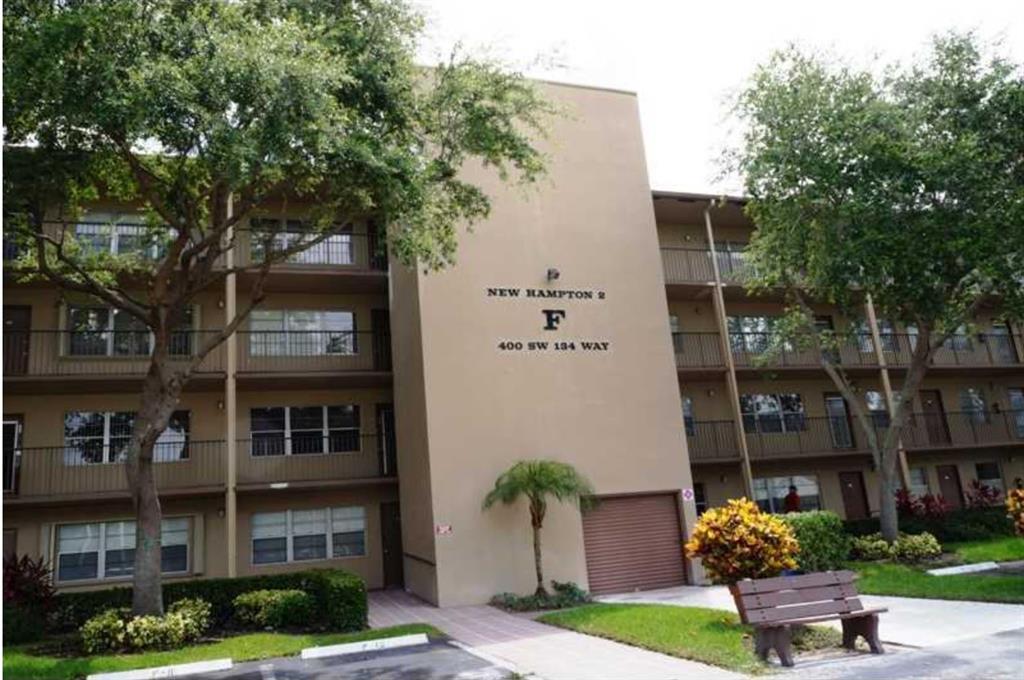 WOW! GOLF AND LAKE VIEW FROM ITS LARGE BALCONY! ENJOY BEAUTIFUL SUNSETS. PRICE ALREADY REDUCED BECAUSE OF OWNER MOVING OUT OF STATE. FOR INVESTORS, RENT IMMEDIATELY FROM DAY ONE (NO RENTAL WAITING PERIOD), OR AS AN OWNER ENJOY CONDO LIVING WITH GREAT VIEWS AND ALL KIND OF AMENITIES. MOVE IN READY 2 BEDROOMS, 2 FULL BATHROOMS, 1044 SQ.FT CONDO IN DESIRED NEW HAMPTON - CENTURY VILLAGE. 1 LARGE BEDROOM WITH BATHROOM IN SUITE. ANOTHER LARGE BEDROOM AND ANOTHER FULL SIZE BATHROOM. SHARED LAUNDRY AND STORAGE CAGE ON SAME FLOOR. STAIRS, ELEVATOR AND PARKING SPACE NEARBY. MAINTENANCE INCLUDES WATER AND BASIC CABLE/INTERNET, PLUS ALL AMENITIES IN CLUBHOUSE, INCLUDING AN OUTDOOR POOL, AN INDOOR POOL, GYM, MOVIE THEATER, GAME ROOMS, ETC.-THIS COMMUNITY REPRESENTS HOUSING FOR OLDER PEOPLE ACT.