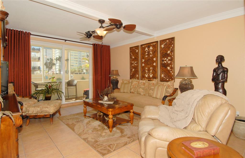 R E D U C E D! Walk into this Lovely 'Lanai 'Apt, w/its Xtra Hi Ceilling& Designer Accents, & U'll Imagine Living HERE!Owner's decor & Attention 2 detail shows!! Separate DEN (w/closet &FrenchDoors) Can Be Ur 2nd Bdrm/GuestRm,(Or Home Ofc., as Current Owner has!)*Unique to THIS unit** vs All Others in bldg: unit has 75 Sq.Ft. Enclosed Patio w/Teak Flooring! Perfect to Take MORNING "dip" in the pool OR while BBQ-ing on the Grill" (AND:the Covered terrace, keeps unit cool as do Thermal Windows.)IMPACT/THERMAL GLASS Combo on Slider & Windows! Ur Own EZ access 2 & from this unit,makes it feel like Private Home, w/NO Need2Take Elevators! "Broadwalk", bike paths, Bistros a "stone's throw" from bldg. "Strat-Fit"Gym = a HUGE Plus!*(Locked Bike Rm too!) !!! NEW RENTAL POLICY: 1 time Each Year!!!