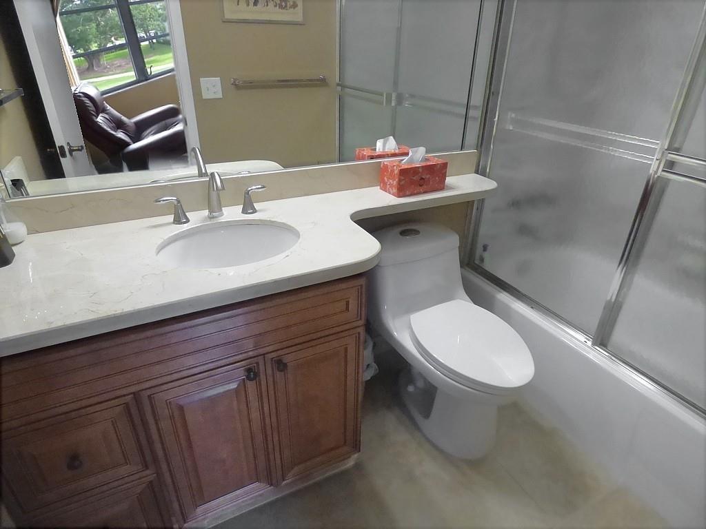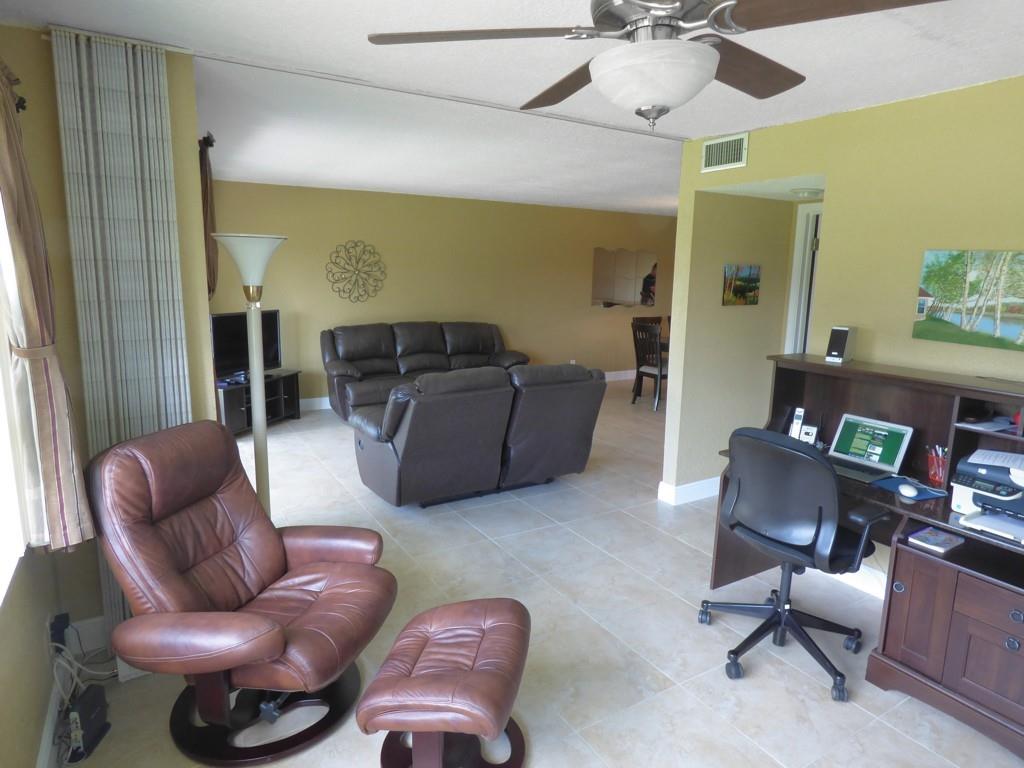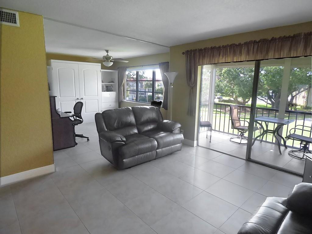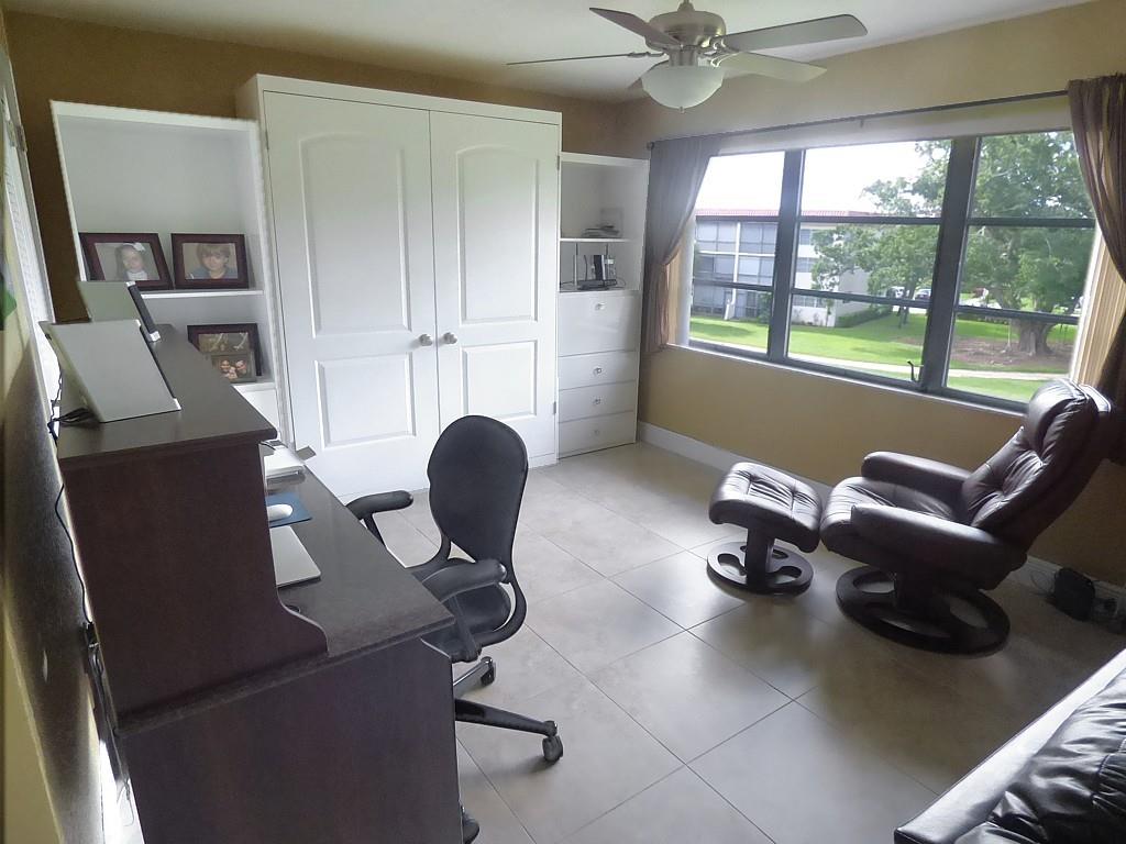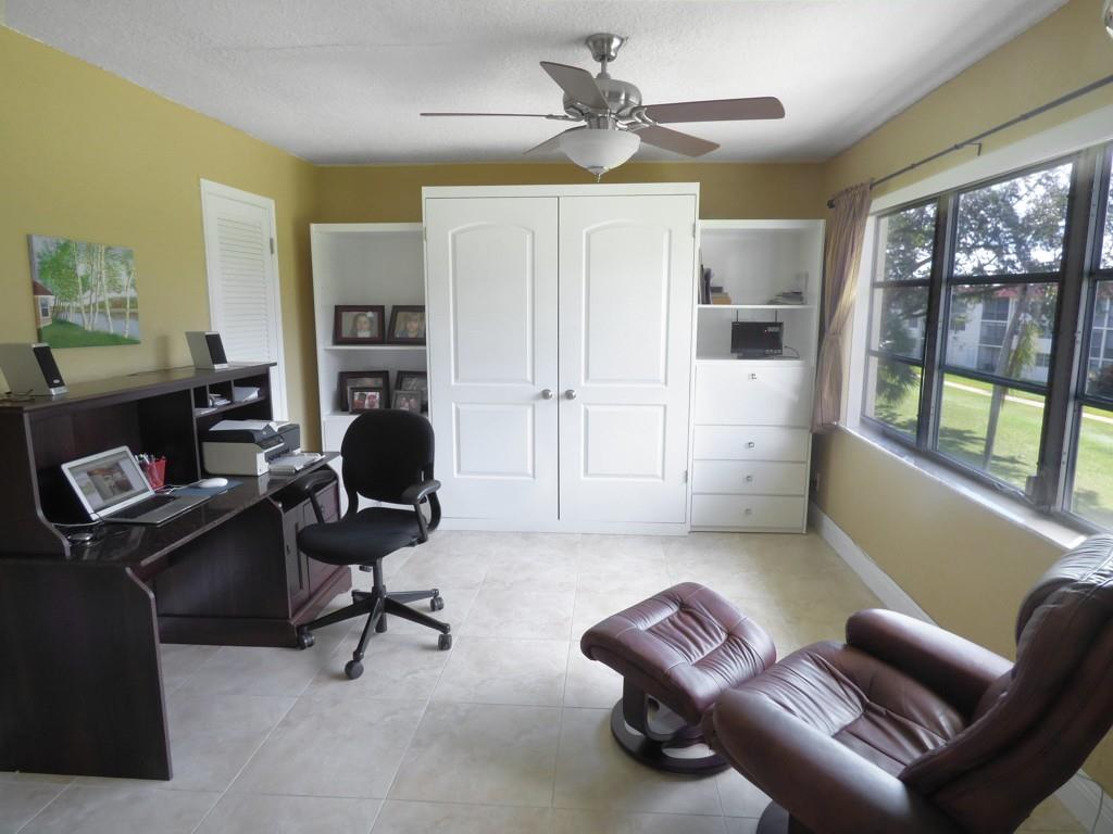 Move in ready. Nicely upgraded and furnished 2 bed convertible with golf view. Porcelain tile throughout. Opened up granite kitchen with newer appliances and wood cabinets, with raised ceiling and breakfast counter. Both baths have been redone with wood cabinetry and marble counter tops. Newer air conditioning. Popcorn removed from ceilings and knockdown paint throughout. Tiffany style dining fixture. Includes all furniture and accessories including extra freezer and Murphy bed. Seller prefers late close (April 1) but will consider earlier. Paid up rec lease. Free golf , 7 pools, theater, fitness center, restaurant , 24 hr security. HOPA verified community. *** ASSOC. HAS INCOME AND CREDIT SCORE REQUIREMENTS: see attached file and broker remarks below.