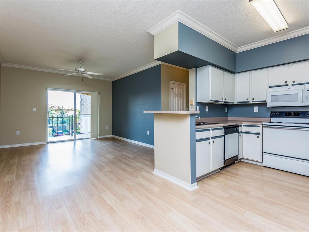 WELCOME HOME! Crisp 1/1 in prestigious resort style community of The Marquesa. New laminate flooring and fresh paint throughout. The 3rd floor units in this community are the most desirable because they feature high ceilings. Crown molding throughout. Full sized washer and dryer, quaint little balcony for your morning coffee. Full size washer and dryer. AC is only 4 yrs old! Maintenance fee of 190 includes water, sewer, garbage. Roofs were just replaced, and SELLER pays the special assessment at closing! Pets and rentals permitted. All ages. Baseboards and Crown Molding freshly painted. Multi-million dollar clubhouse features movie theatre, resort style pool and gym! FHA should work here. This unit has a beautiful view and as you look out your bedroom window, it feels like a tree house!