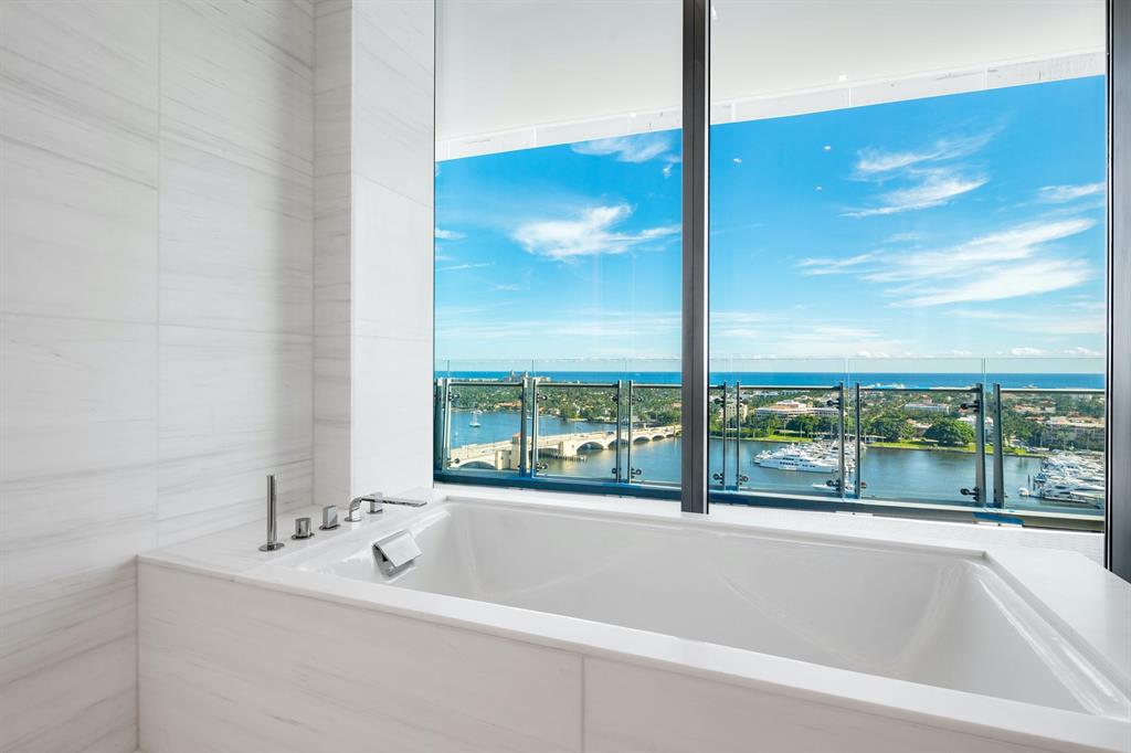 THE ONLY AVAILABLE LISTING WITH A PRIVATE, ENCLOSED GARAGE. One-of-a-kind, high-floor 4 bedroom, 5.5 bathroom home at The Bristol. Residence 1802 has been customized to create a truly spectacular owners suite with an expansive dressing room, separate owners-bathrooms with Fantini fixtures and panoramic intra-coastal, Palm Beach Island and Ocean Views. Spanning over 6,100 total square feet, residence 1802 features wide-plank oak flooring throughout, a chef's kitchen with a full suite of Gaggenau appliances, a gas range, marble countertops, and expansive outdoor living spaces. Amenities include a waterfront fitness center, his & her spas, a private beauty salon, a business center, a commercial laundry facility and a full building generator