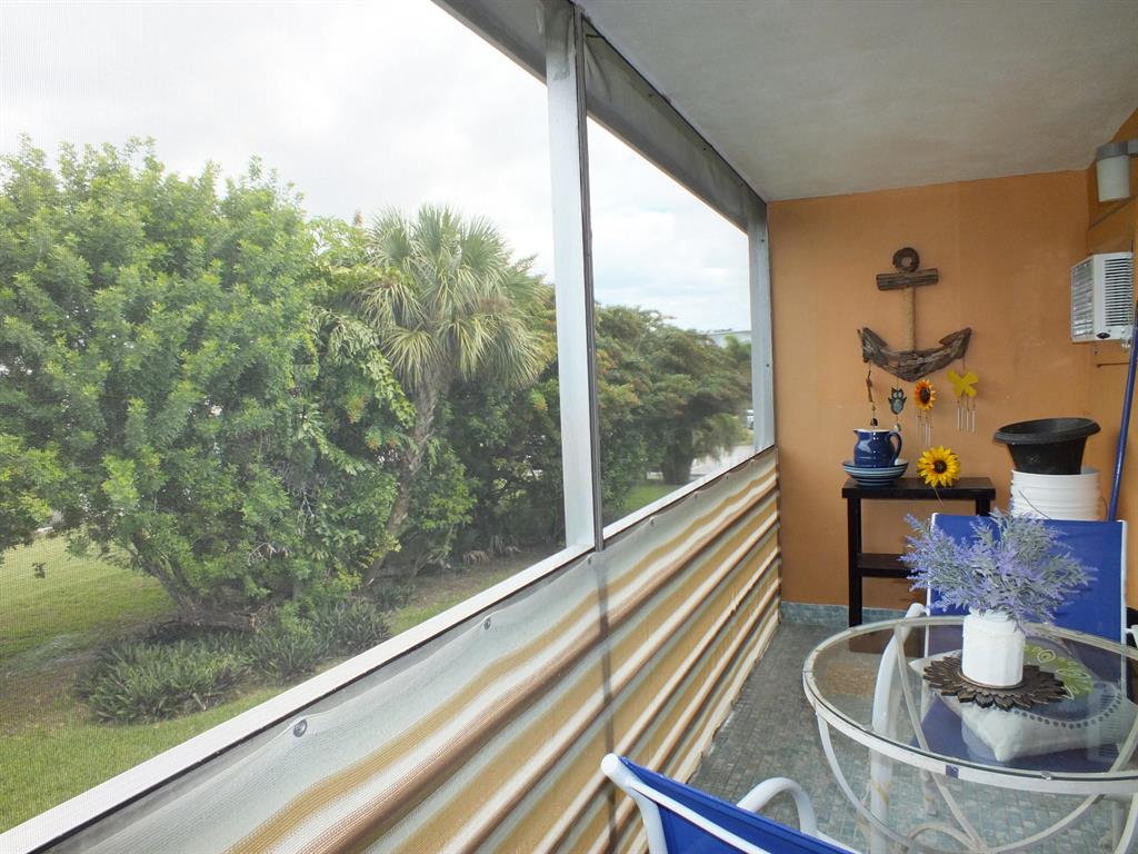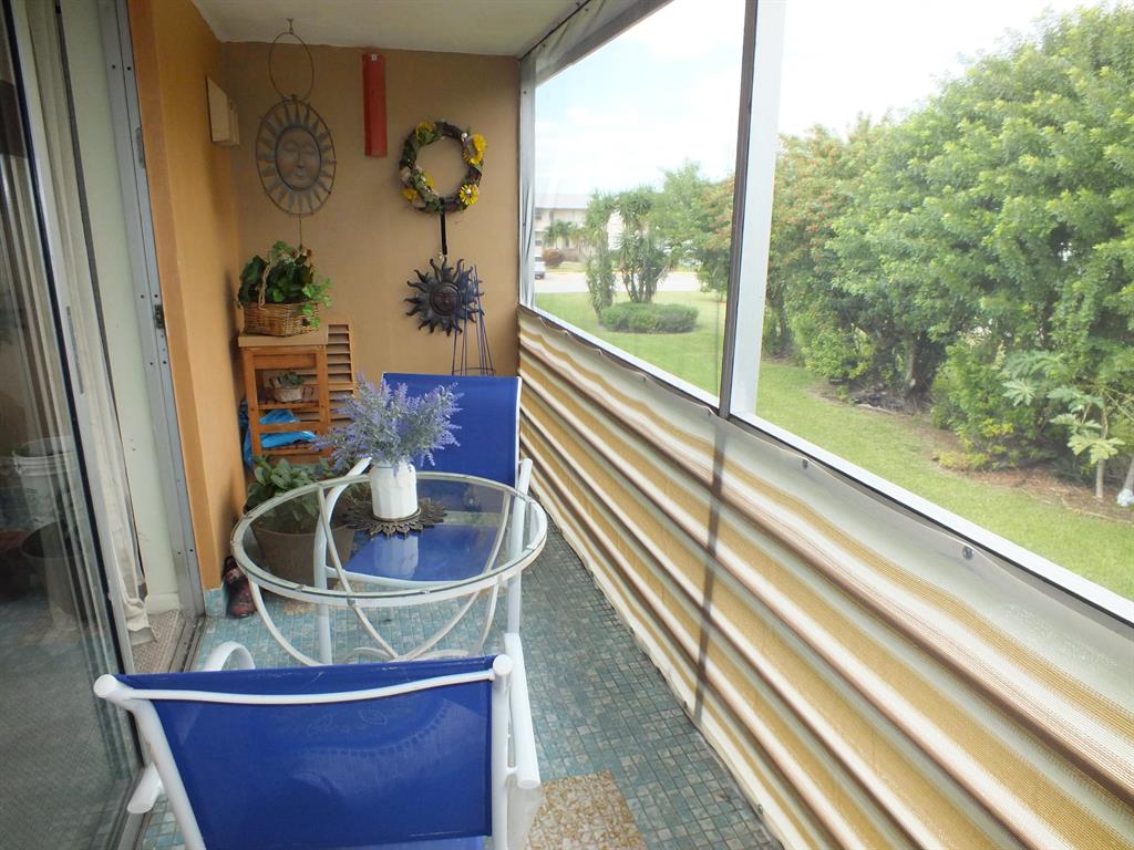Updated Cozy 1/1 2nd Floor unit with new carpeting. New Kitchen with White Shaker Cabinets and Granite. All Appliances are new except for Range which is in excellent condition. Updated Bathroom with brand new tile floor and grab bars. Updated electrical wiring. 5 yr old WH, Brand New A/C in Bedroom & very cold A/C in Living area. Exterior of Building just painted 6 months ago. Nice garden view from Newly Screened Balcony. Some Furniture can stay. Hurricane Shutters for front windows. Motivated Seller bring all offers. No Pets & No Lease for 2 yrs. All measurements are approximate. All information is deemed to reliable but not guaranteed.