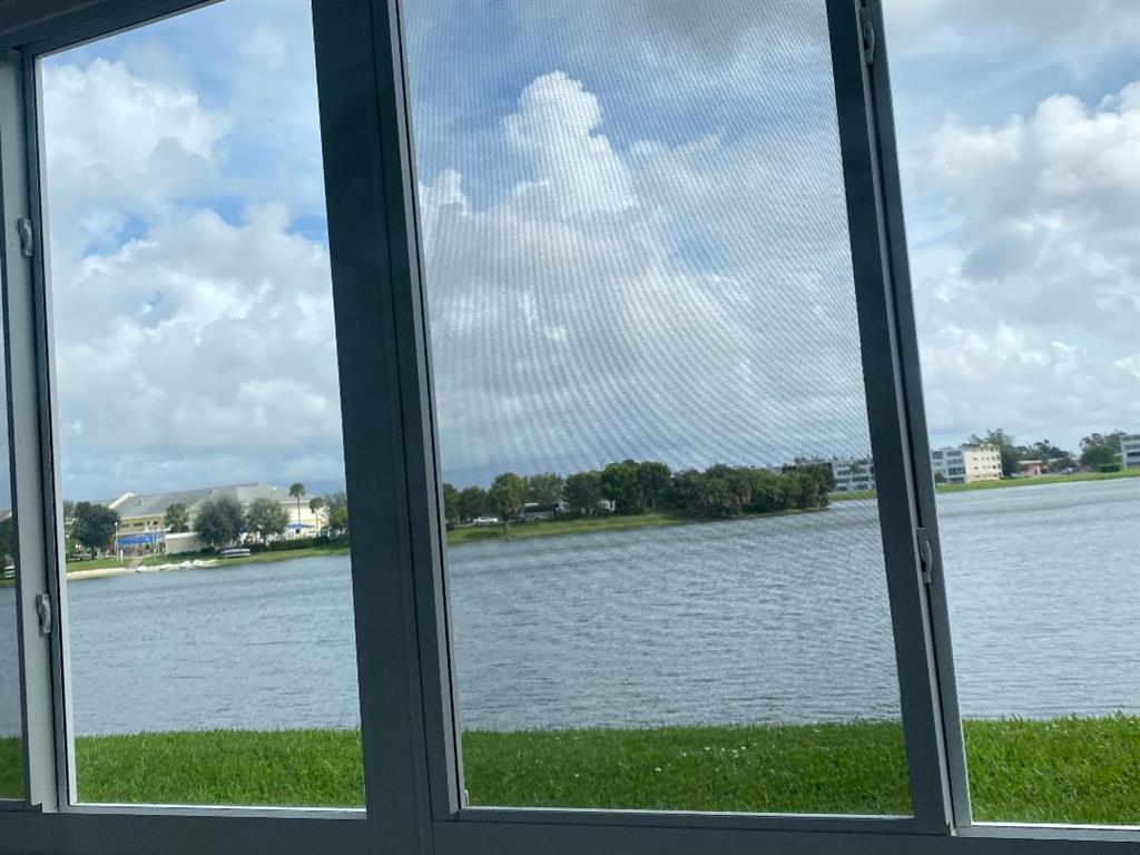 Spectacular and very desirable Ground Floor condo with fabulous water views. This oversized two bedroom, TWO FULL NEW BATHS, lake side beauty has it ALL. Brand NEW HURRICANE IMPACT WINDOWS, New window blinds, Brand NEW Patio with New Sliding Windows, new carpets, updated furniture, some new appliances. Walk to pool, and across from the Bus stop is very convenient. 55+ Community/HOA approval required . No renting and no pets. Must meet CV financial guidelines. PROOF of funds and earnings to be verified.
