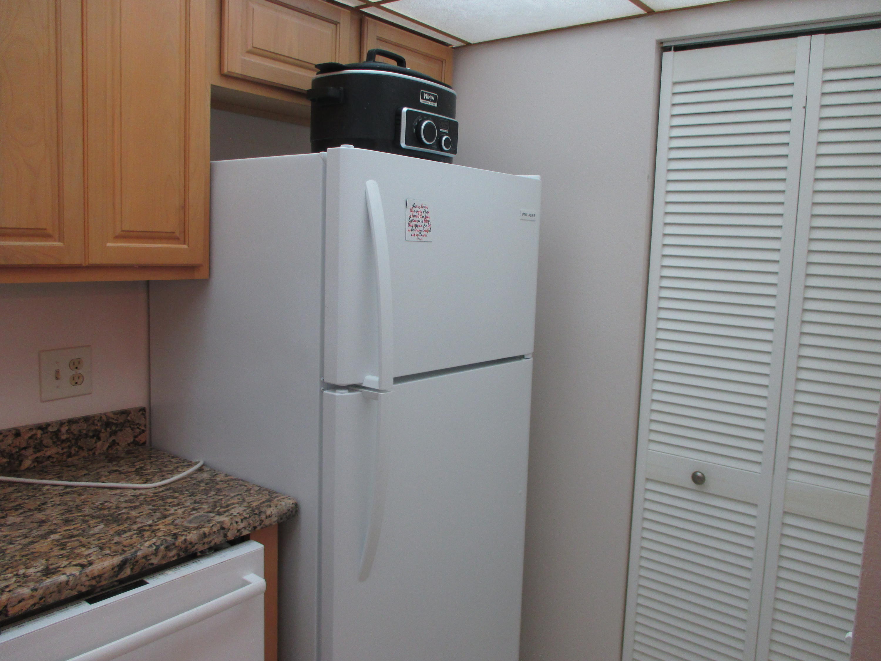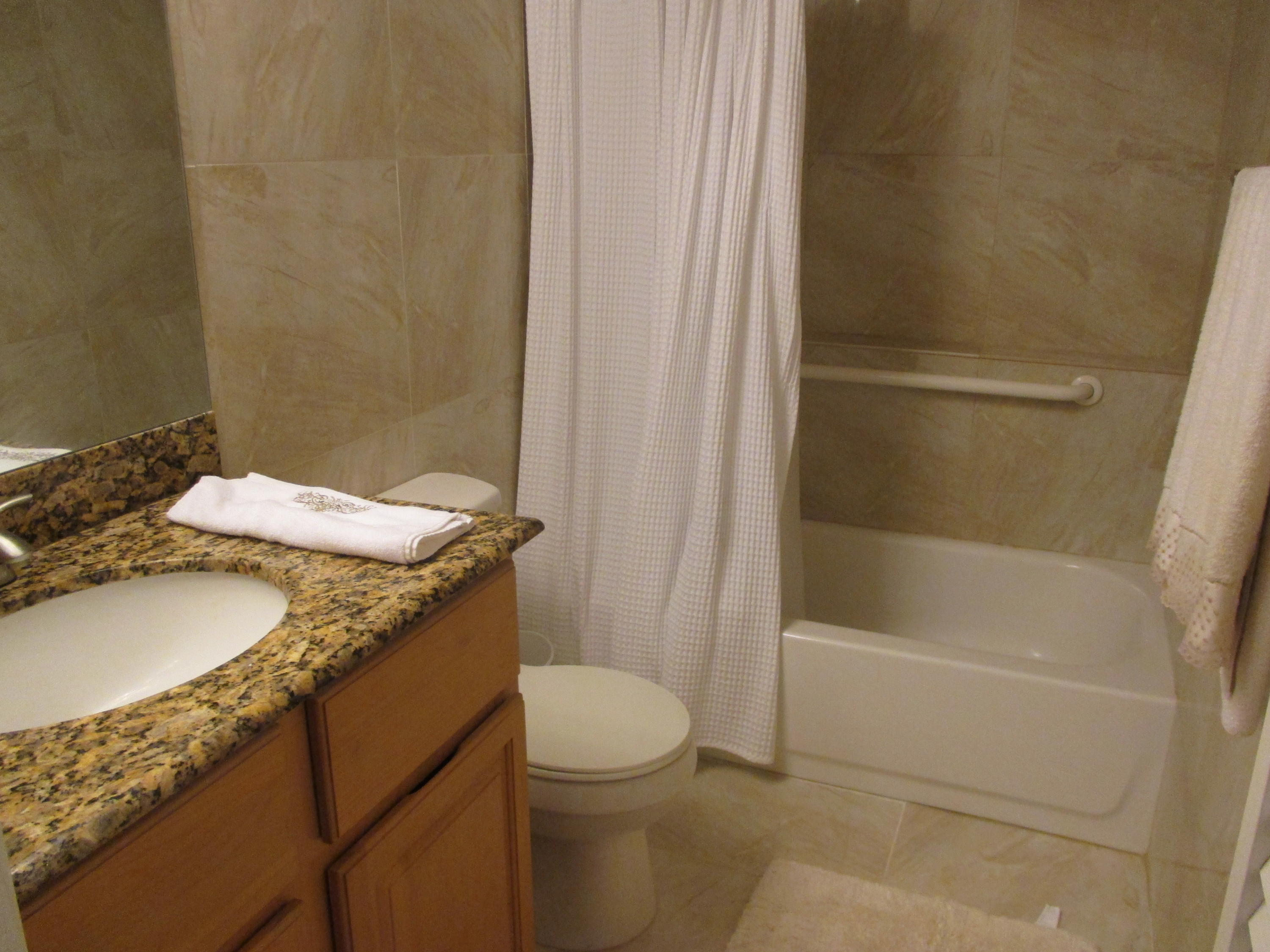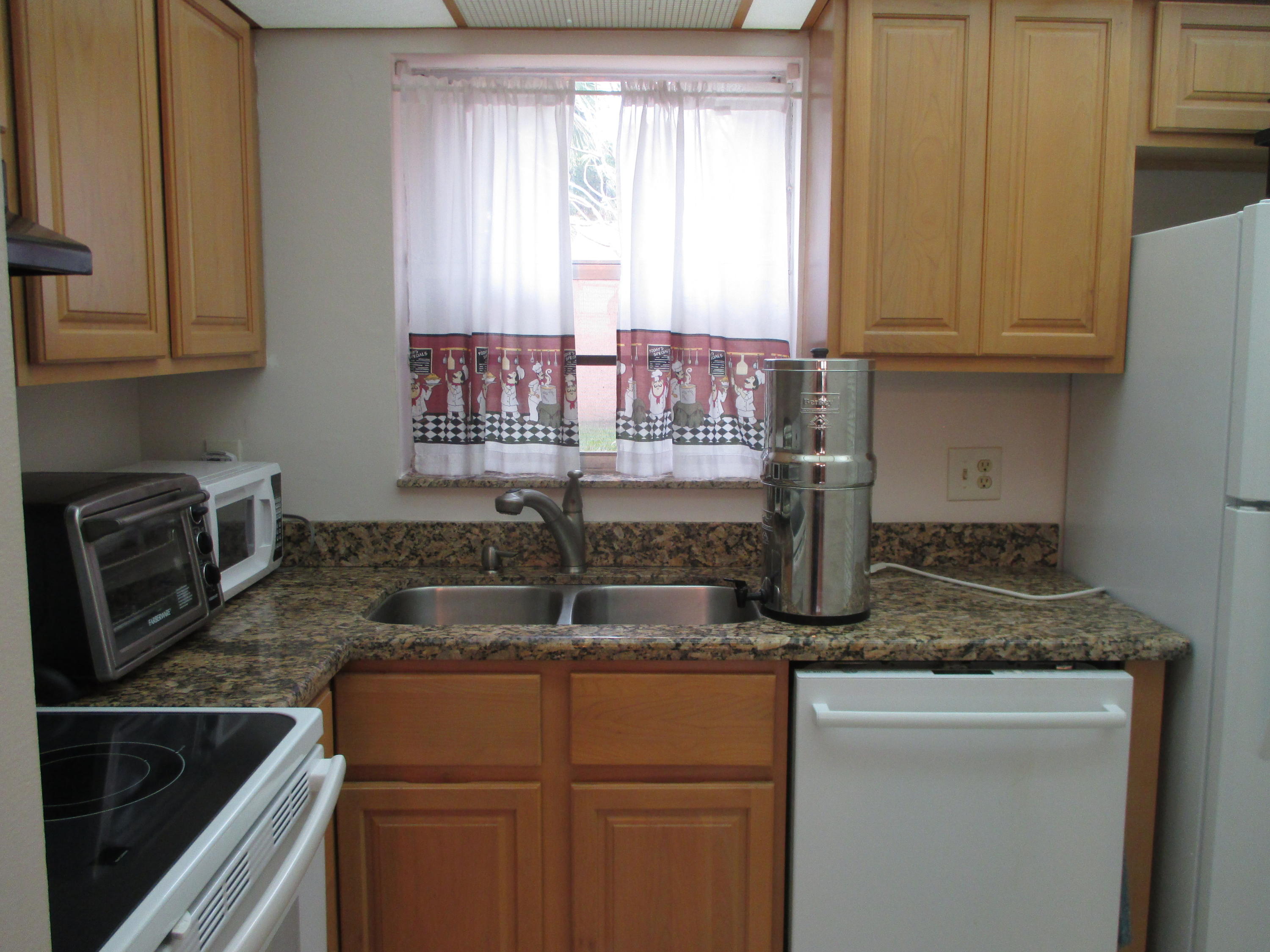 Amazing remodeled first floor 1/1. A must see, too many upgrades to list all.New kitchen w/granite counters, new cabinets w/soft close drawers, a/c 2015, new refrigerator & Borch dishwasher, full size W/D. 18'' porcelain marble design tile throughout unit. Remodeled bath with tiled walls, new shelving, new bi-fold doors, ADT security system, security film on all windows and accordion shutters. 11x5 enclosed patio. Granite dining table to stay and some other furniture if buyer wants. Active 55+ guard gated community with courtesy bus two days a wk to grocery, malls, stores etc.