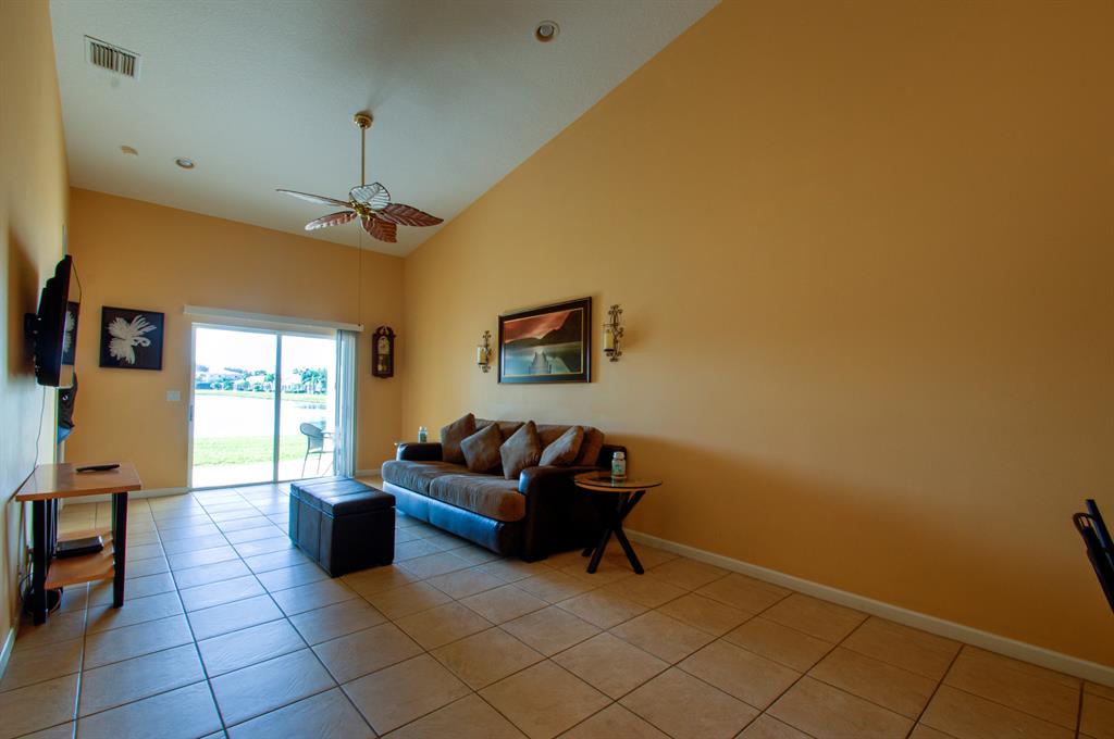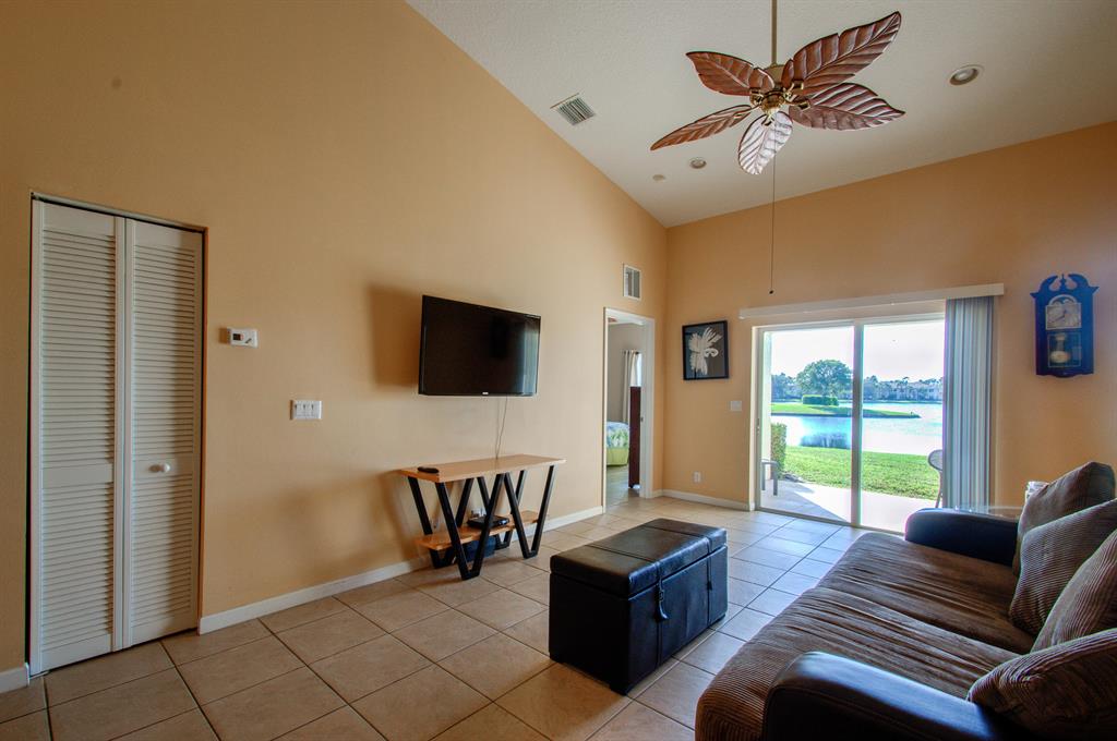 This well kept Clipper Model is open and bright with a beautiful view of the lake. The home has tile throughout. Master bedroom has a walk in closet and shower. A/C is 2 years old and the washer and dryer are newer. The front parking offers a double space for your second car or visitors. accordion shutters. This is a pet friendly community with a beautiful resort style club house with many amenities. Conveniently located to shopping, quick access to the Florida turnpike and the Wellington Green Mall.