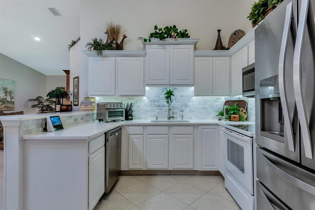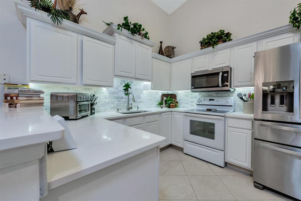 Stunning 2BR+Den 2BA Villa in Baywinds-Prestigious 55+, Pet Friendly Resort-Style Community. Totally Upgraded w Extras+++. Meticulously Maint, Light & Bright, Spacious Open Floor Plan, Soaring Cathedral Ceilings, Solar Tube Skylight, Dramatic Great Room w Living and Mirrored Dining Zones adj to Open Kitchen w Quartz Counters, Carrera Marble Backsplash, Dual-Tier Breakfast Bar, Under Cab LED Lights, Rollouts in Cabinets & Pantry, 2-Yr Old Appliances. MBR en-Suite w Walk-In Closet. MBA Xtra Linen Closet. Guest BA w Linen Closet. Screened Porcelain Tiled Lanai. Vaulted Ceilings, LED Lights, 18'' Diagonal Tile, Ceiling Fans Throughout, Blackout Shades Great Room (Motorized) & MBR, ACCORDION SHUTTERS, A/C 2017, HWH 2017. 20'' Porcelain Tile & Baseboard + Other Upgrades in Garage & Entire House